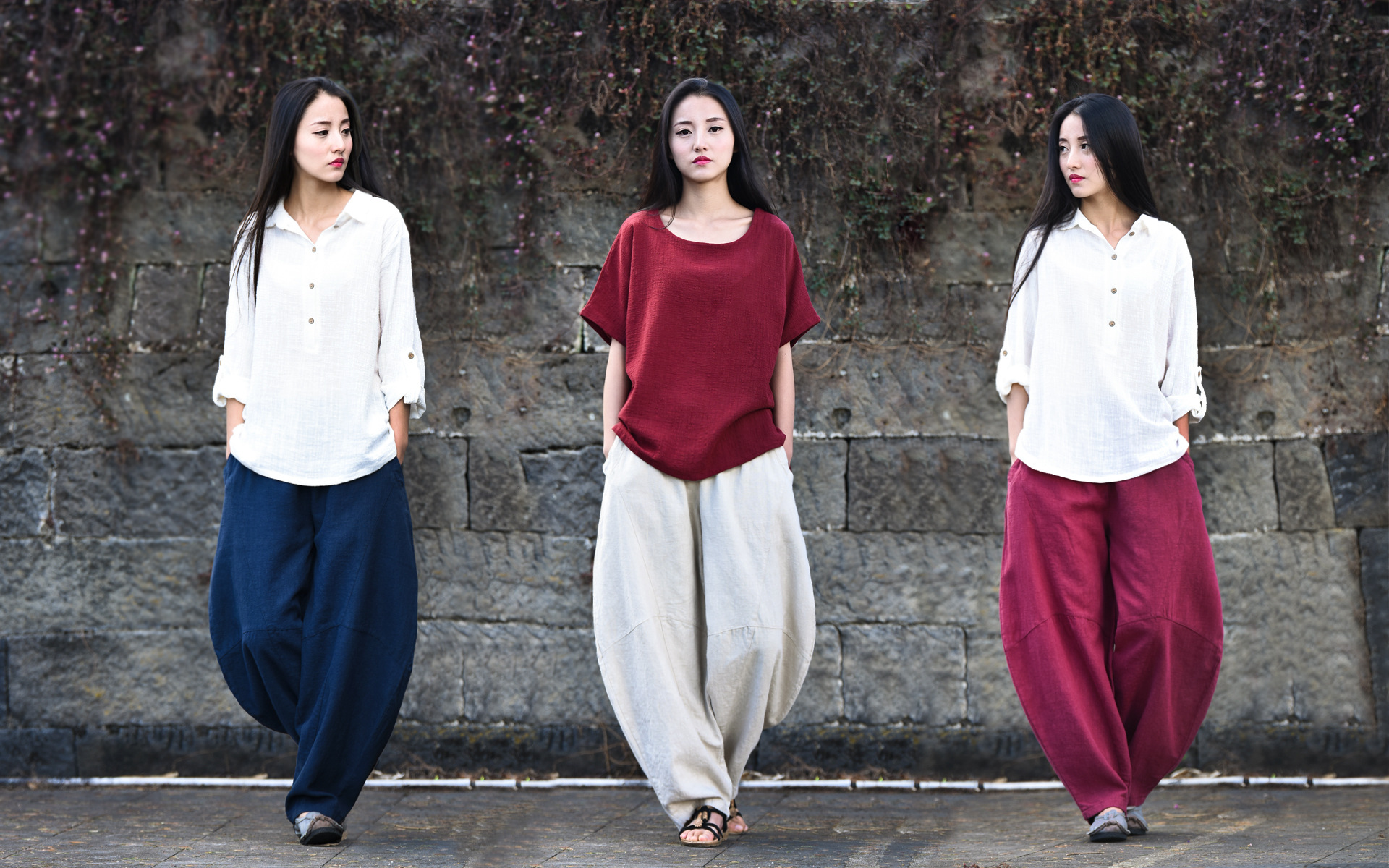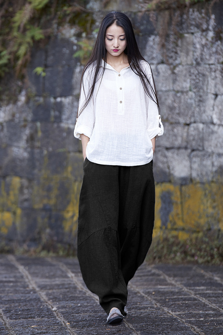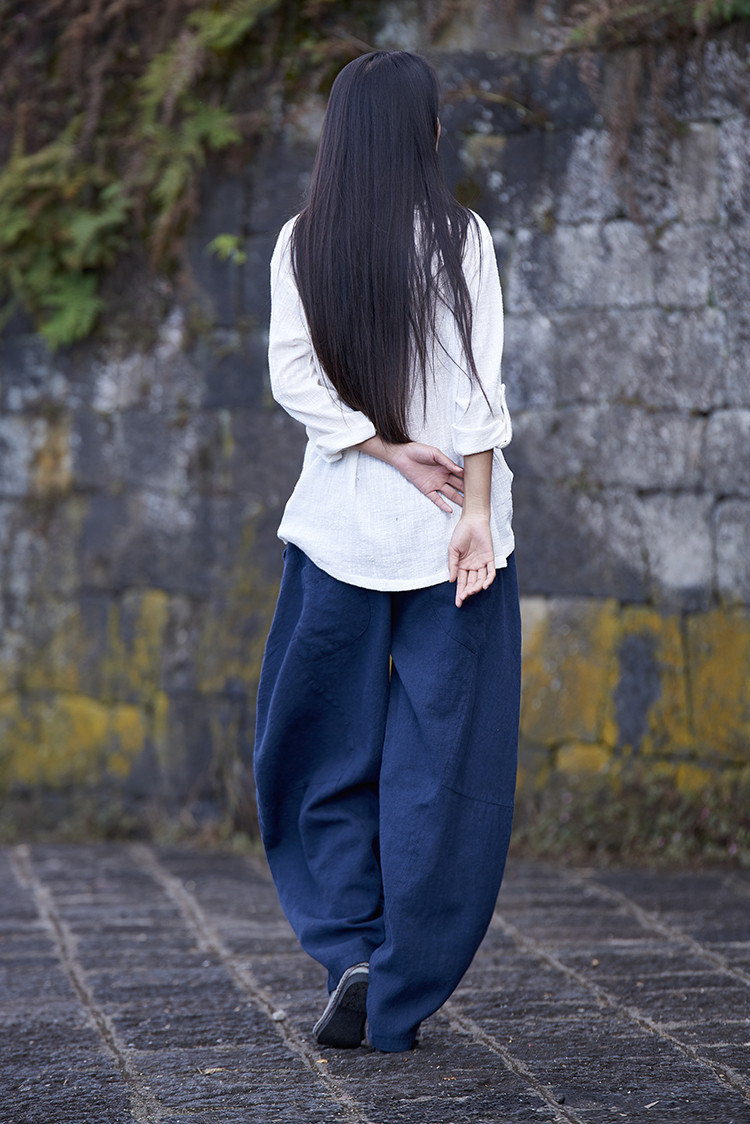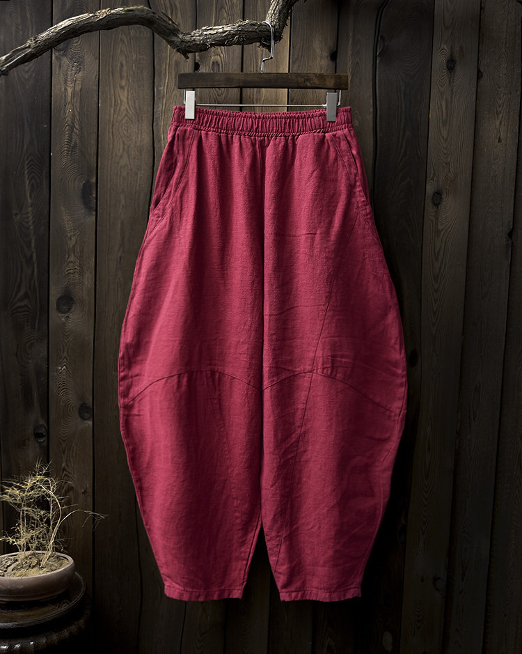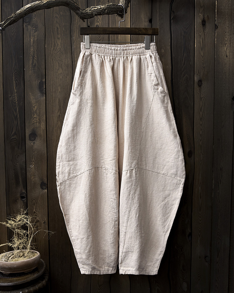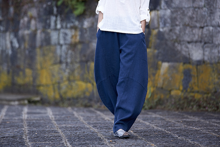 2023春夏棉麻女装新品念百秀纺国风苎麻女式灯笼休闲裤打坐裤长裤