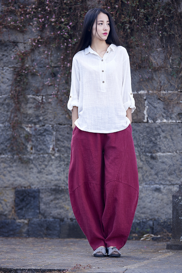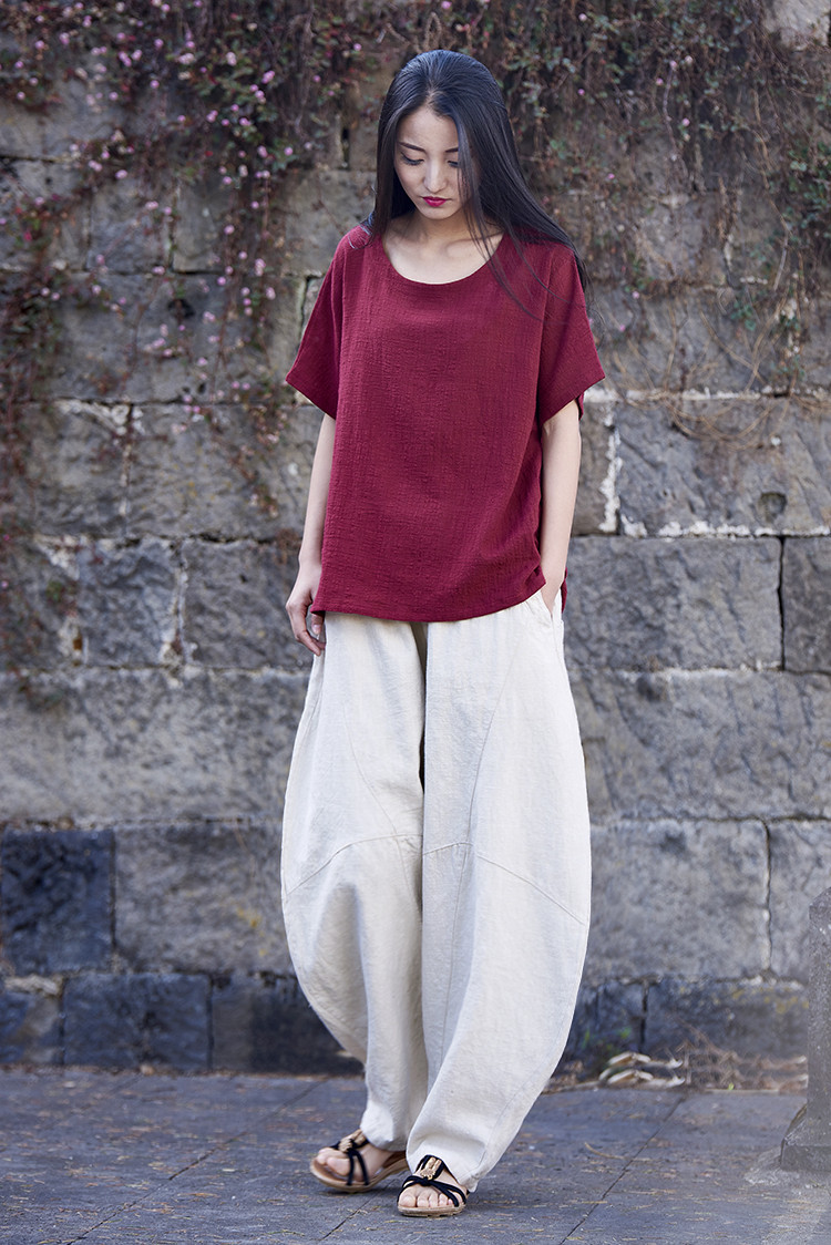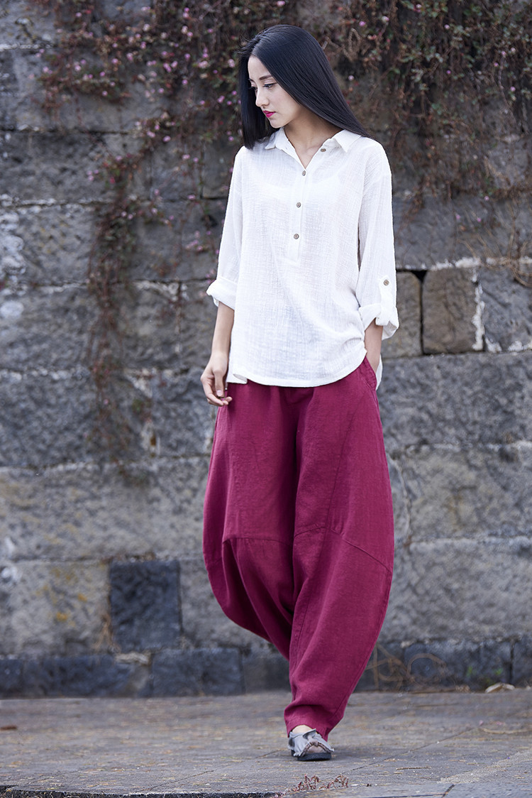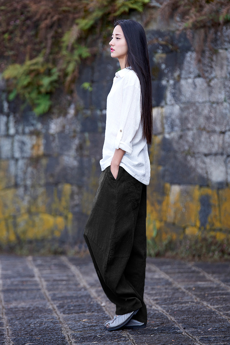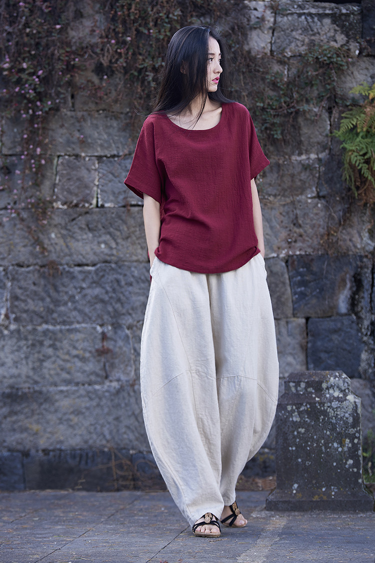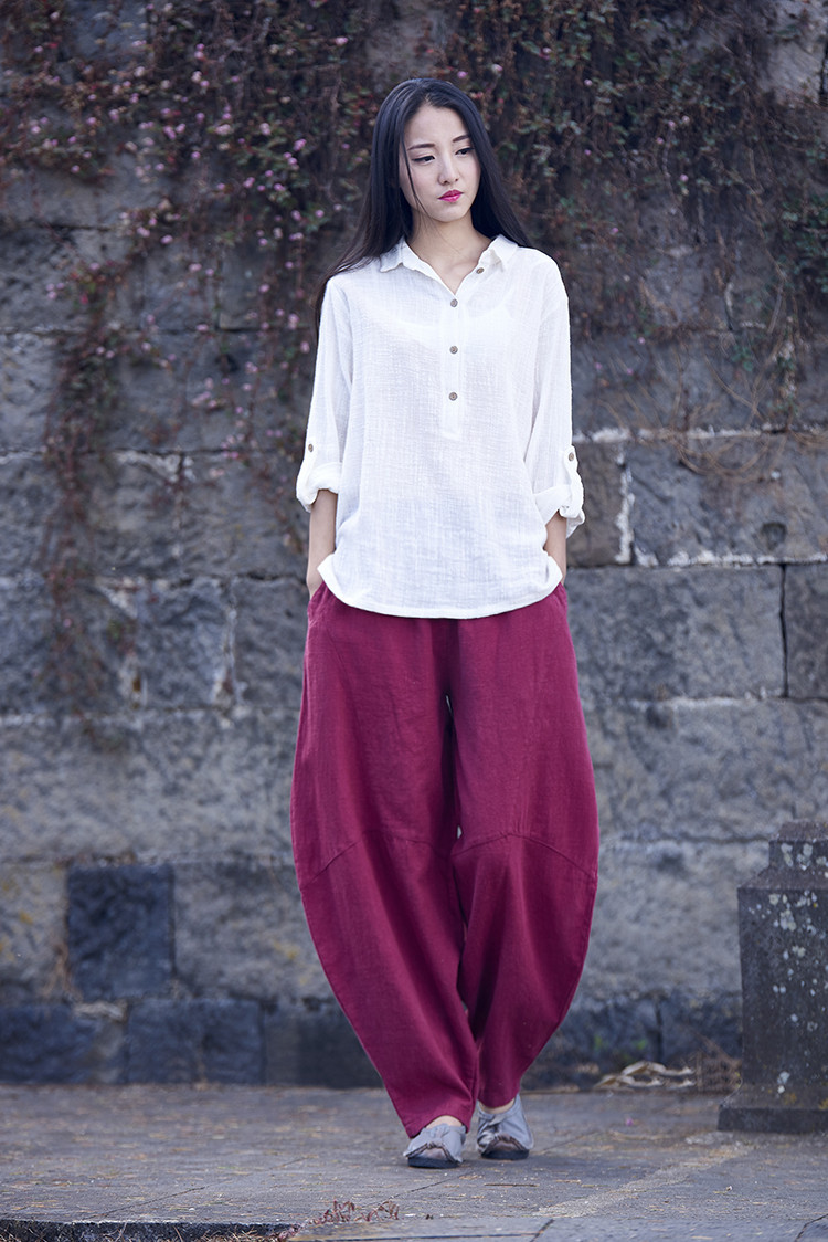 2023春夏棉麻女装新品念百秀纺国风苎麻女式灯笼休闲裤打坐裤长裤
