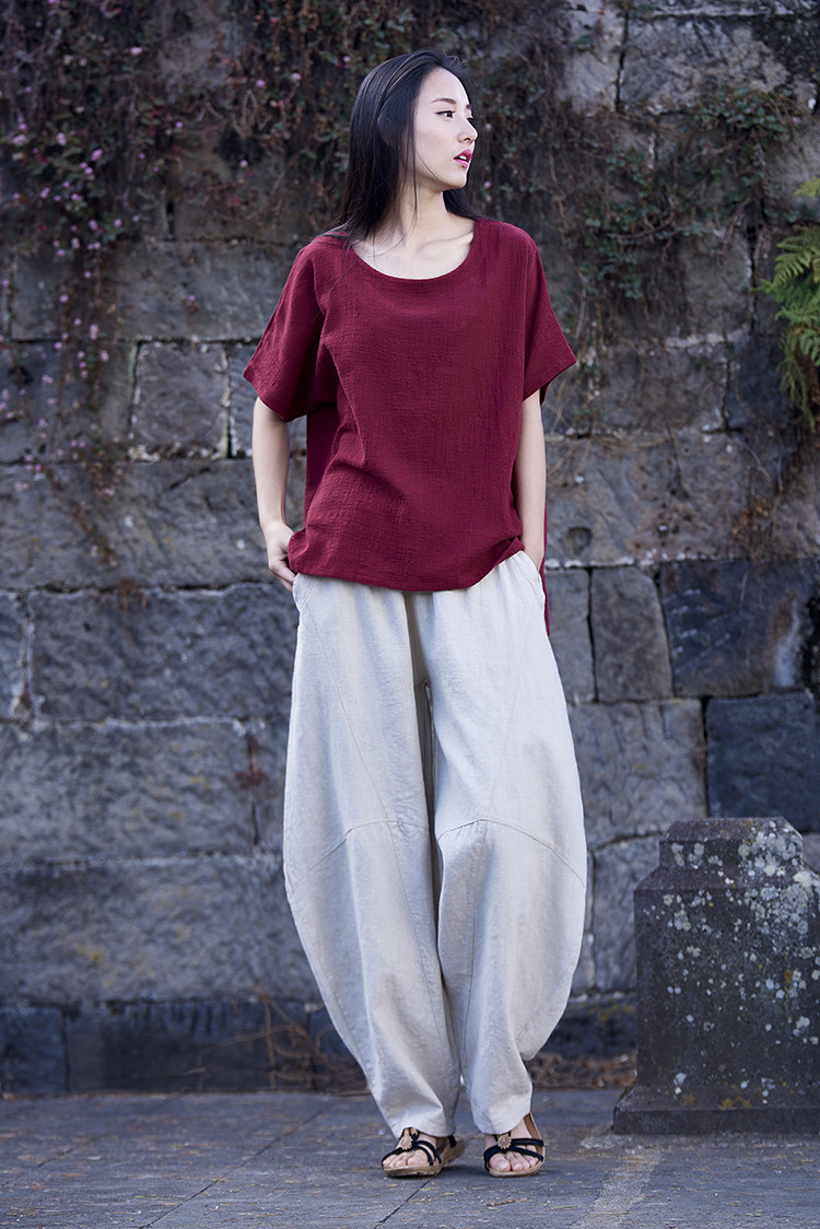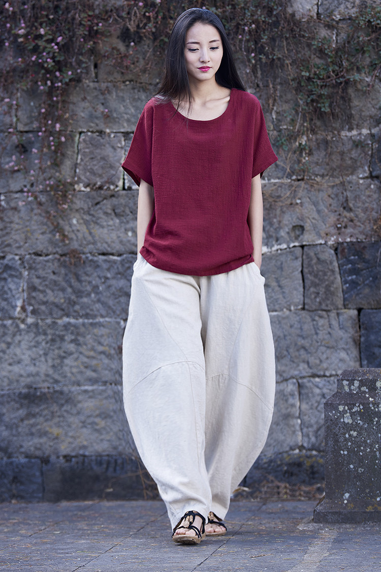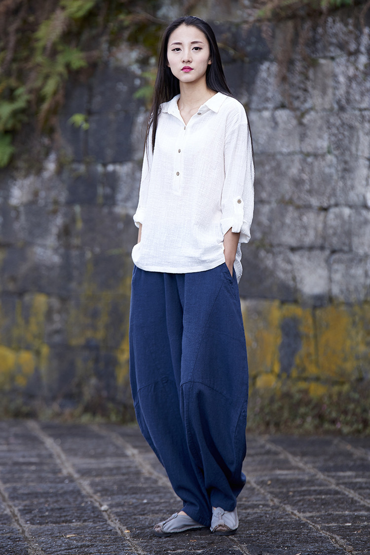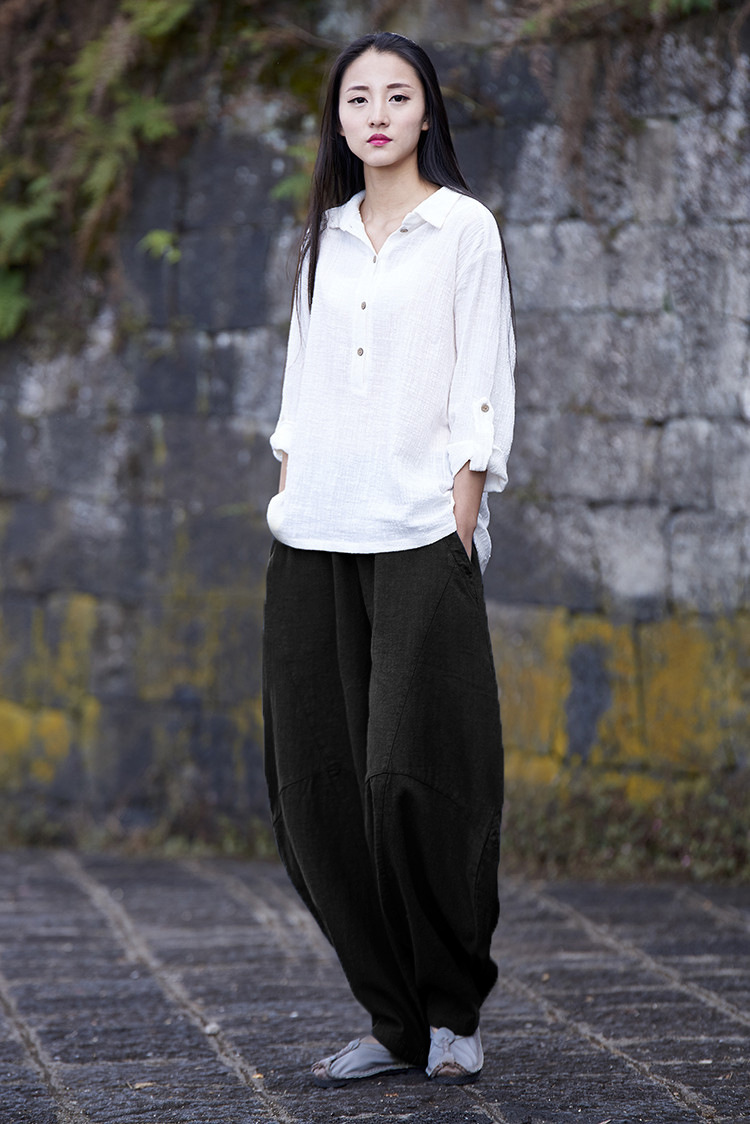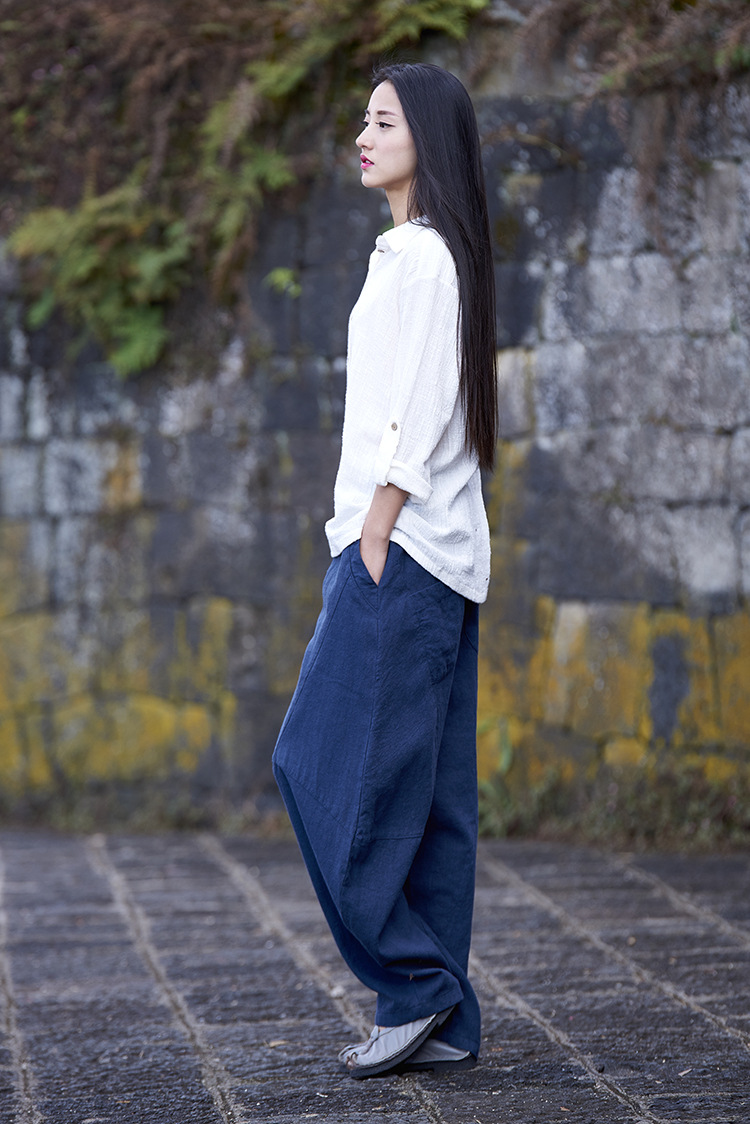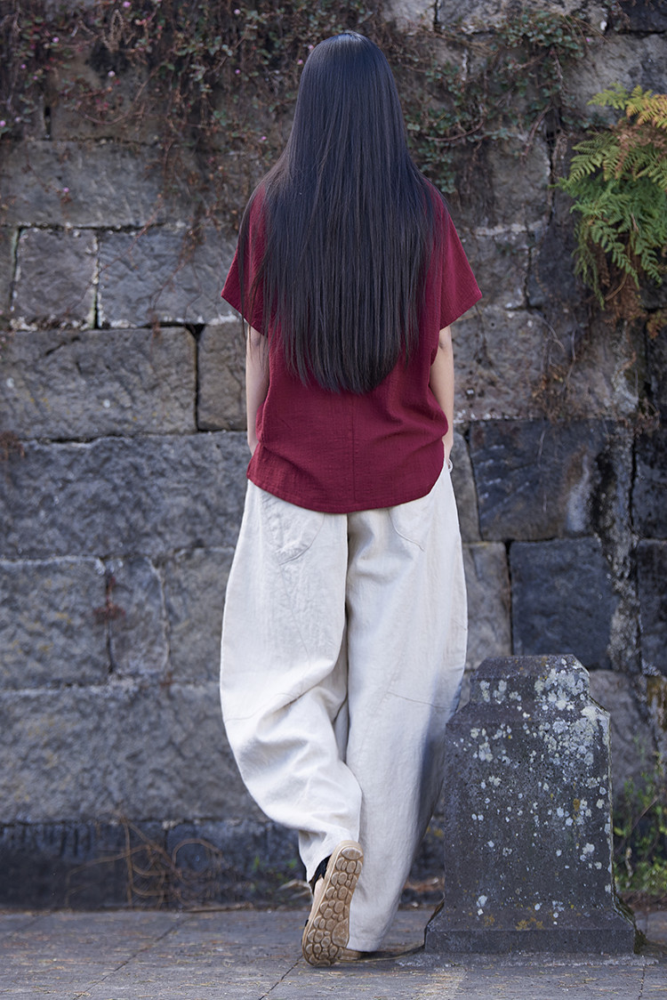 2023春夏棉麻女装新品念百秀纺国风苎麻女式灯笼休闲裤打坐裤长裤