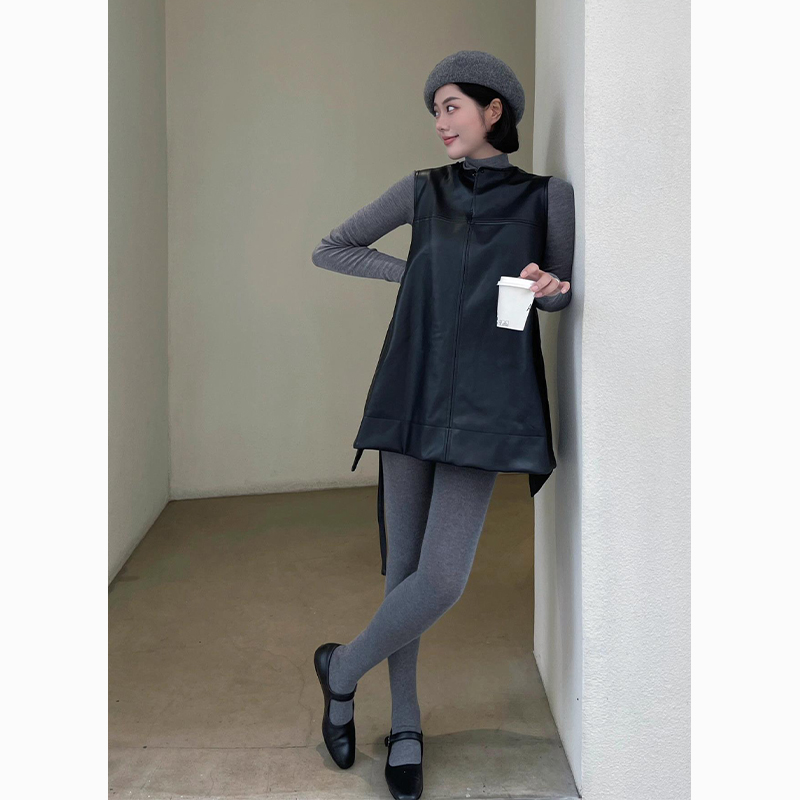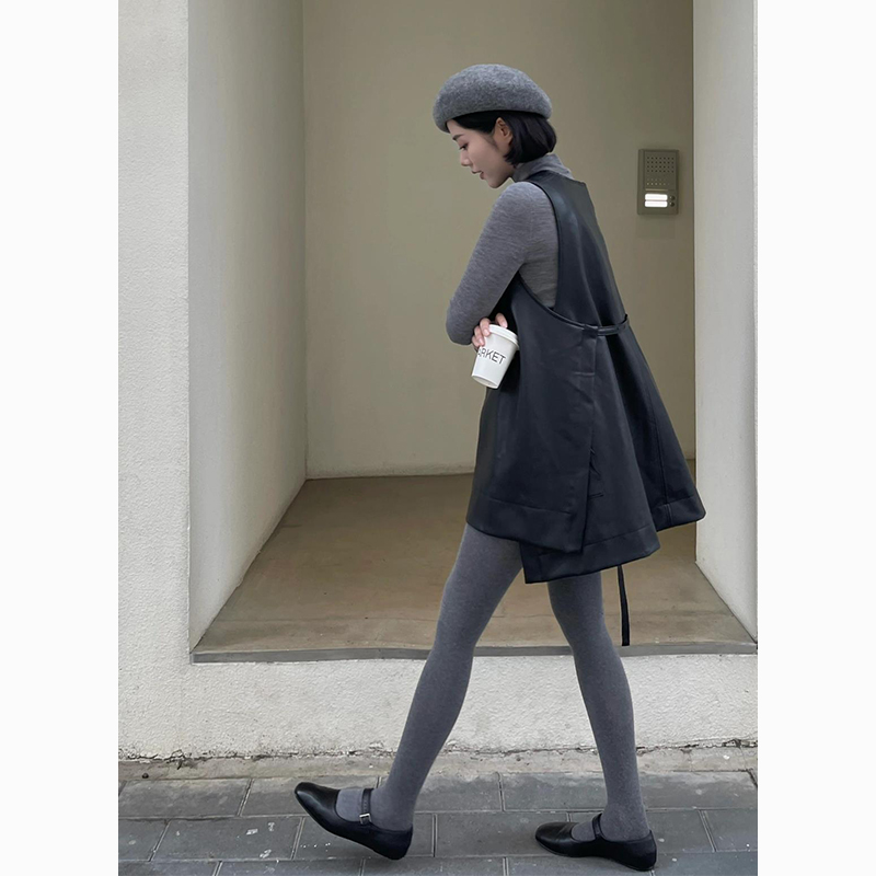 老錢風女裝黑色一片式無袖背心皮裙秋季小個子疊穿顯瘦短洋裝