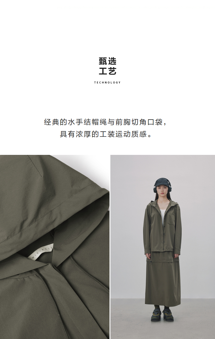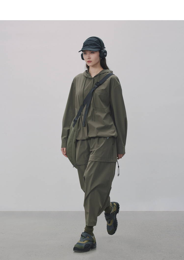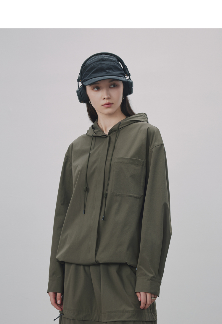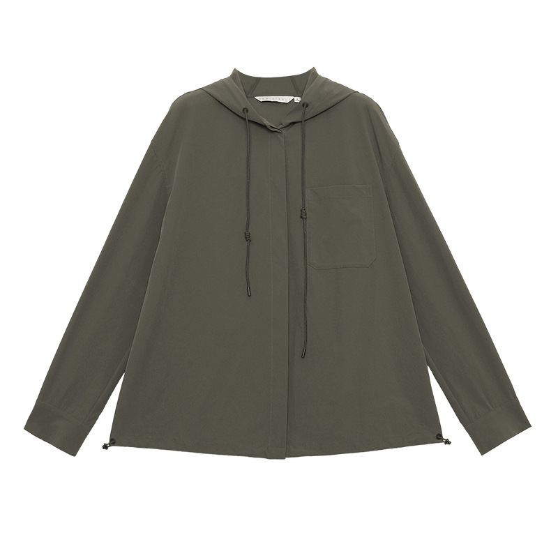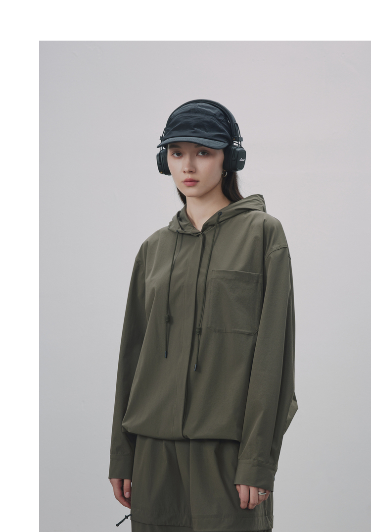 半圓原創設計2023秋季新連帽襯衫下擺抽繩活動自如簡約利落親膚
