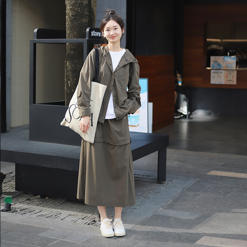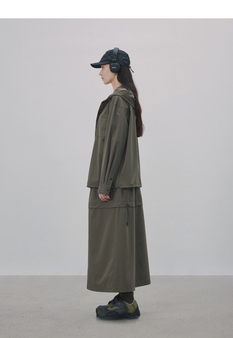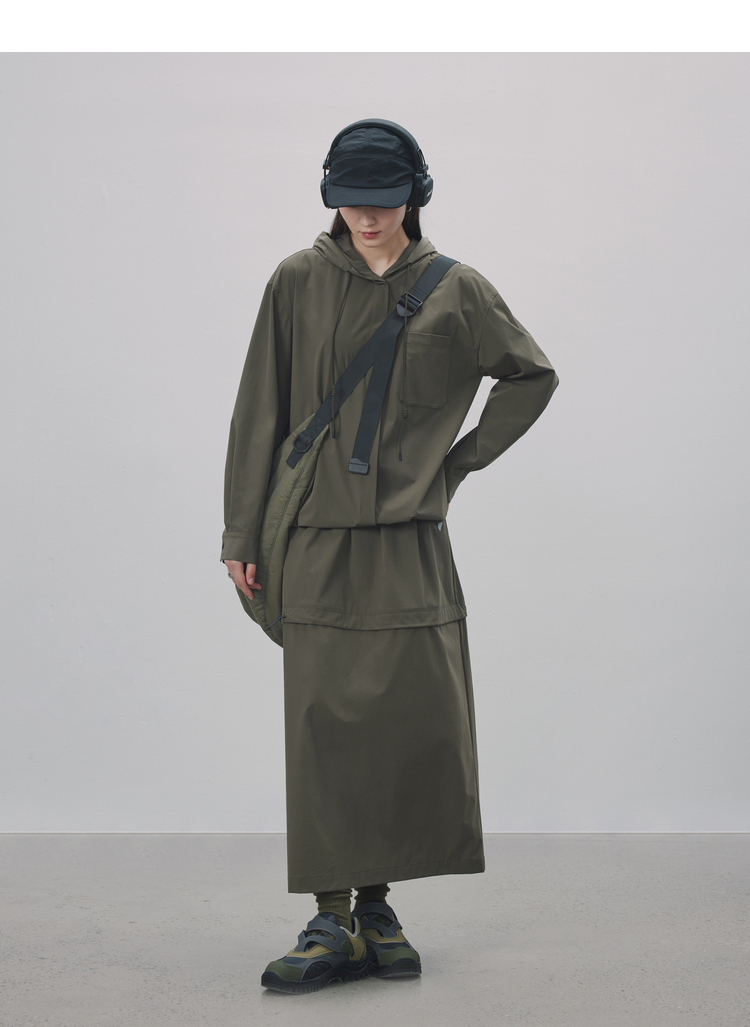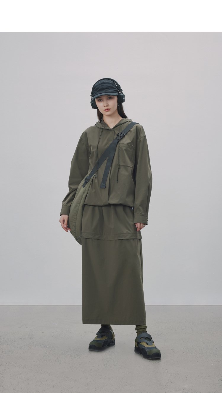 半圓原創設計2023秋季新連帽襯衫下擺抽繩活動自如簡約利落親膚