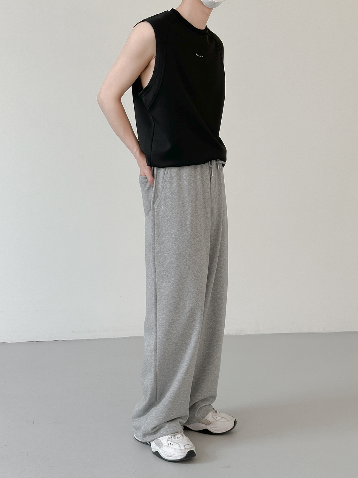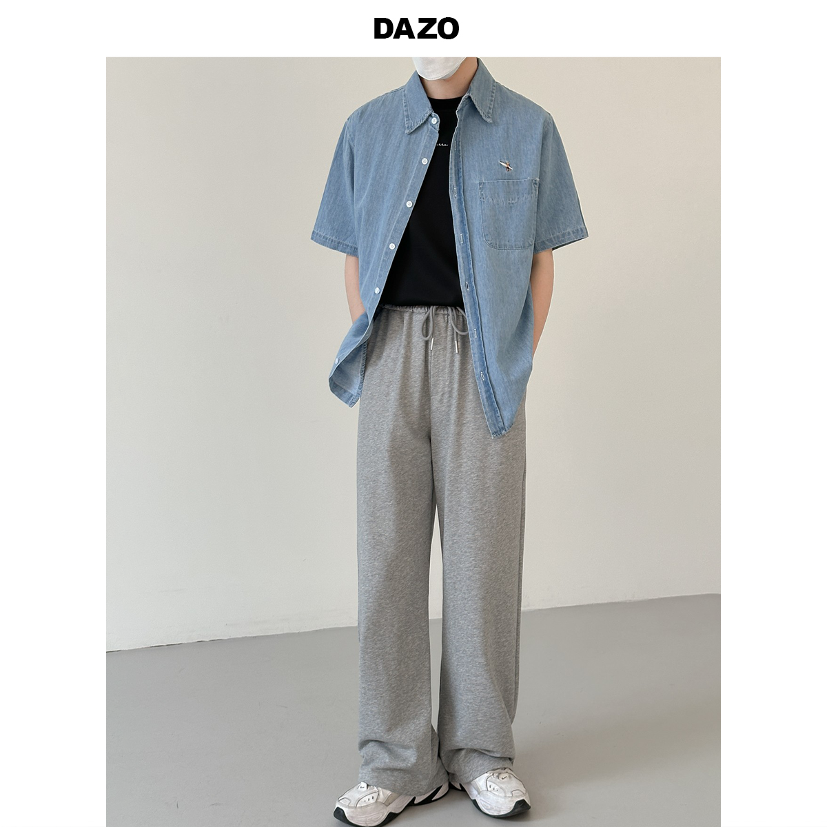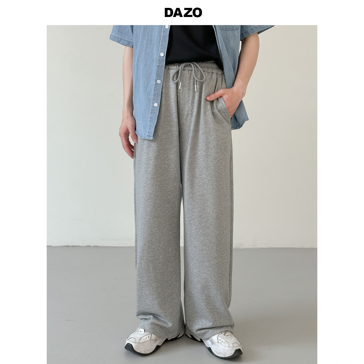 DAZO 夏季薄款衛褲男寬鬆闊腿長褲韓版垂墜感灰色直筒運動褲子潮