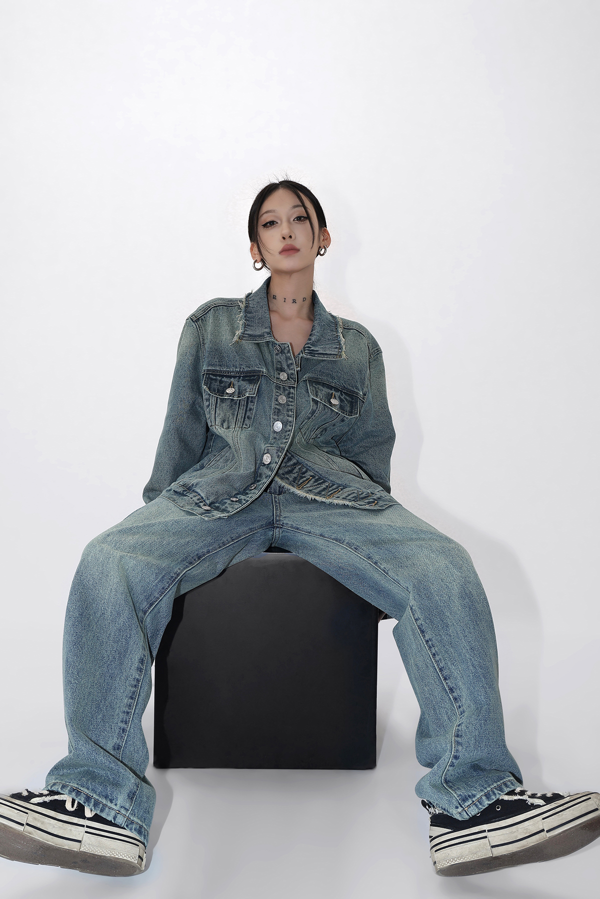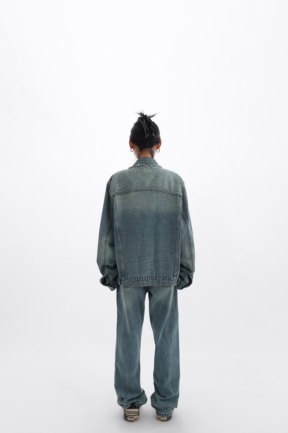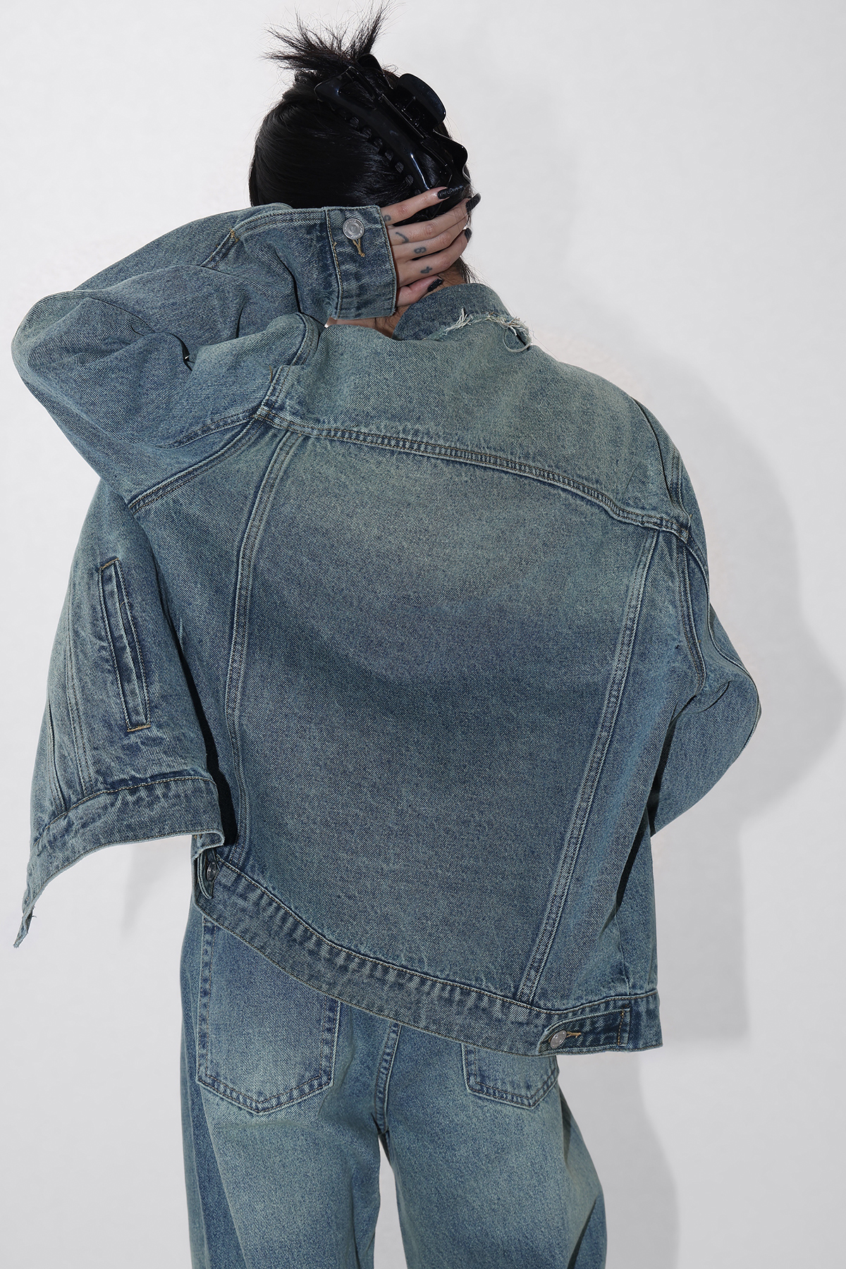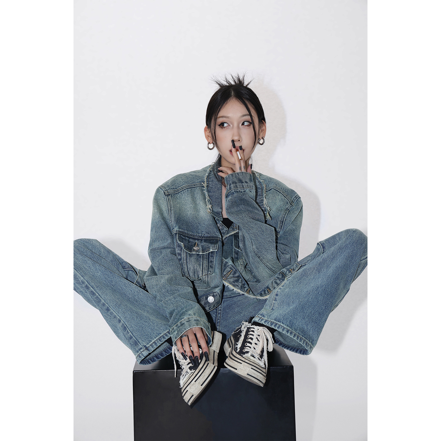 Acestudios 復古做舊牛仔衣+牛仔褲2件套女2023春秋新款牛仔外套