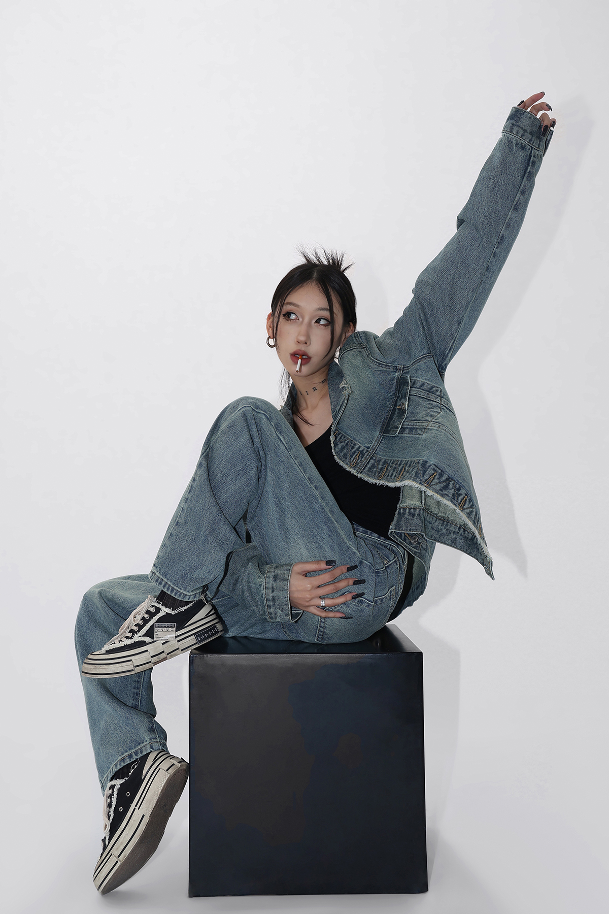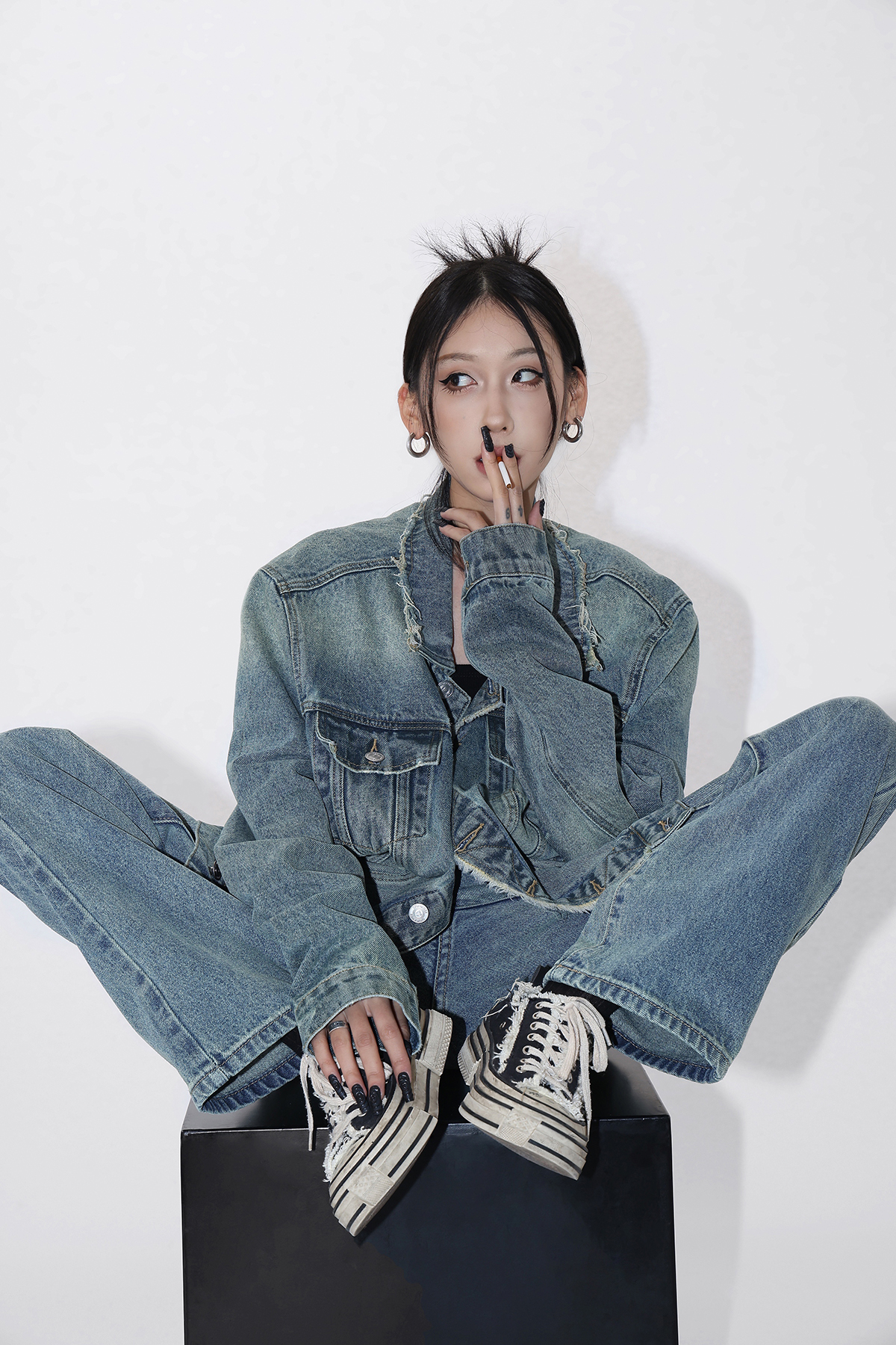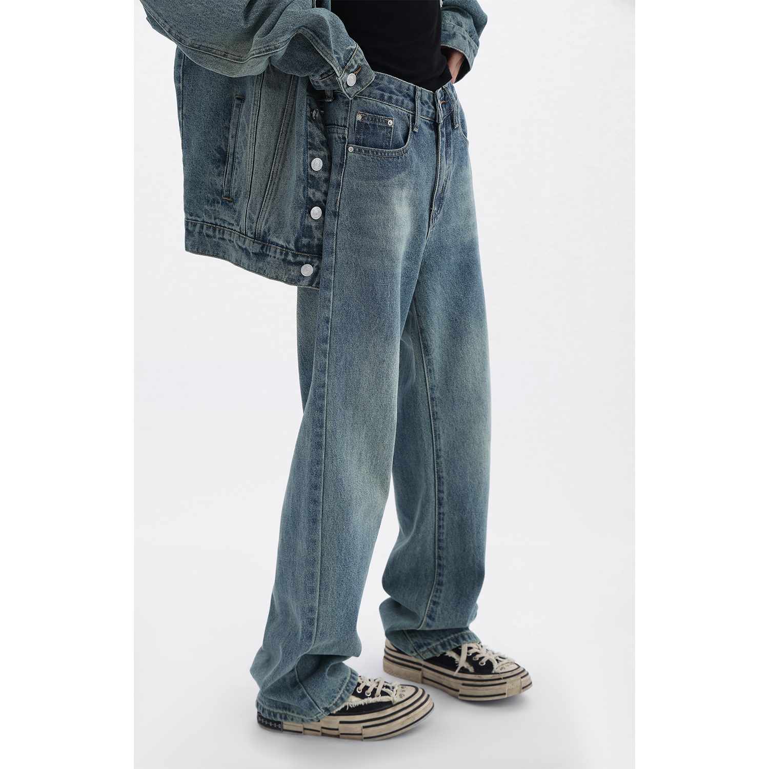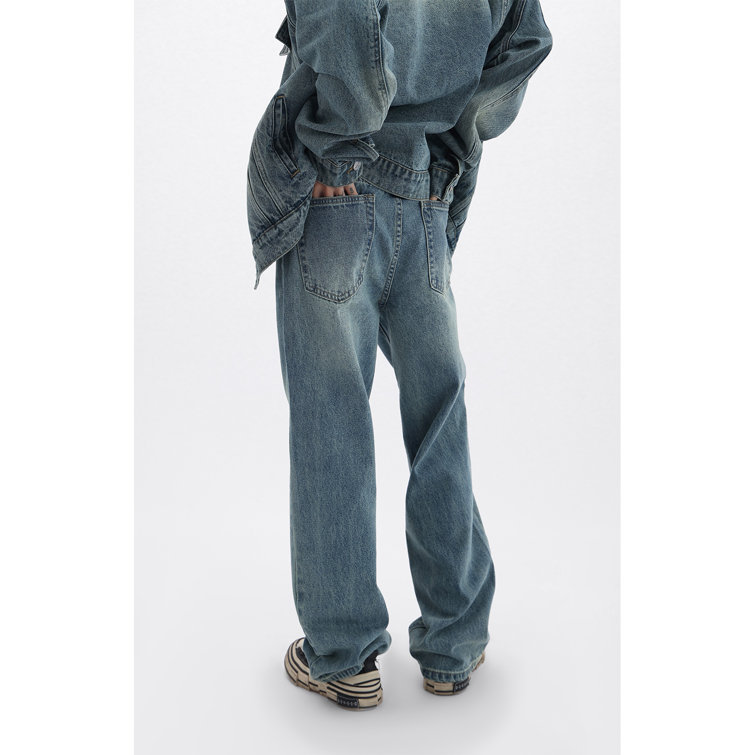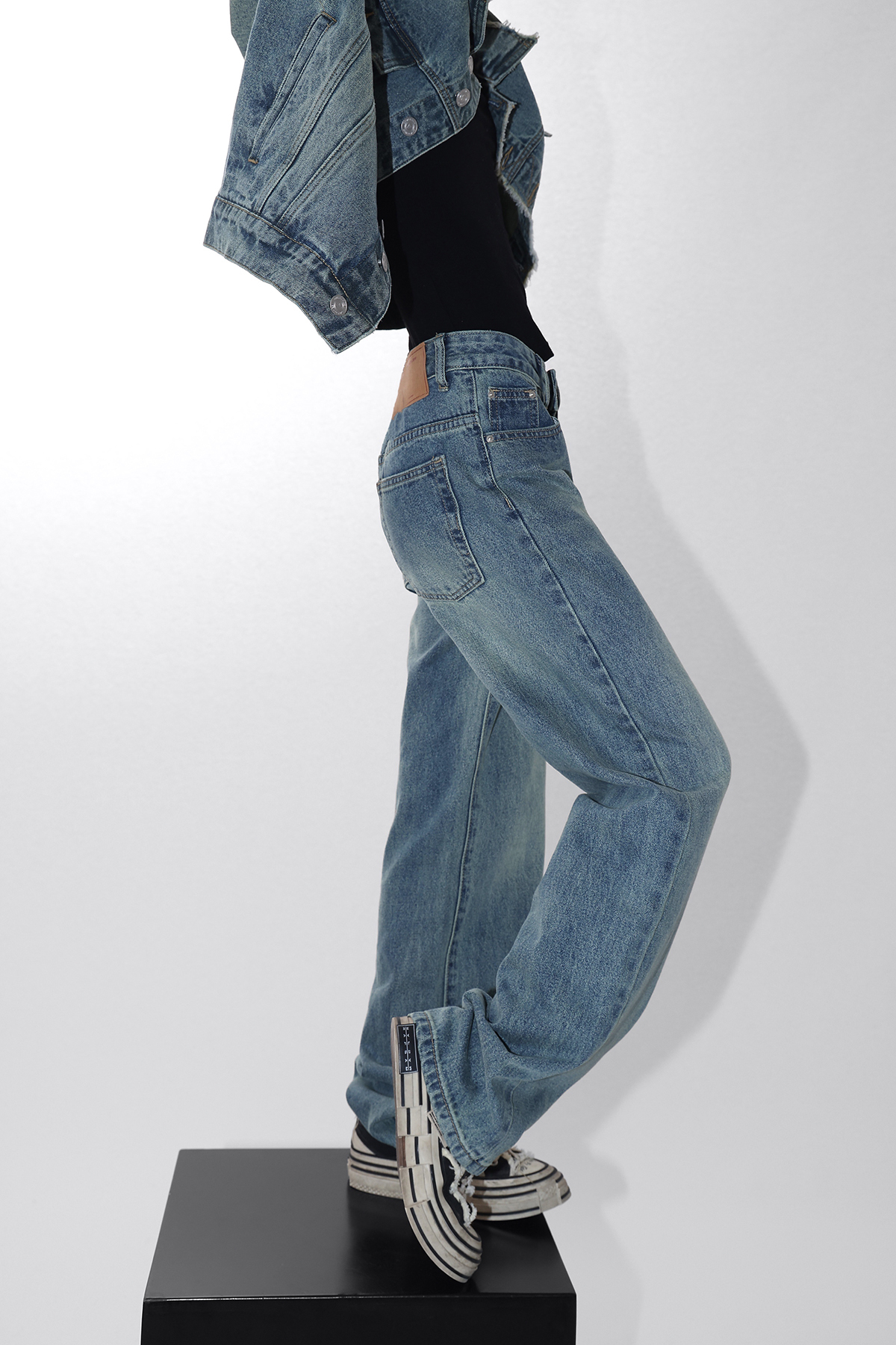 Acestudios 復古做舊牛仔衣+牛仔褲2件套女2023春秋新款牛仔外套