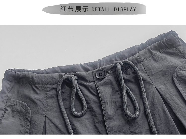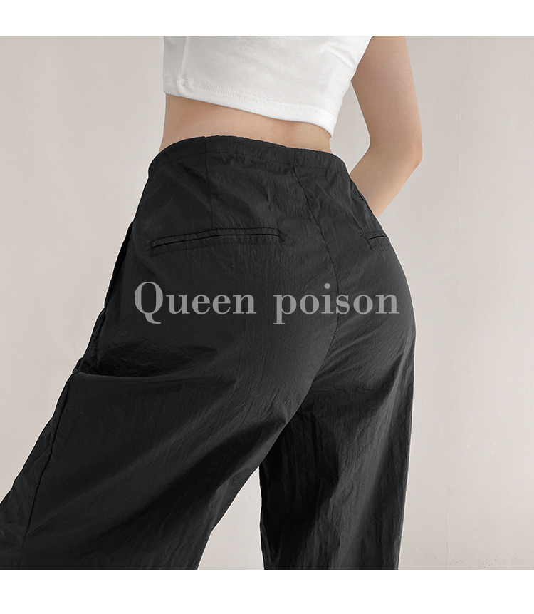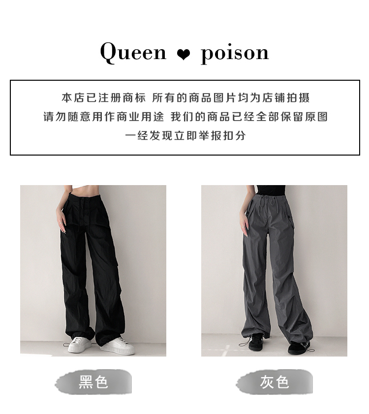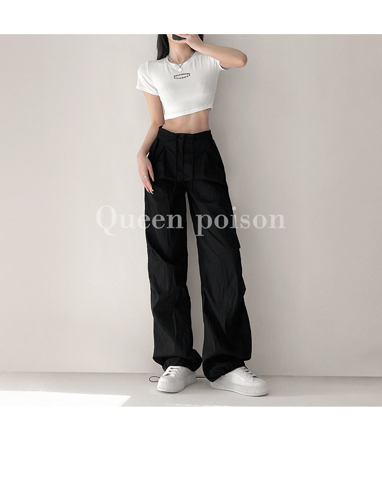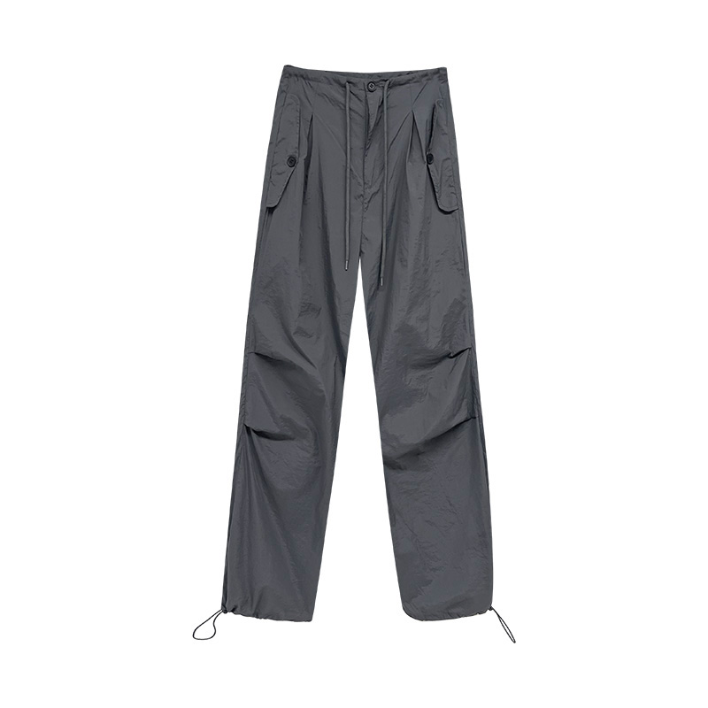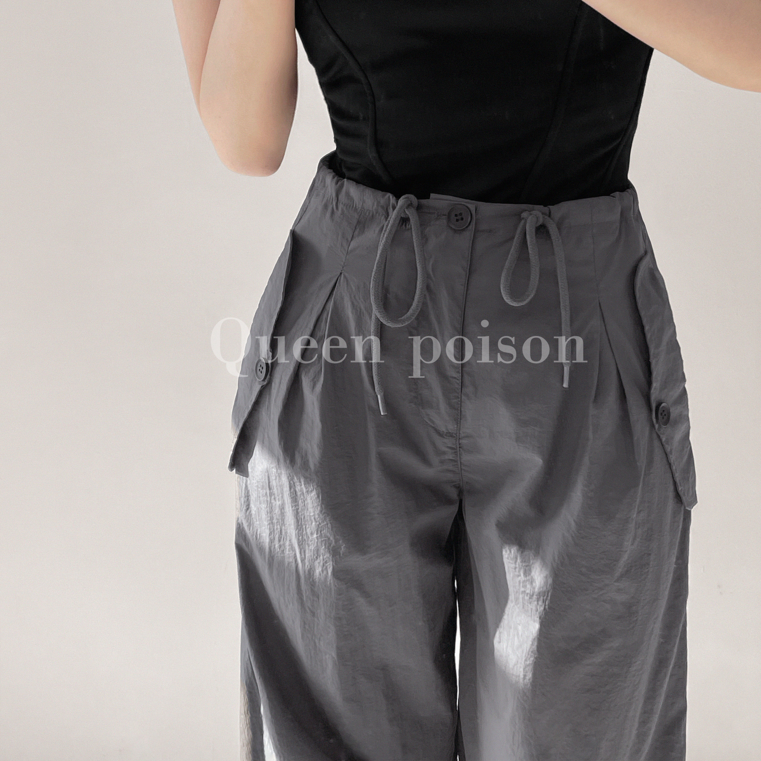 惡霸女主低腰抽繩褶皺速乾工裝褲女夏寬鬆休閒顯瘦直筒束腳闊腿褲