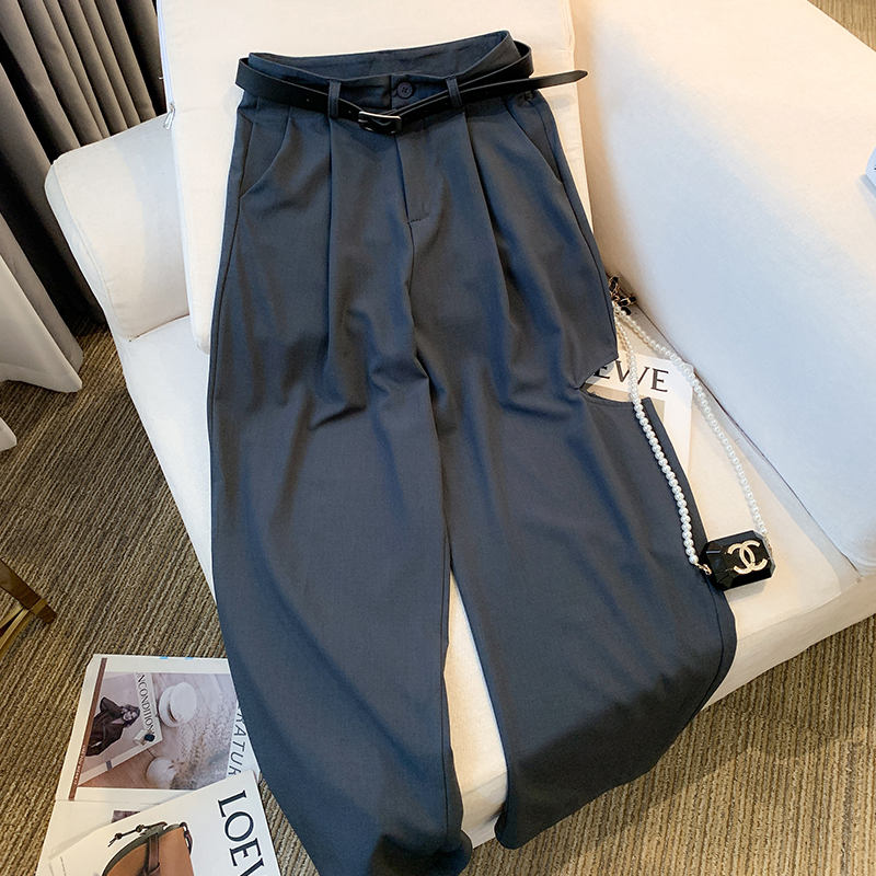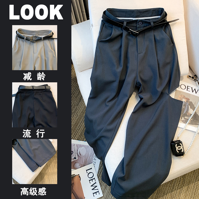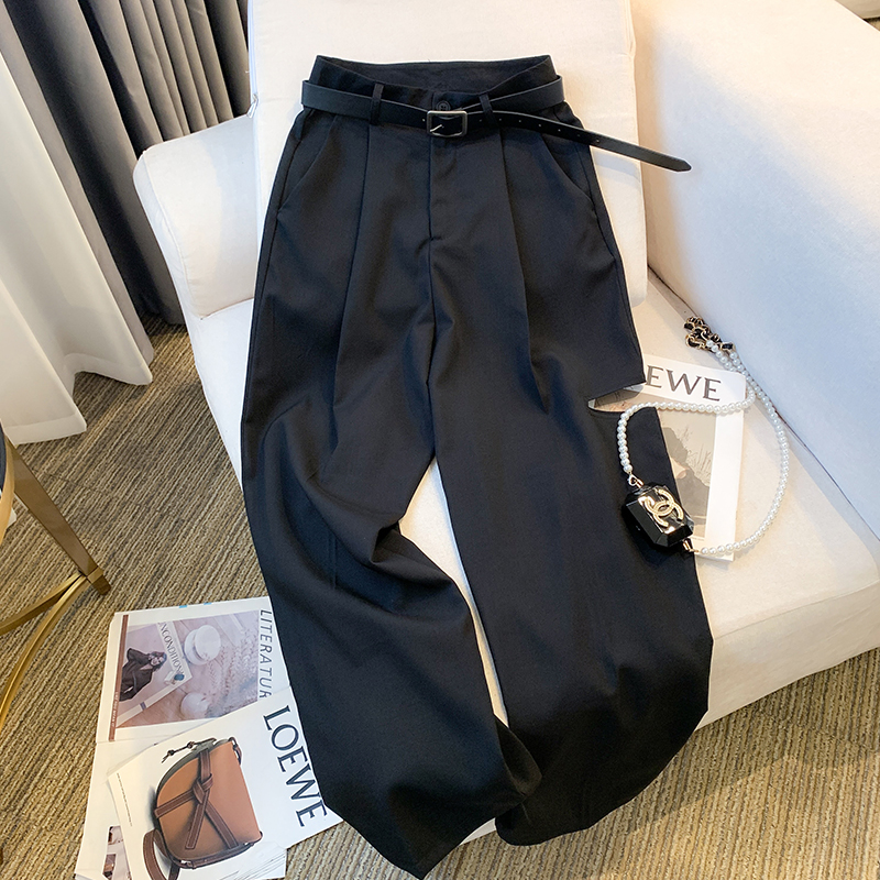 詢簡伊人定製~破洞窄版闊腿褲女高腰垂感休閒褲直筒小個子西裝褲