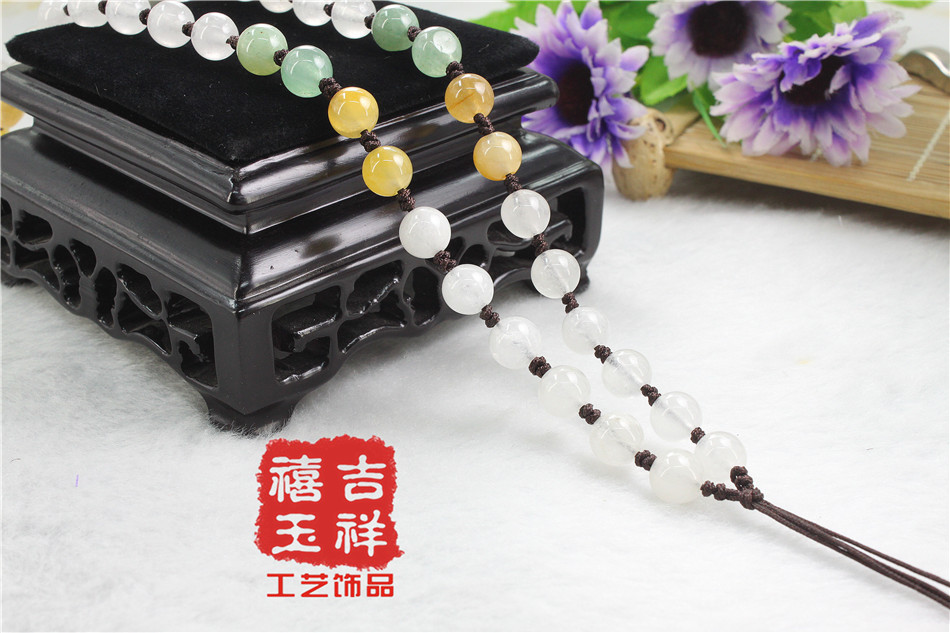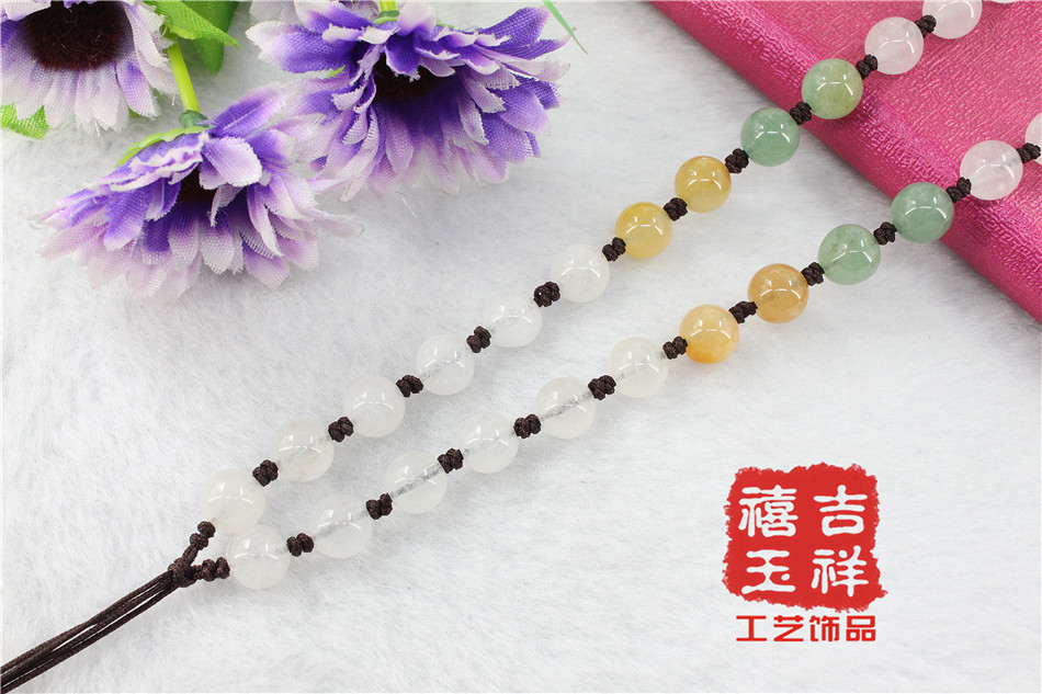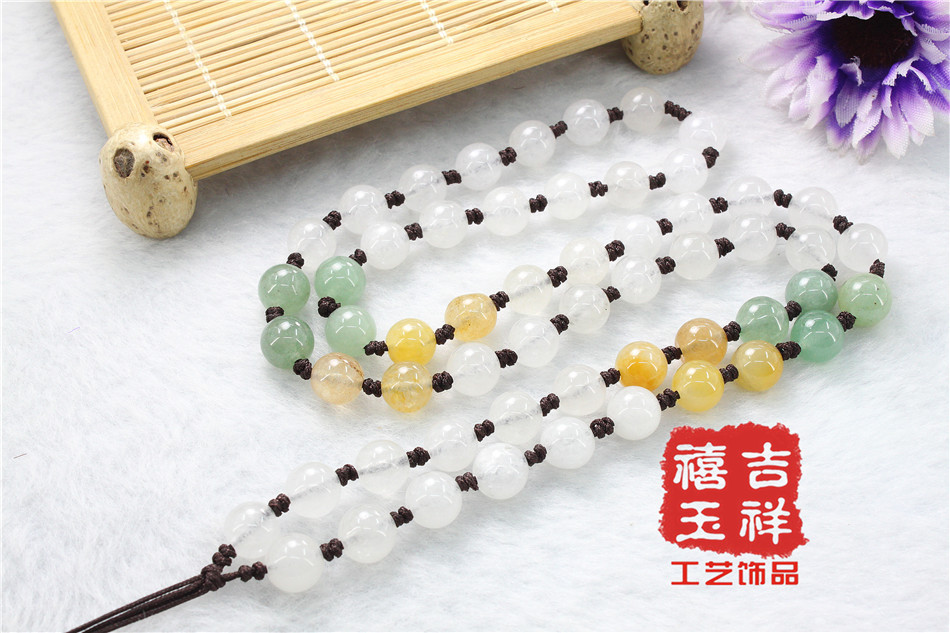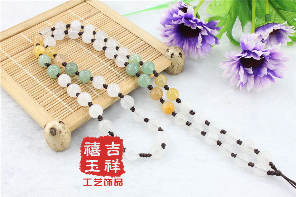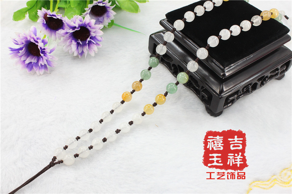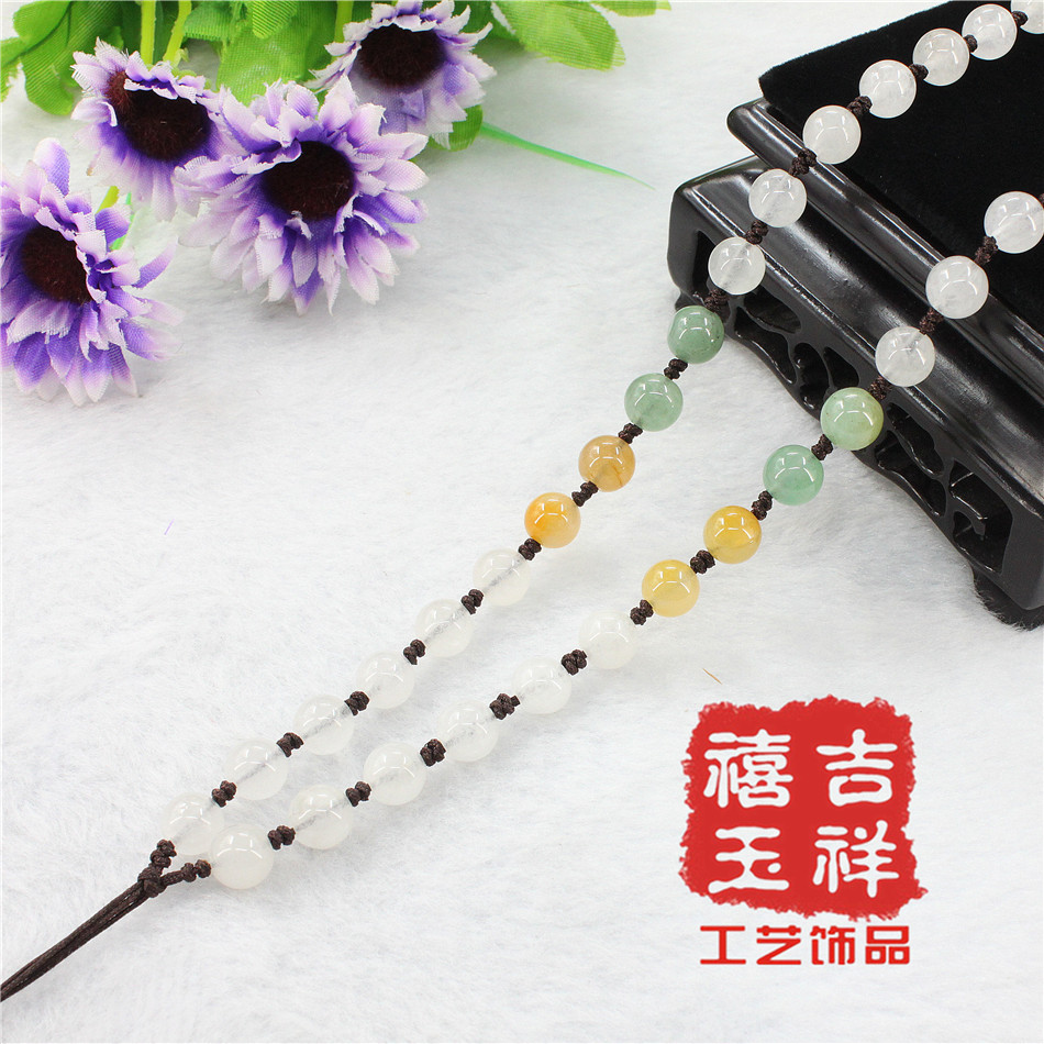 天然6mm东陵玉编织全珠项链绳高档三彩手工吊坠绳饰品配件批发
