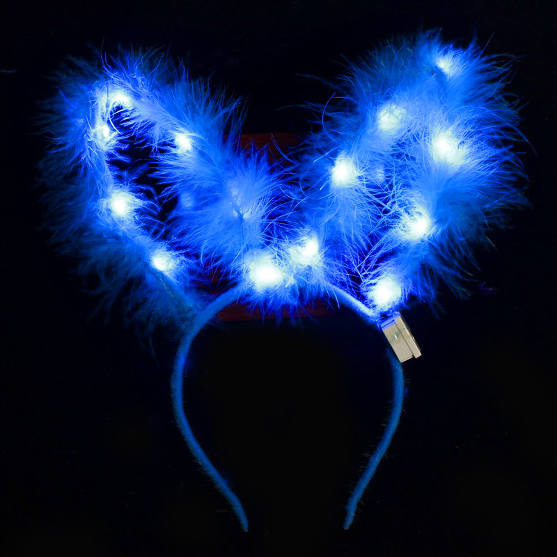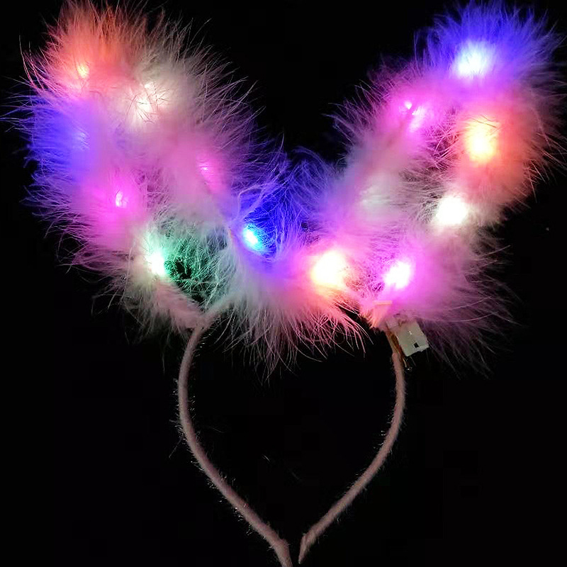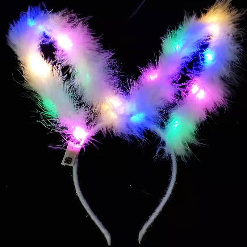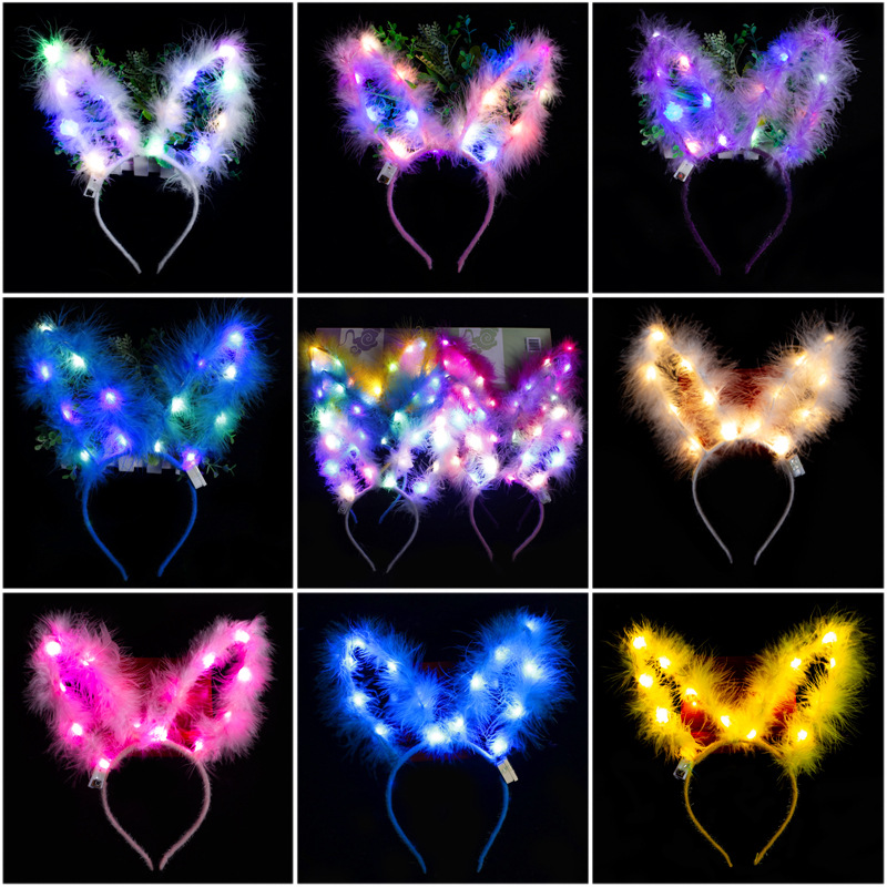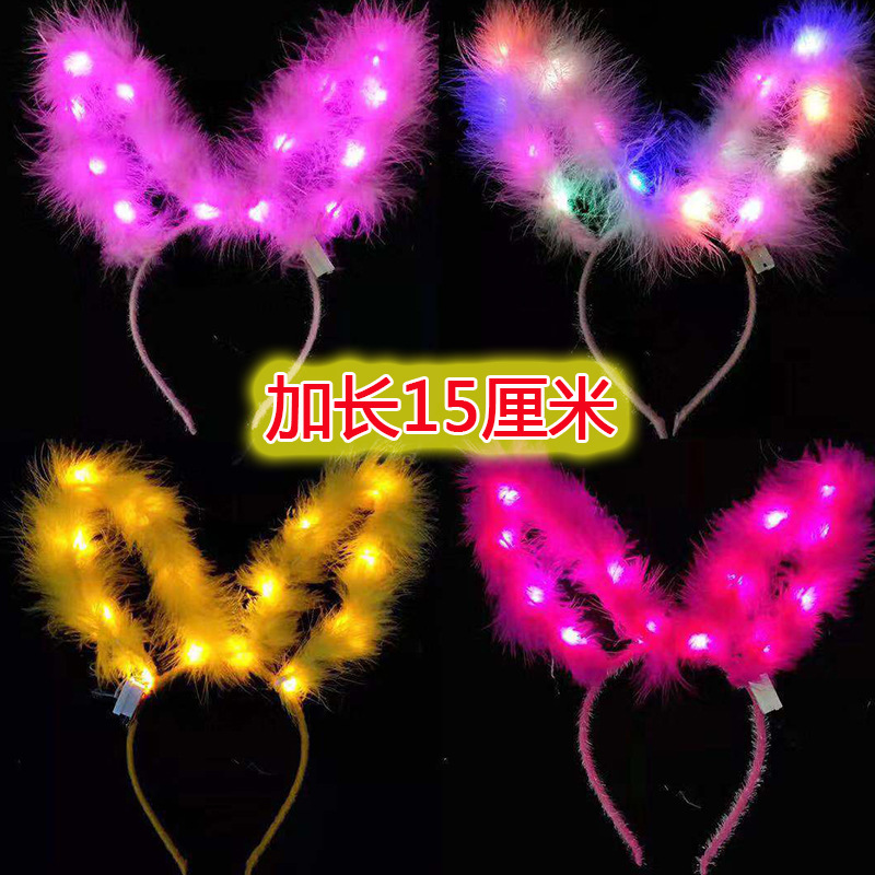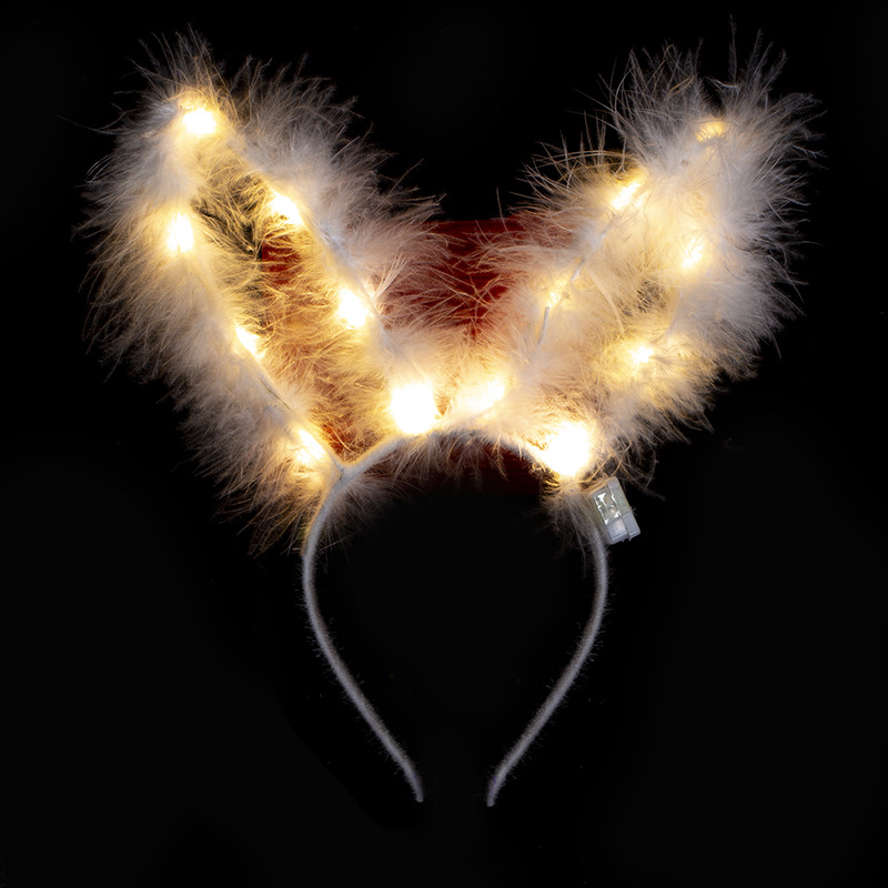 长羽毛加长14灯长毛绒兔耳朵发光发箍地推金丝羽毛发光兔耳朵头箍