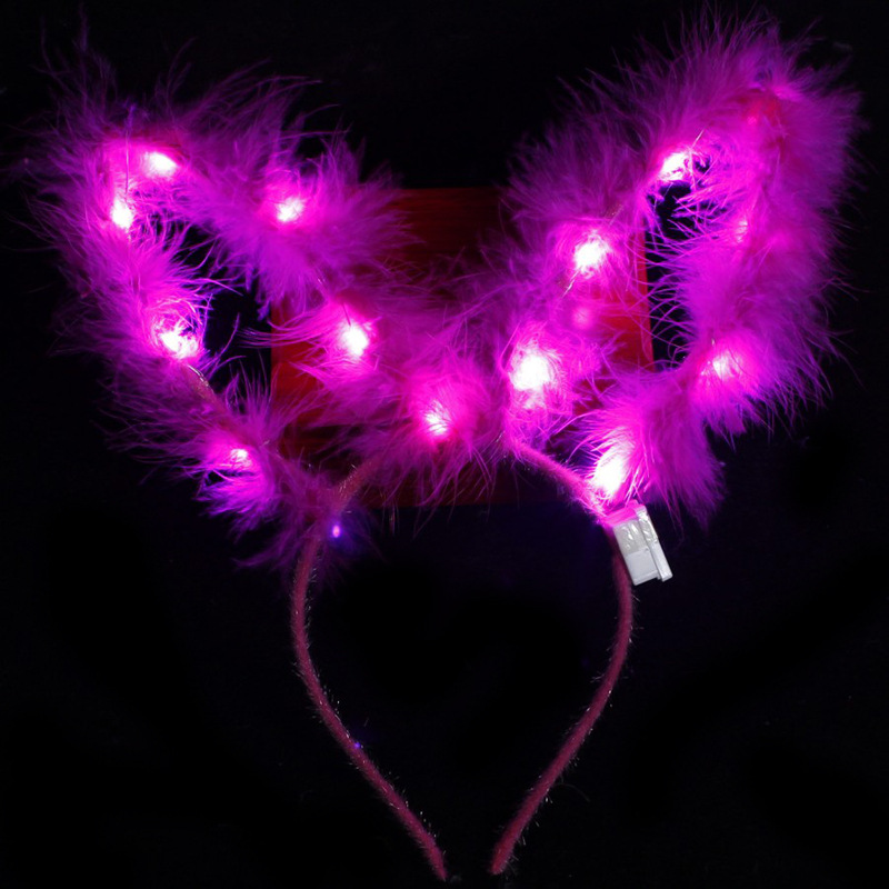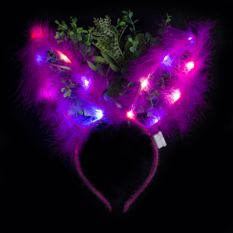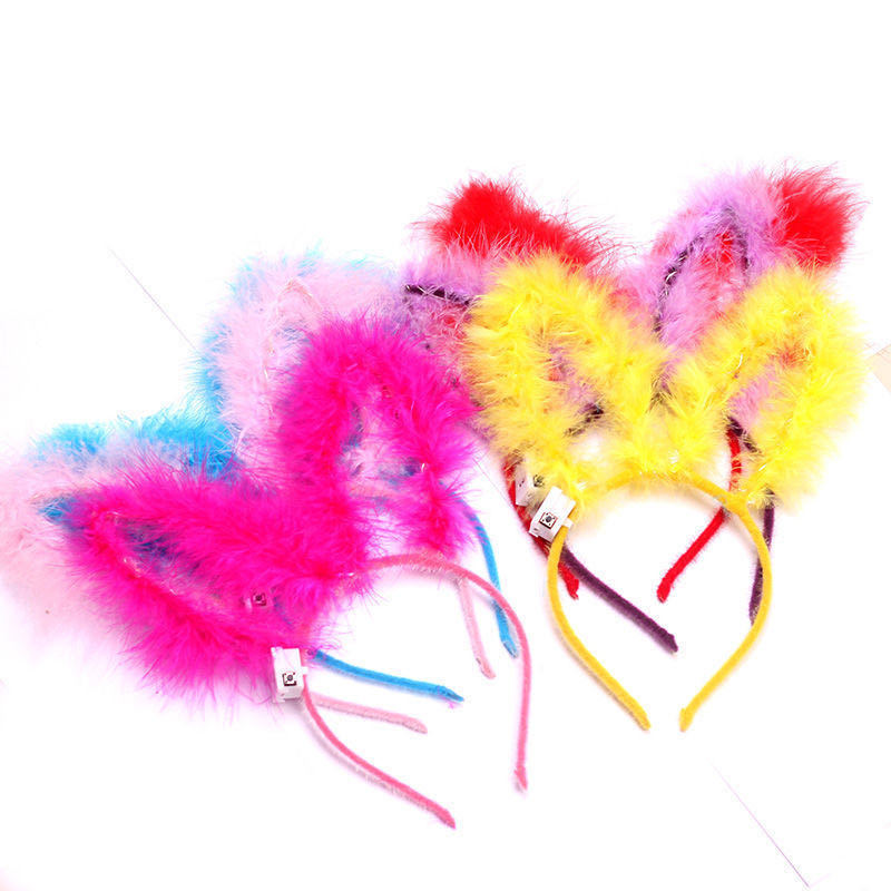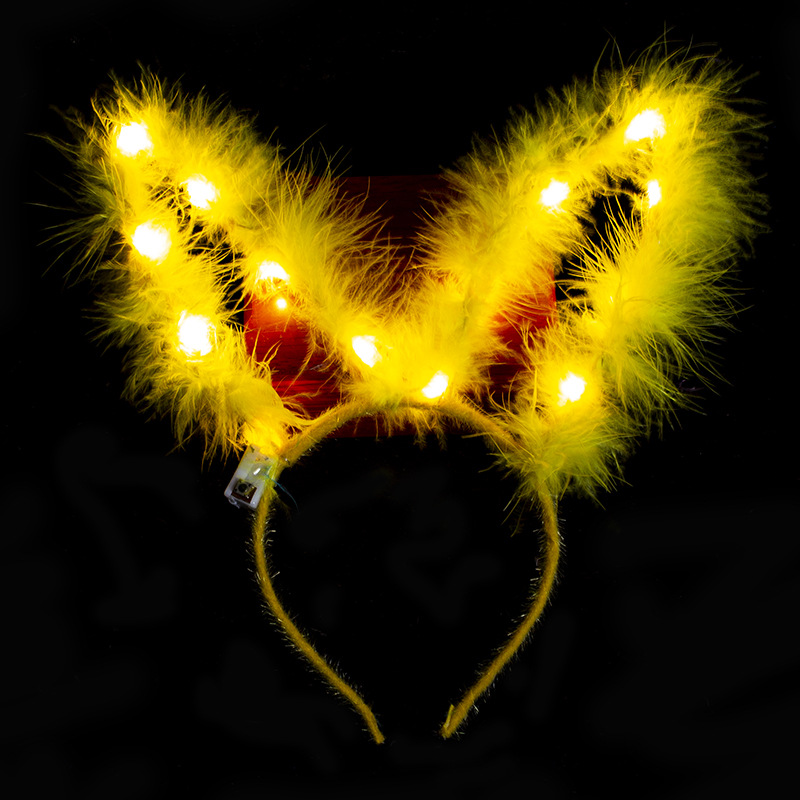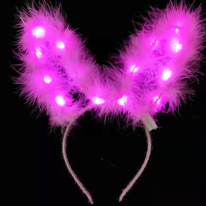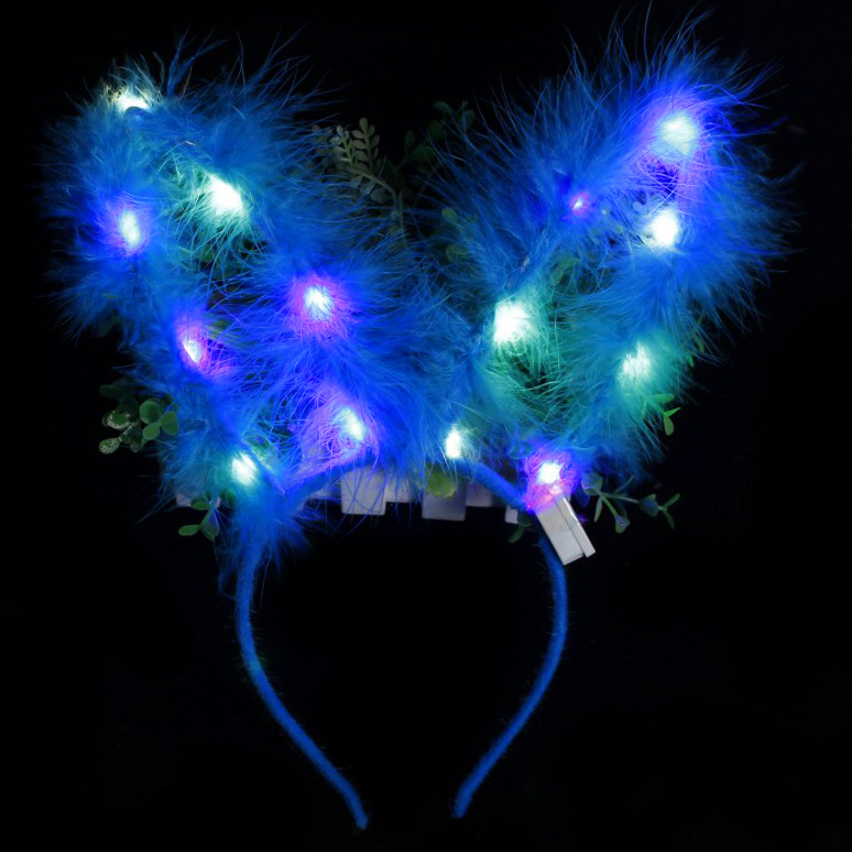 长羽毛加长14灯长毛绒兔耳朵发光发箍地推金丝羽毛发光兔耳朵头箍