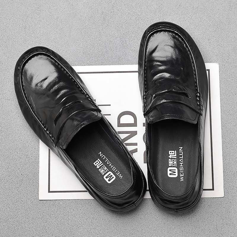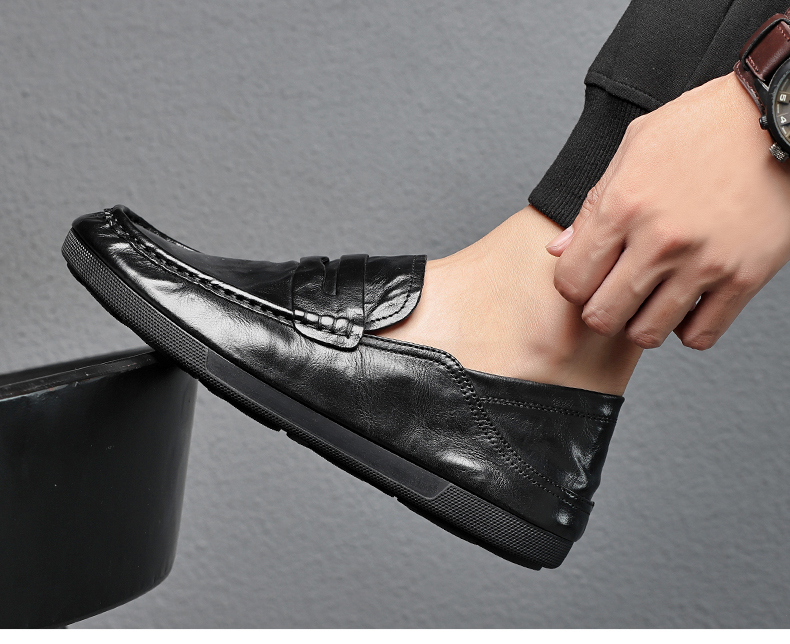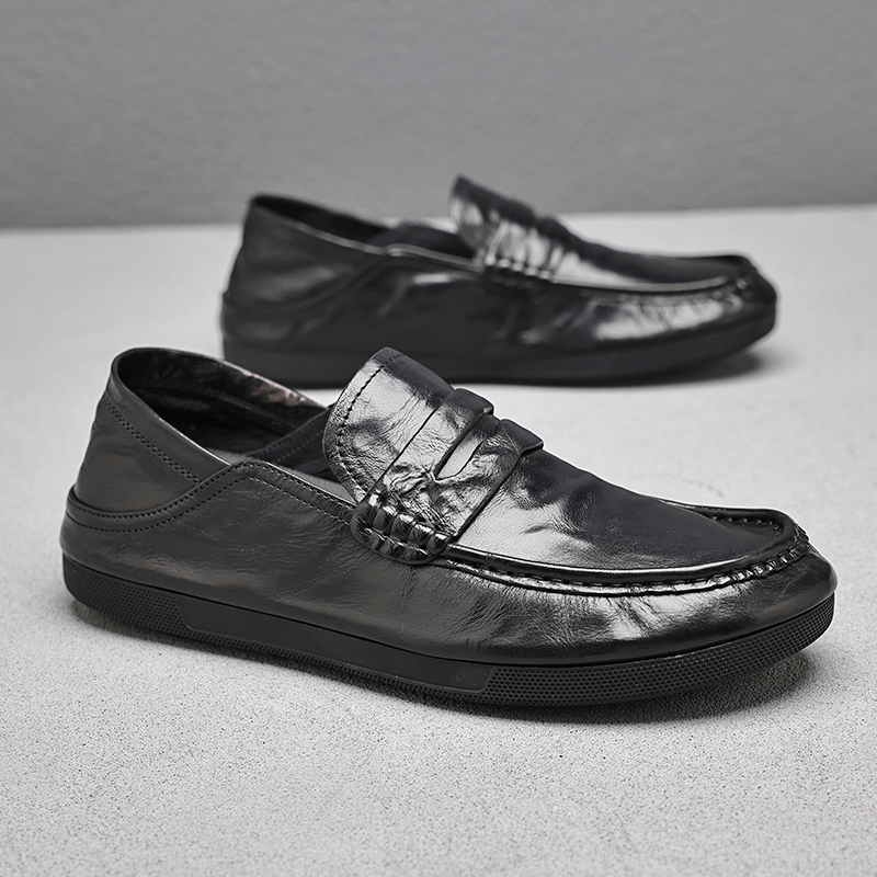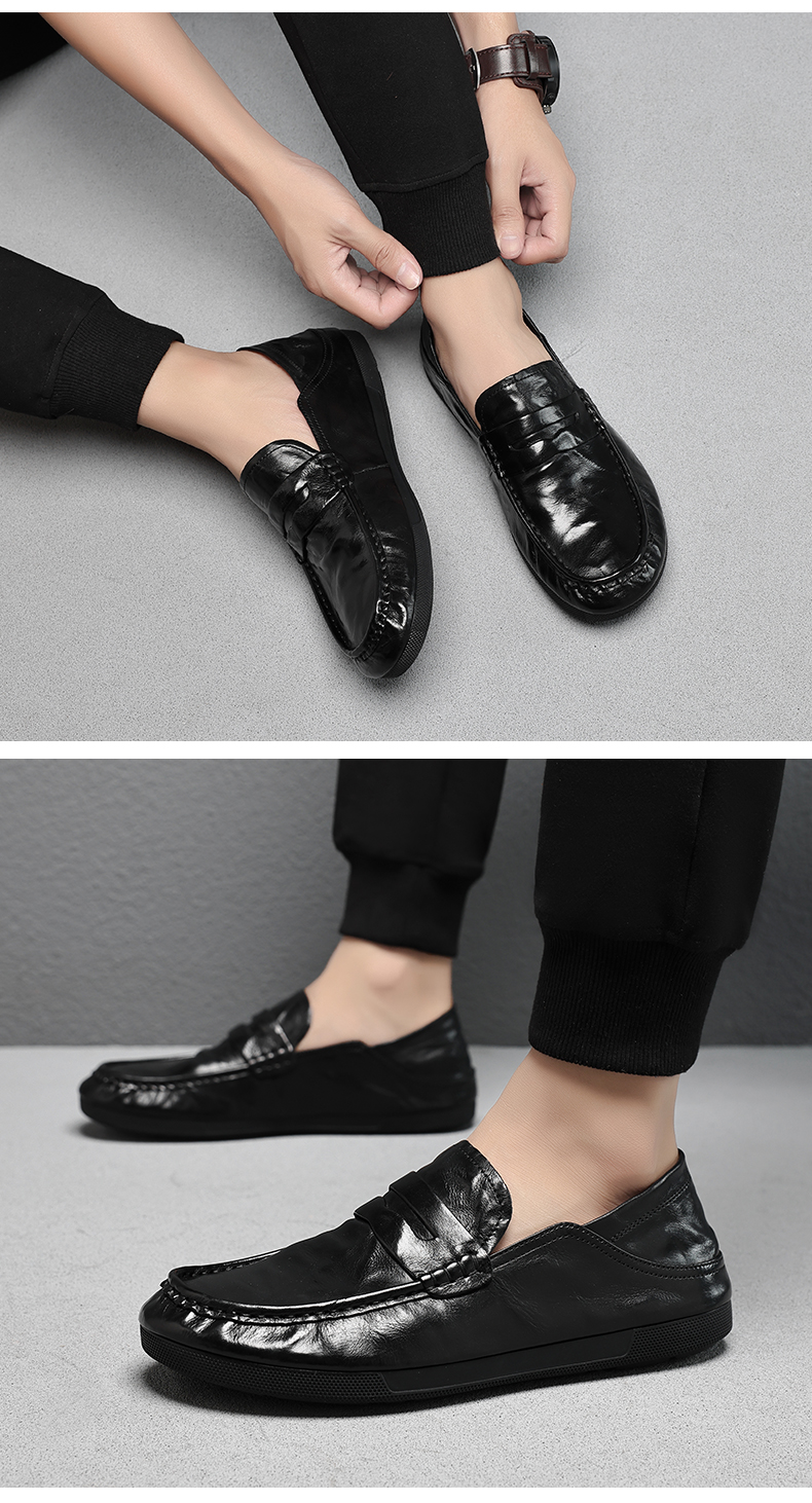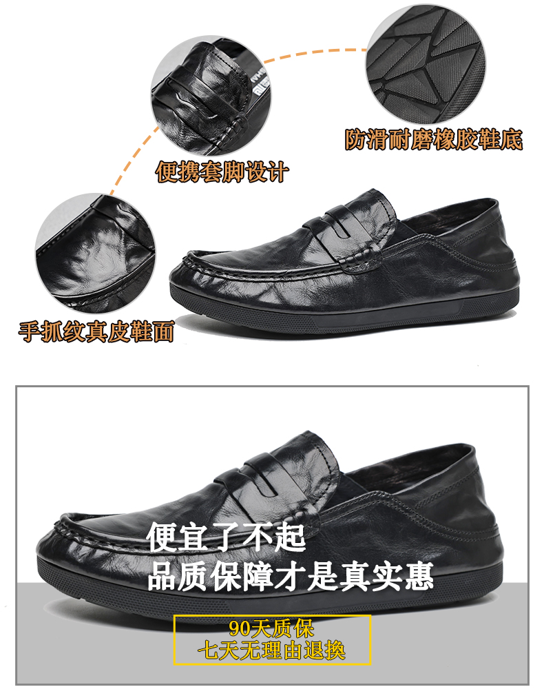 豆豆鞋男春秋季一腳蹬父親鞋商務休閒皮鞋男軟底舒適懶人真皮男鞋