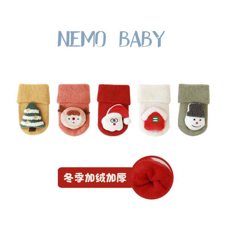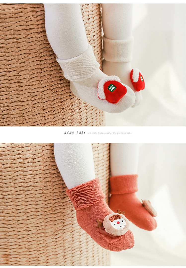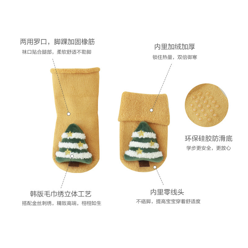 20年秋冬毛圈加厚宝宝袜子点胶防滑婴儿地板袜儿童圣诞卡通公仔袜
