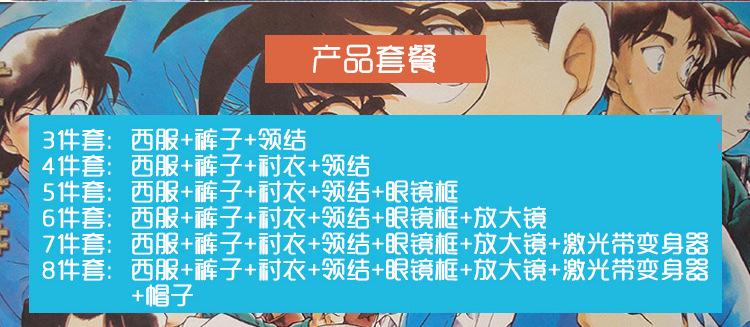 颜色 柯南3件套,柯南4件套,柯南5件套,柯南6件套,柯南7件套,柯南8件套,柯南放大镜,柯南变声器,柯南手表,柯南眼镜框,柯南帽子