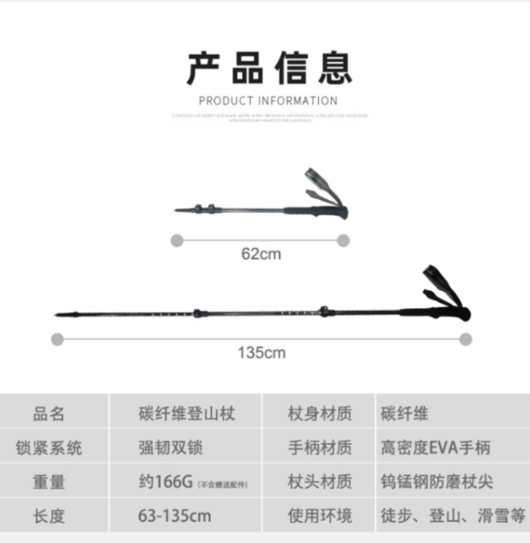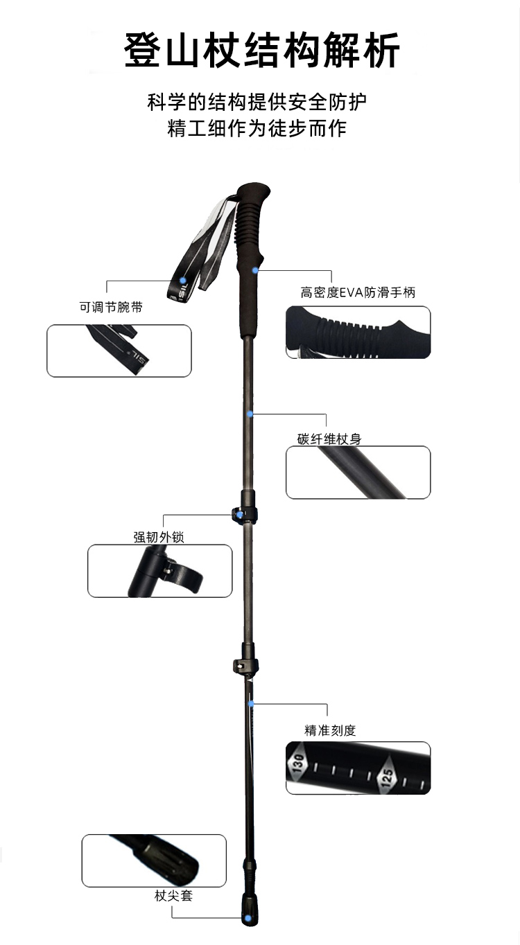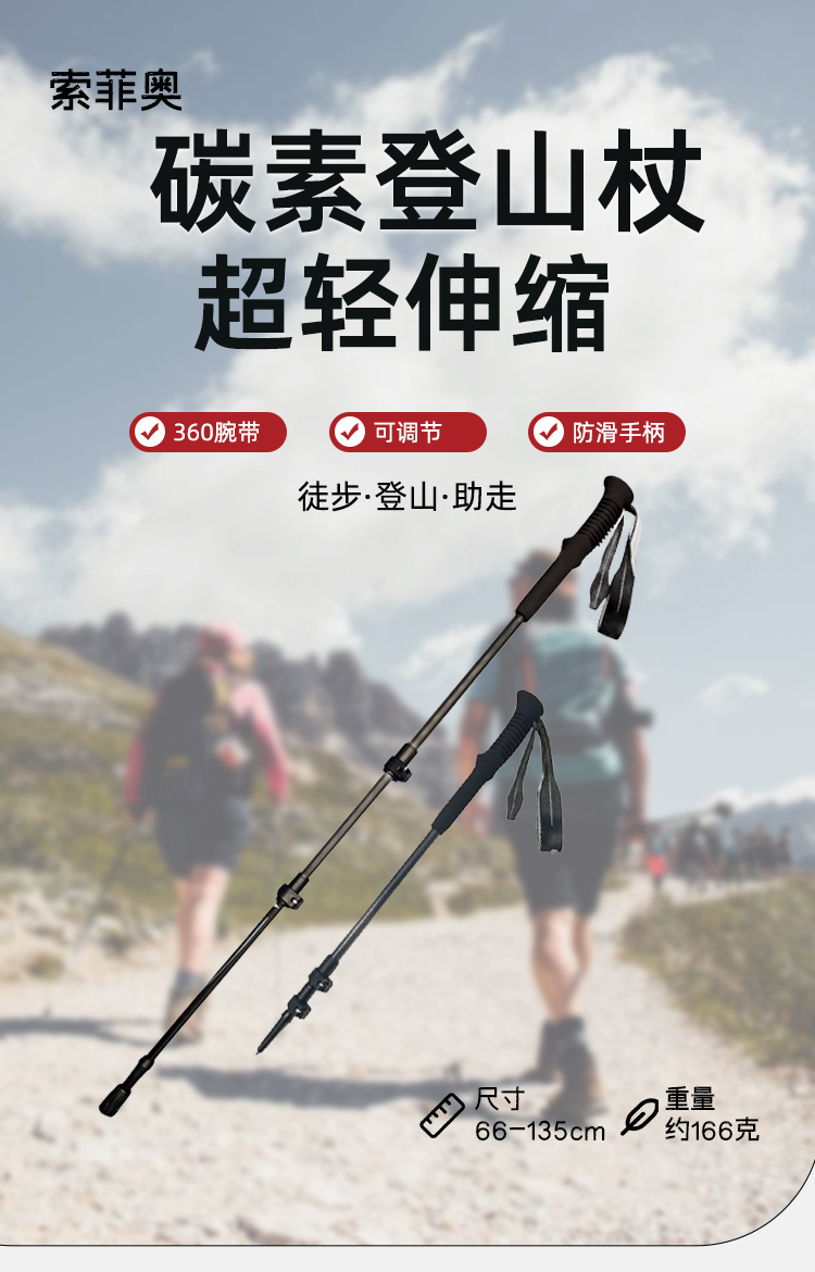 索菲奧登山杖戶外輕便三節伸縮碳纖維手杖外鎖超輕徒步爬山裝備