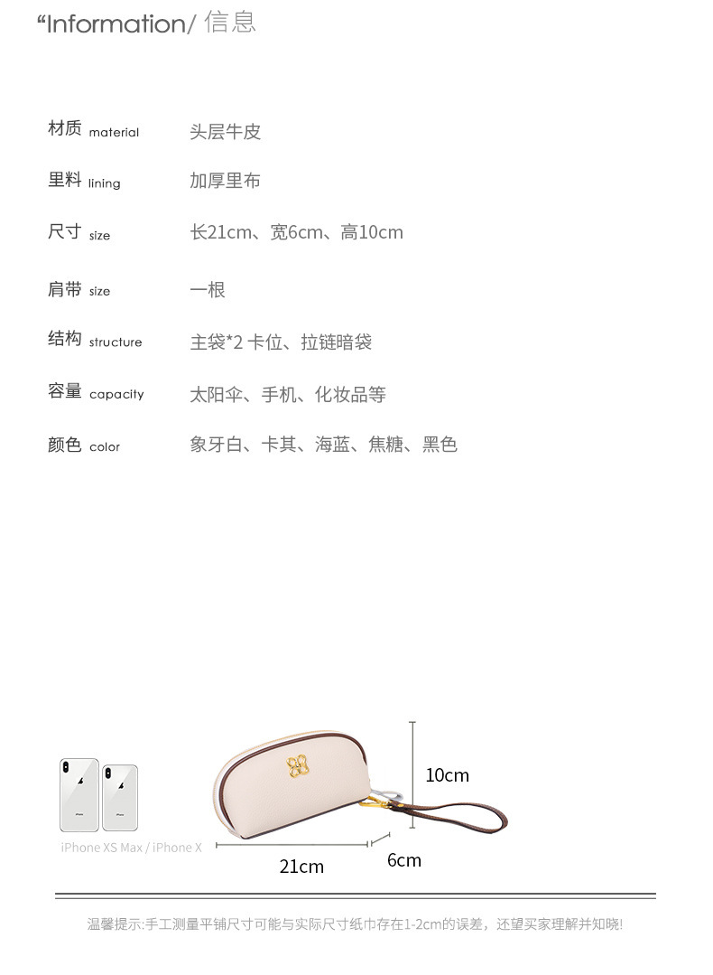 颜色 黑色,卡其色,海蓝色,焦糖色,象牙白