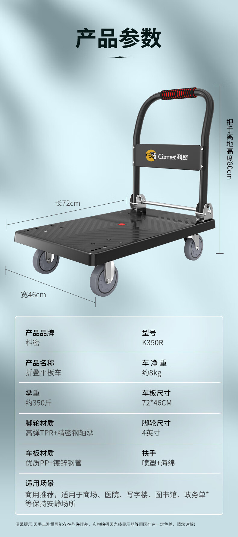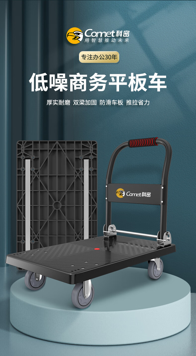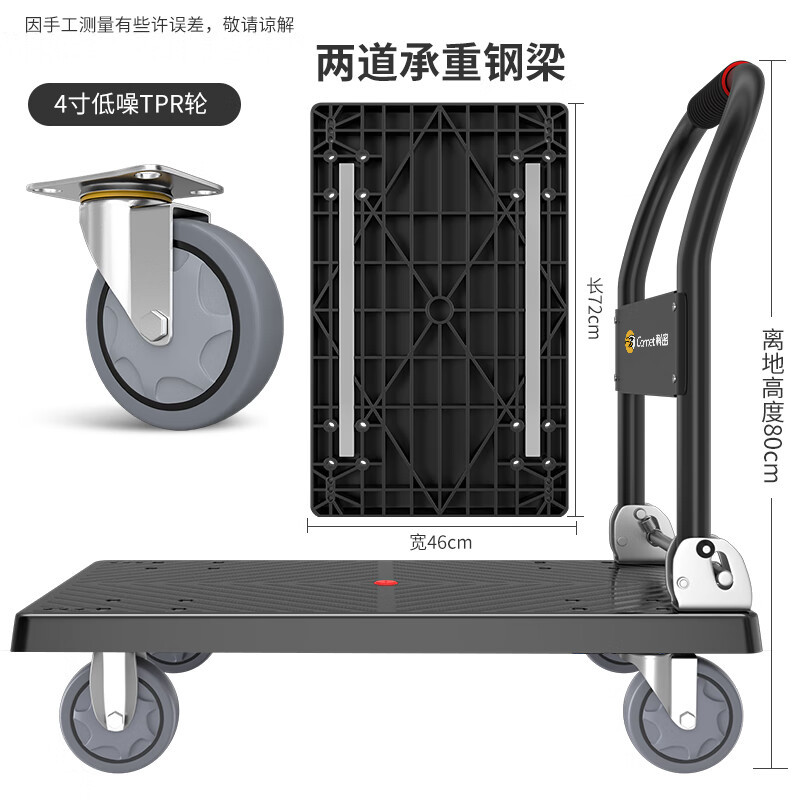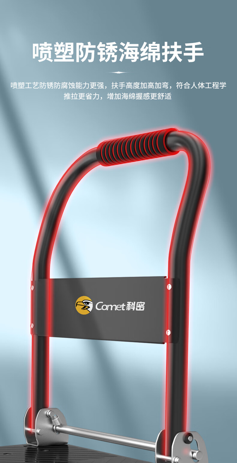 科密手推车小推车拉货平板车折叠手拉车搬运车拖车低噪承重350斤