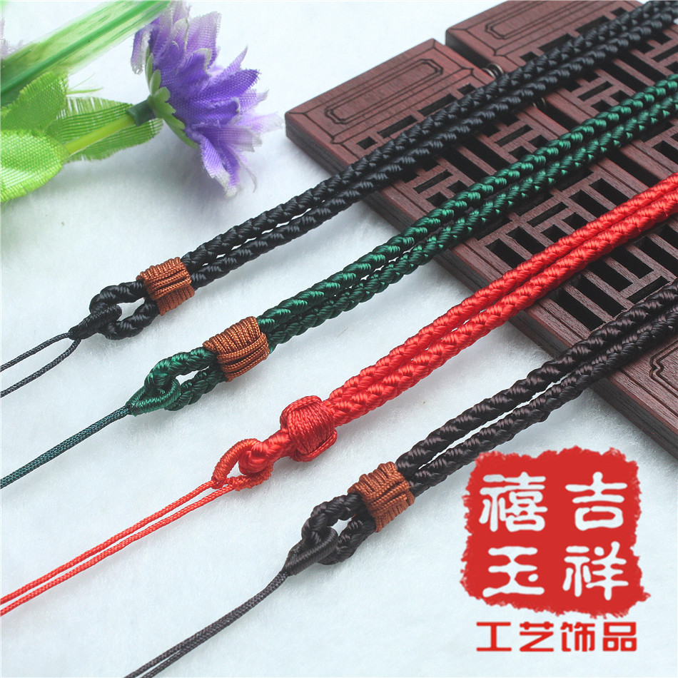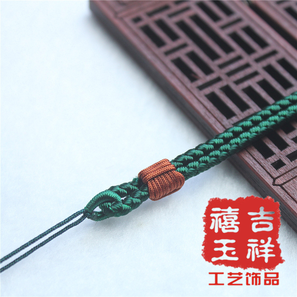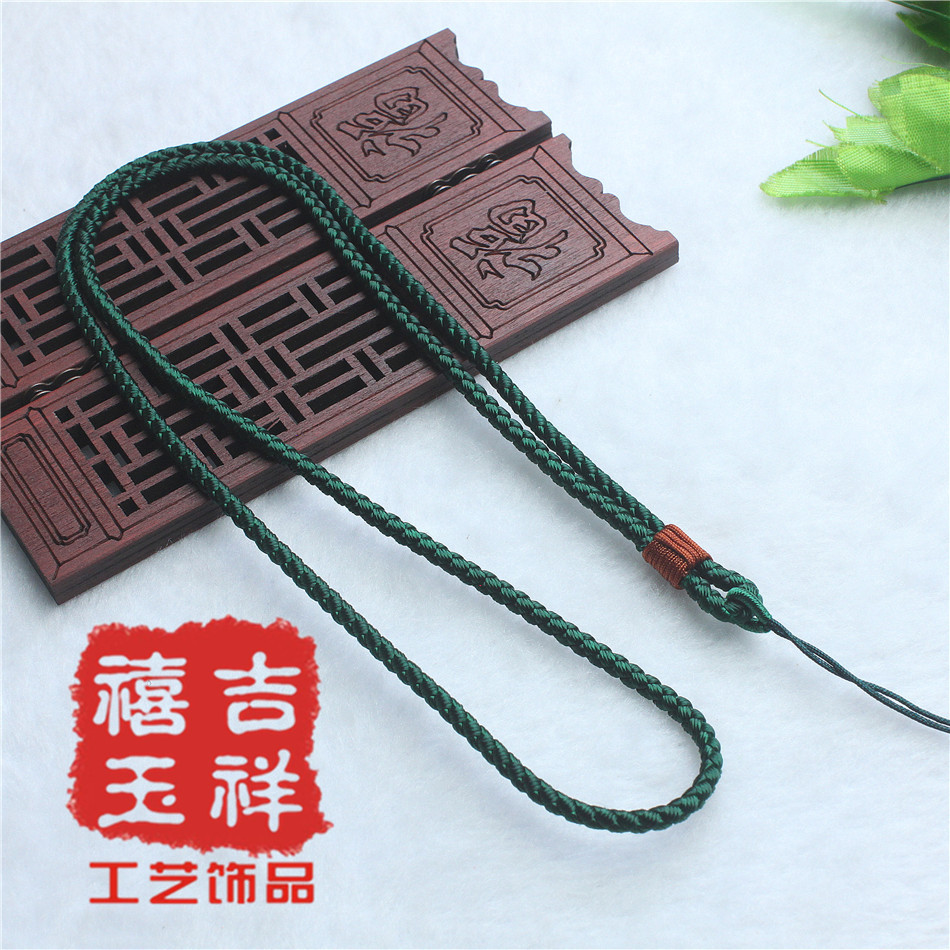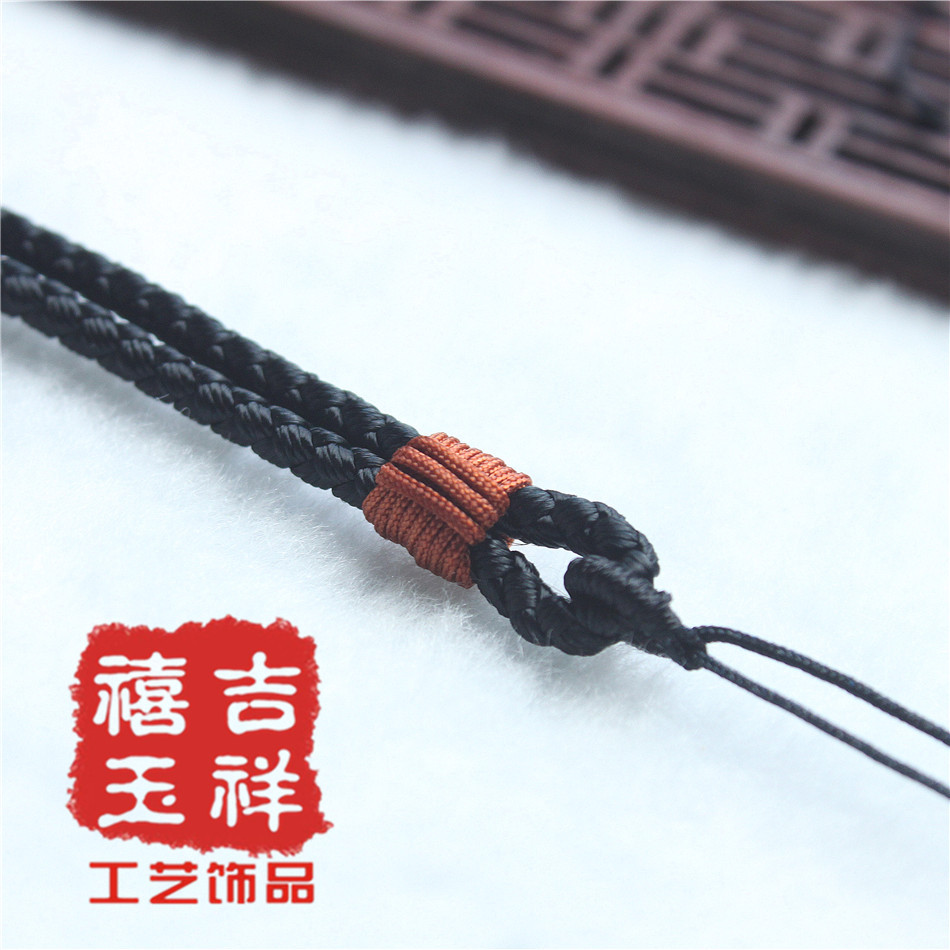 【材质】:台湾玉线【规格】:项链挂绳长短不可调节:约36cm【用途】:可用于挂金器、银器、玉器、陶瓷器、饰品配件等吊坠用【包装】:无单独的包装【说明】:手工编织项链挂绳,出现线头或者毛边的情况实属正常只要用打火机烧一下就能弄好。