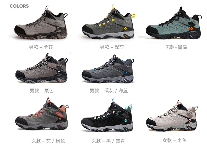 顏色分類 米灰 高筒 女款 淺灰/潛粉色 女款 深灰/粉色 女款 淺卡其/珊瑚粉 女款 灰/雪青 女款 黑/雪青 加絨女款 深灰 低幫男款 卡其 低幫男款 黑/淺灰 低幫男款 深灰 高筒男款 卡其 高筒男款 墨綠 高筒男款 碳灰/海蘭 高筒男款 慄色 高筒男款 黑/磚紅 高筒男款 沙色 高筒男款 深灰 加絨男款 卡其 加絨男款 墨綠 加絨男款