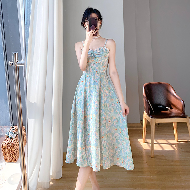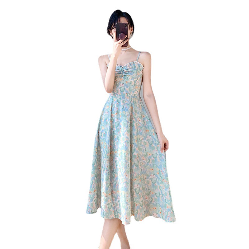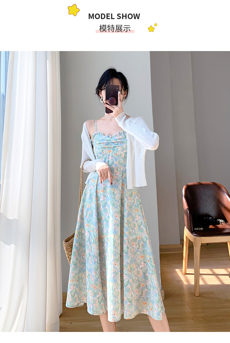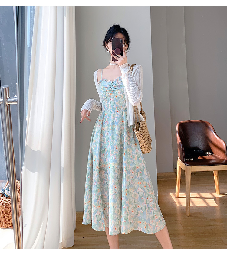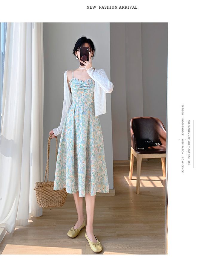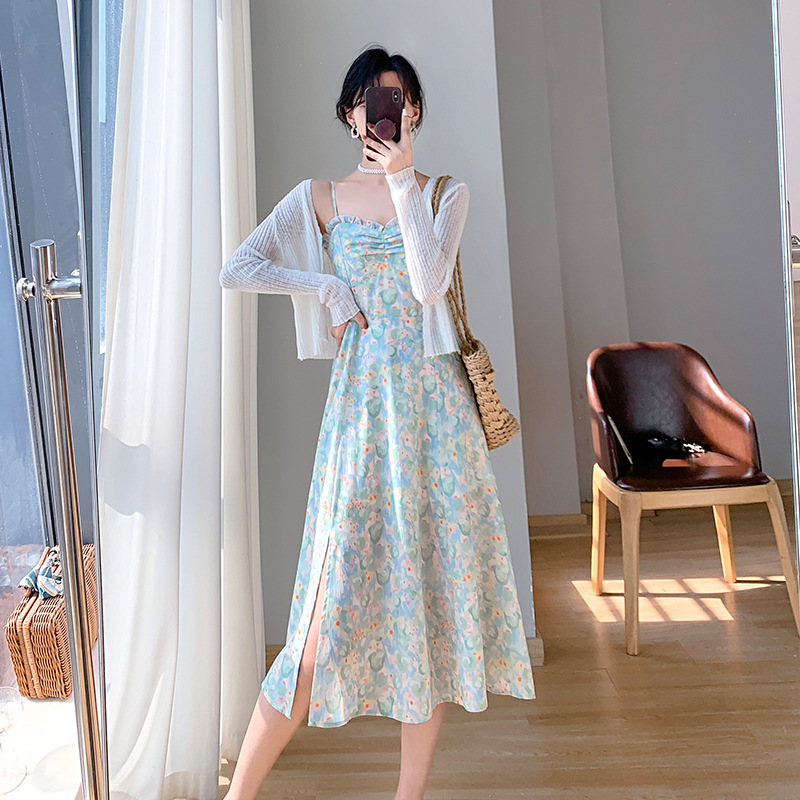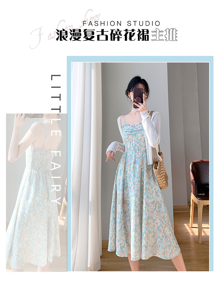 2023夏新款法式复古温柔风收腰显瘦防晒衣+碎花吊带连衣裙女套装