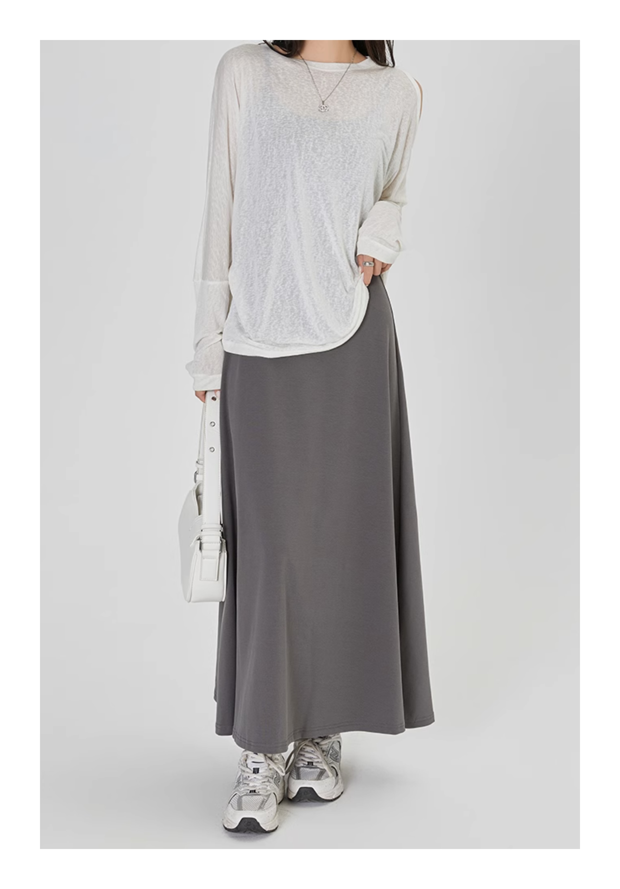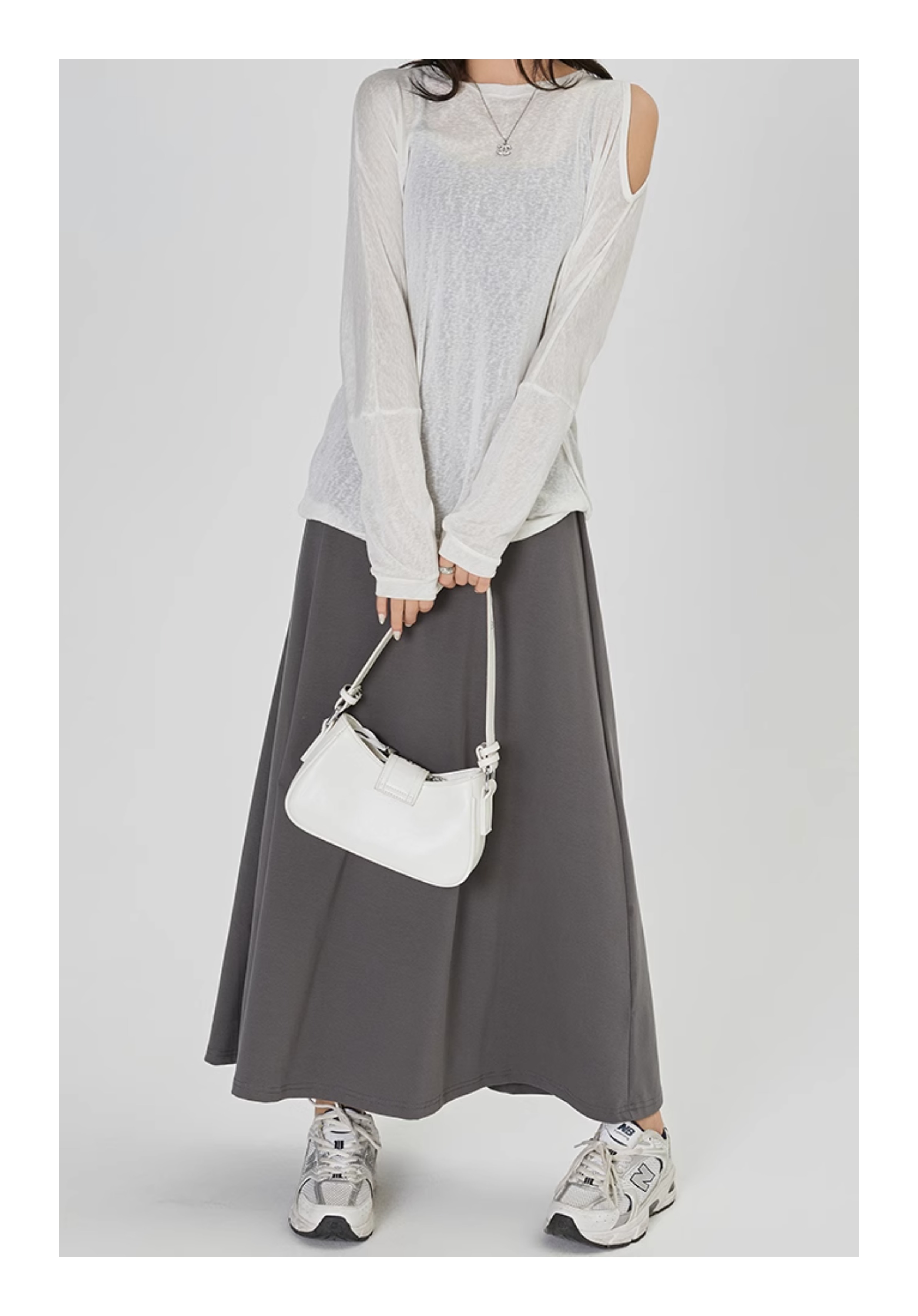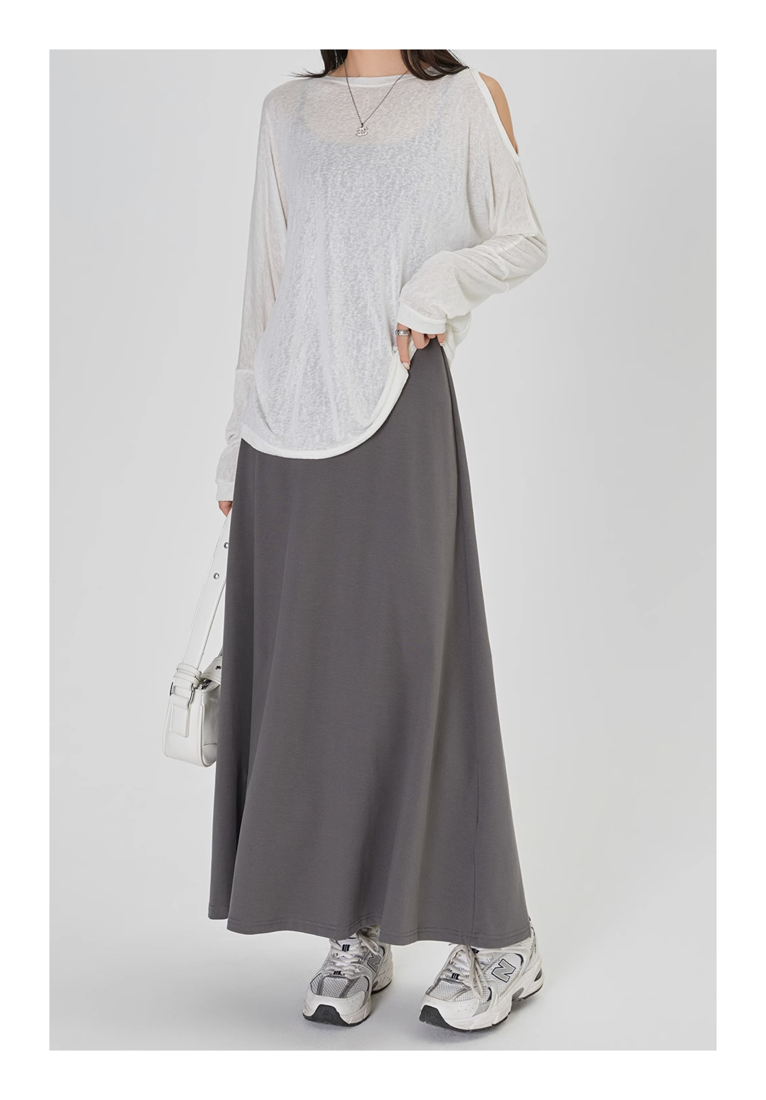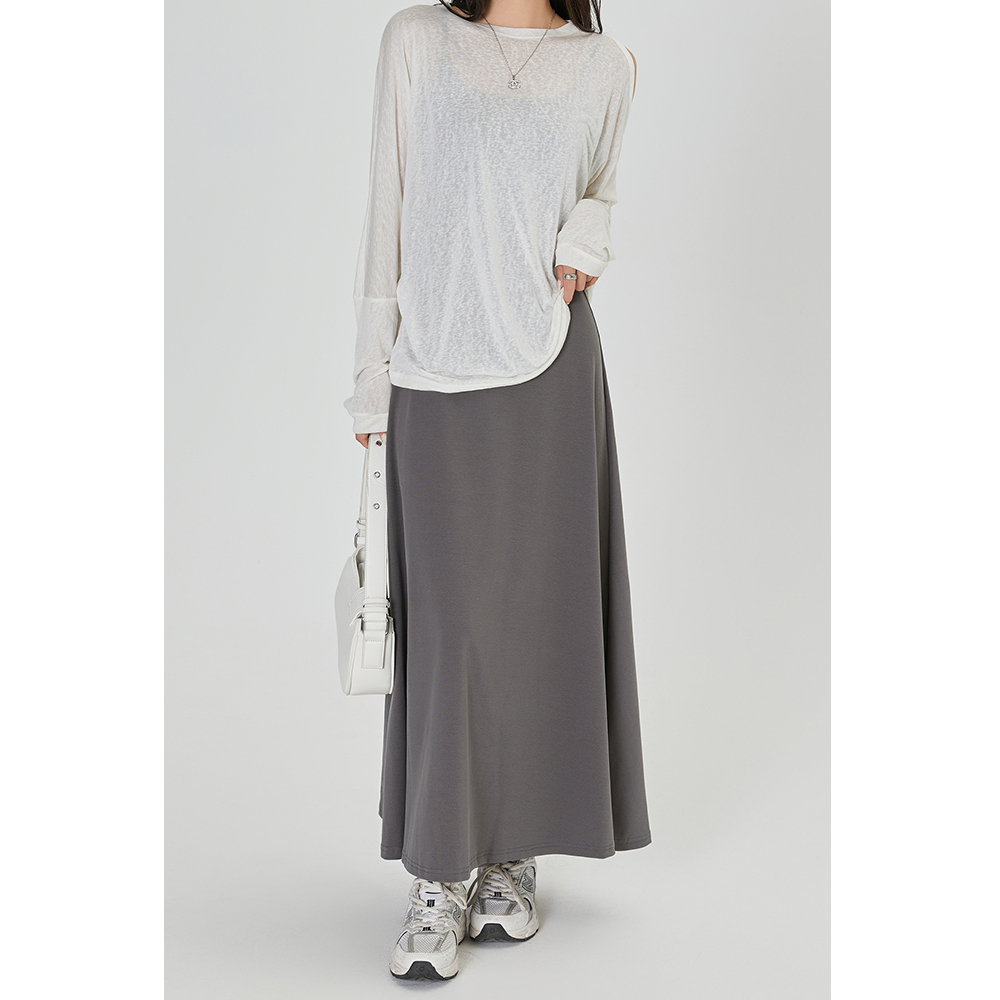 LINFANGING 灰色微彈洋裝秋季百搭寬鬆a字長版吊帶裙女休閒長裙