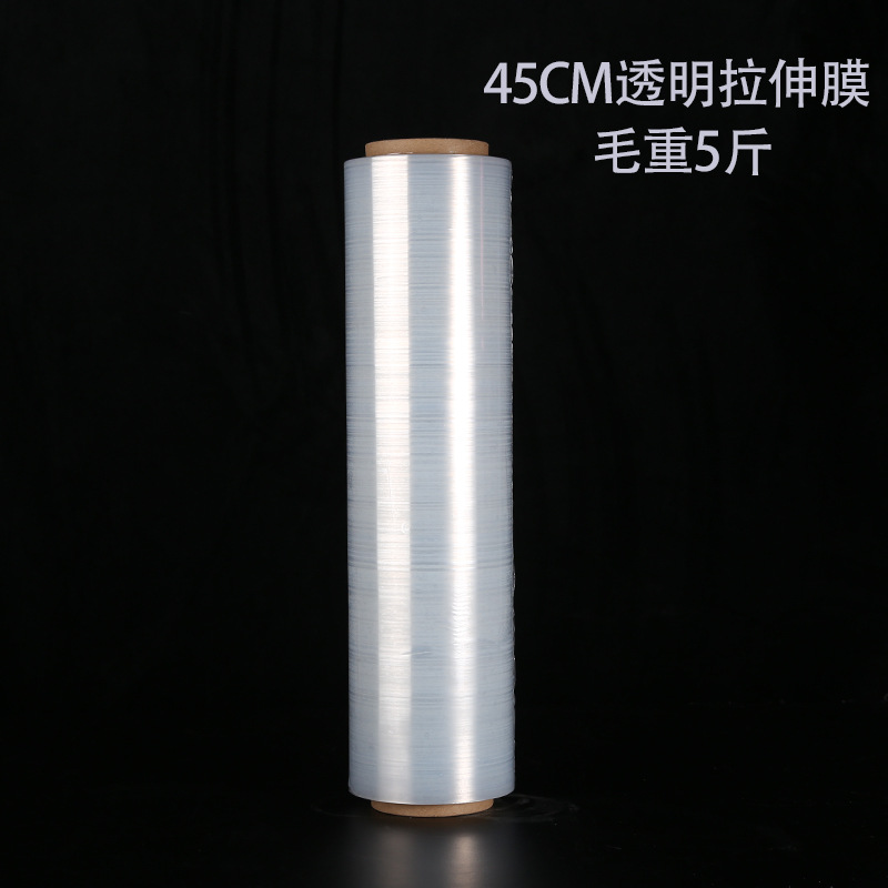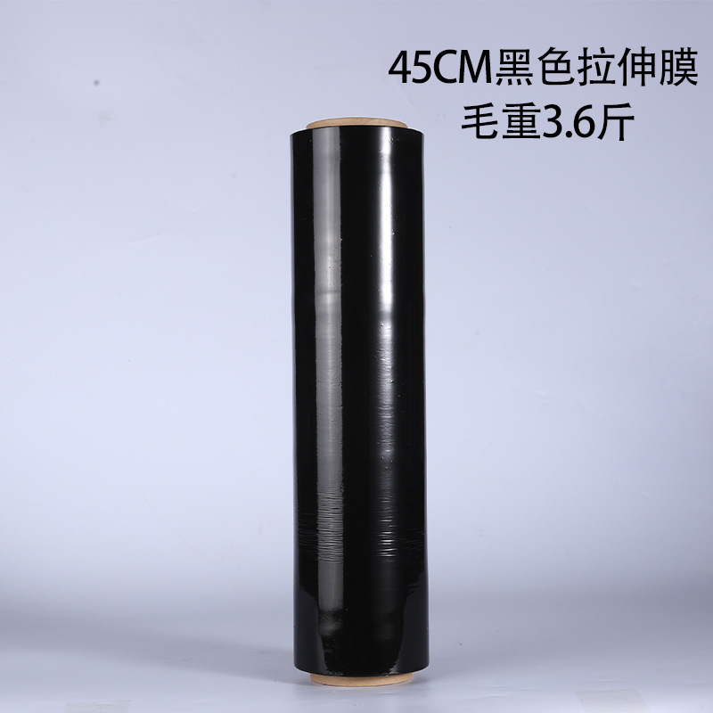 大量批发打包膜pe拉伸膜45透明工业保鲜膜黑色缠绕膜托盘包装围膜
