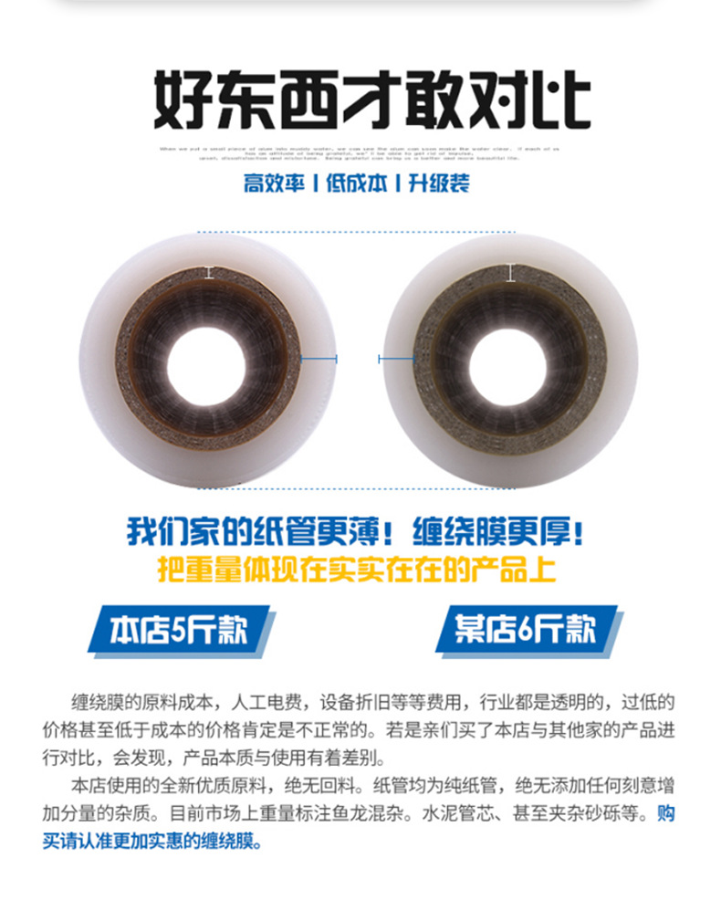所有规格标示的重量为毛重,计算净重需减去纸芯重量0.5kg,因本产品为粗加工产品且具有弹性和延展性,上下浮动0.1-0.2KG也是正常。现货均为手工使用,如需机用,请联系客服定做。