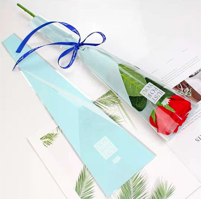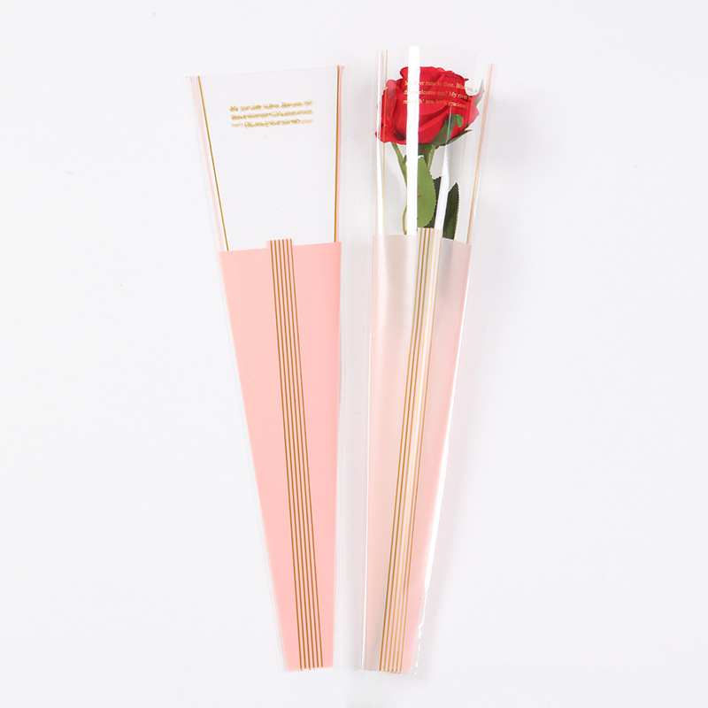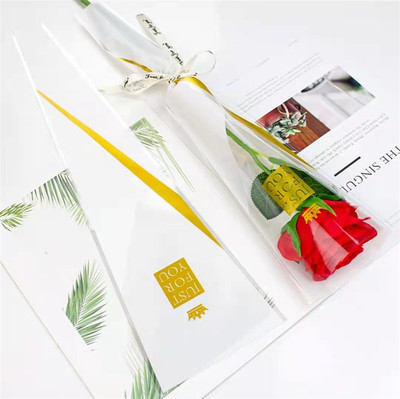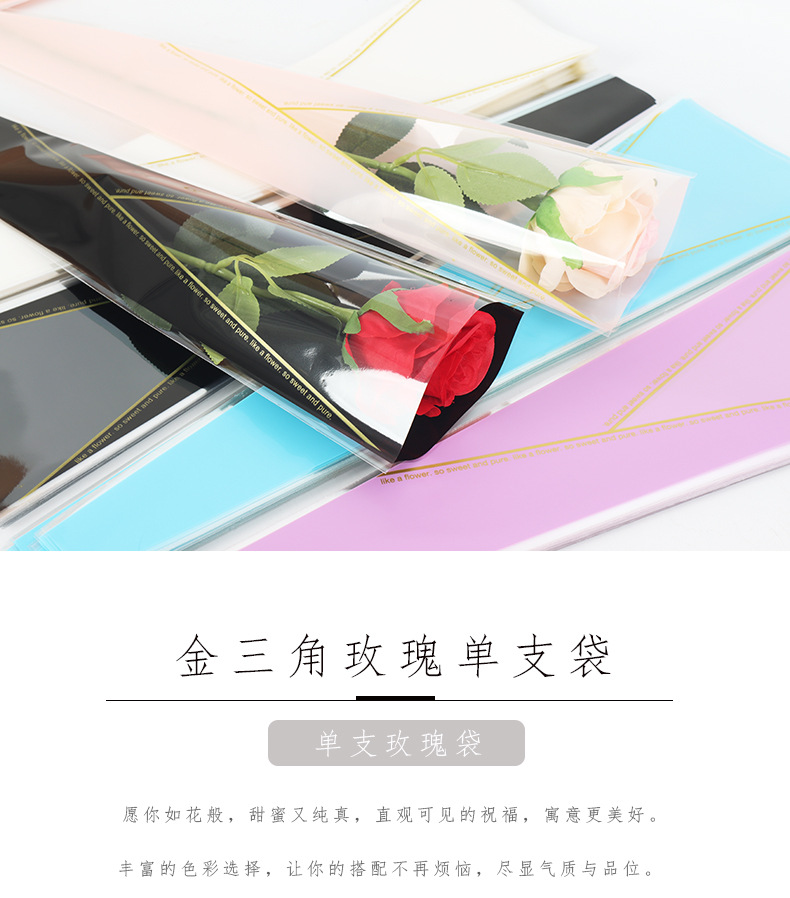 情人节金三角透明单支玫瑰袋花束包装套袋鲜花包花diy材料包装袋