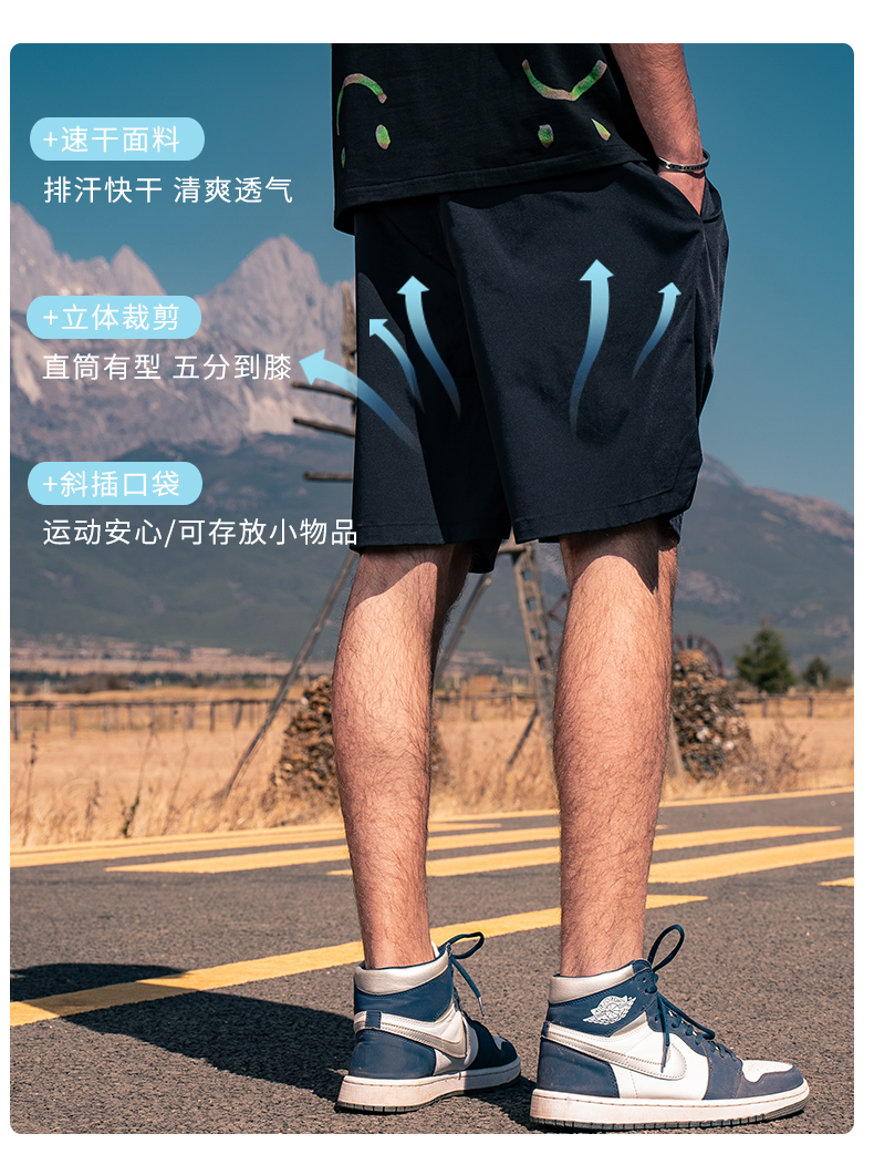 [輕薄速乾]夏季休閒短褲男外穿潮牌寬鬆五分運動褲薄款男生褲子潮