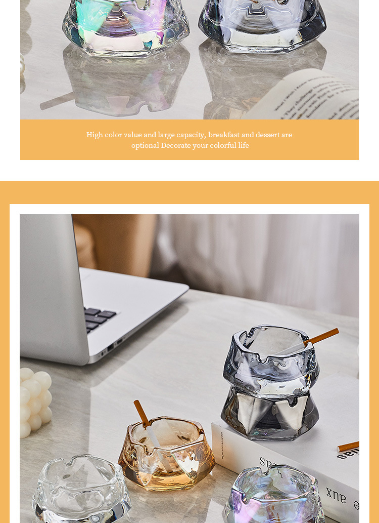 美索米亚ins风创意水晶玻璃烟灰缸家用客厅轻奢ktv酒吧商用烟缸
