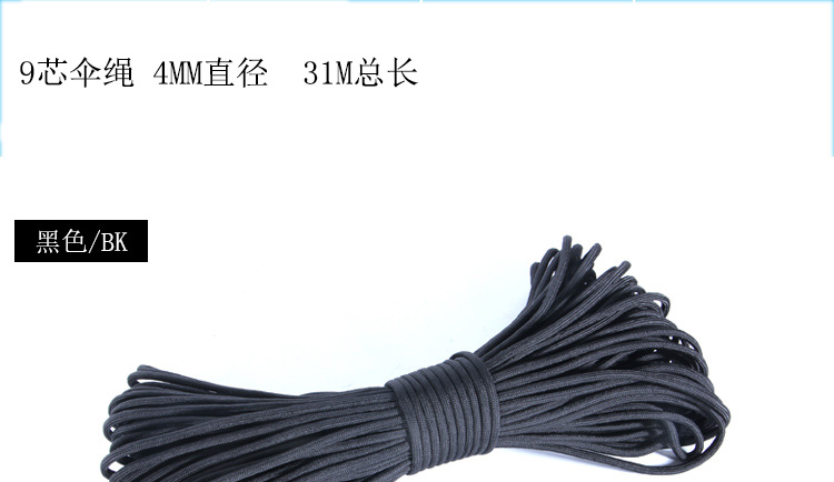 9芯31米傘繩救生繩包芯繩可用於刀柄捆紮揹包捆帳篷拉繩棍繩
