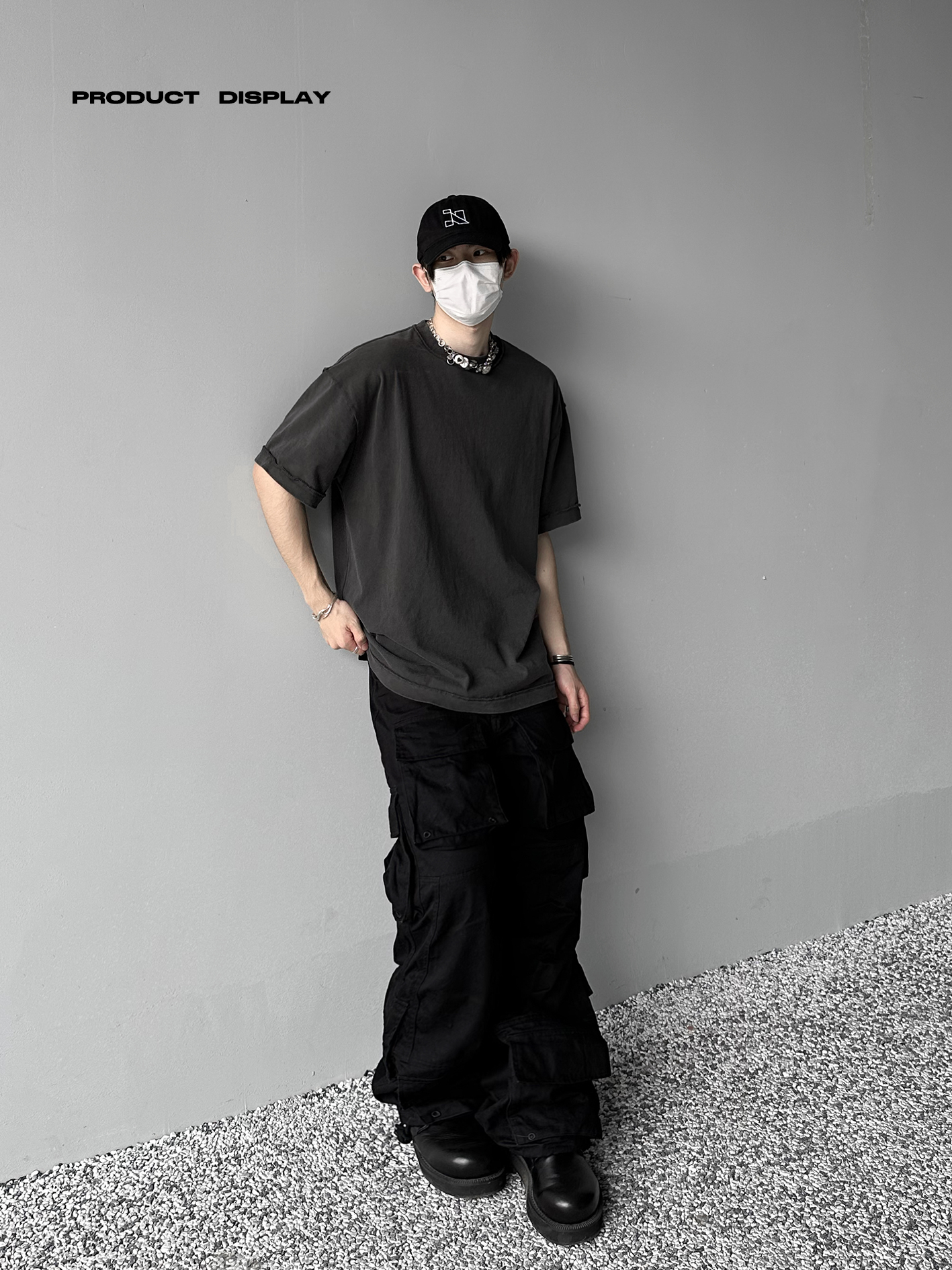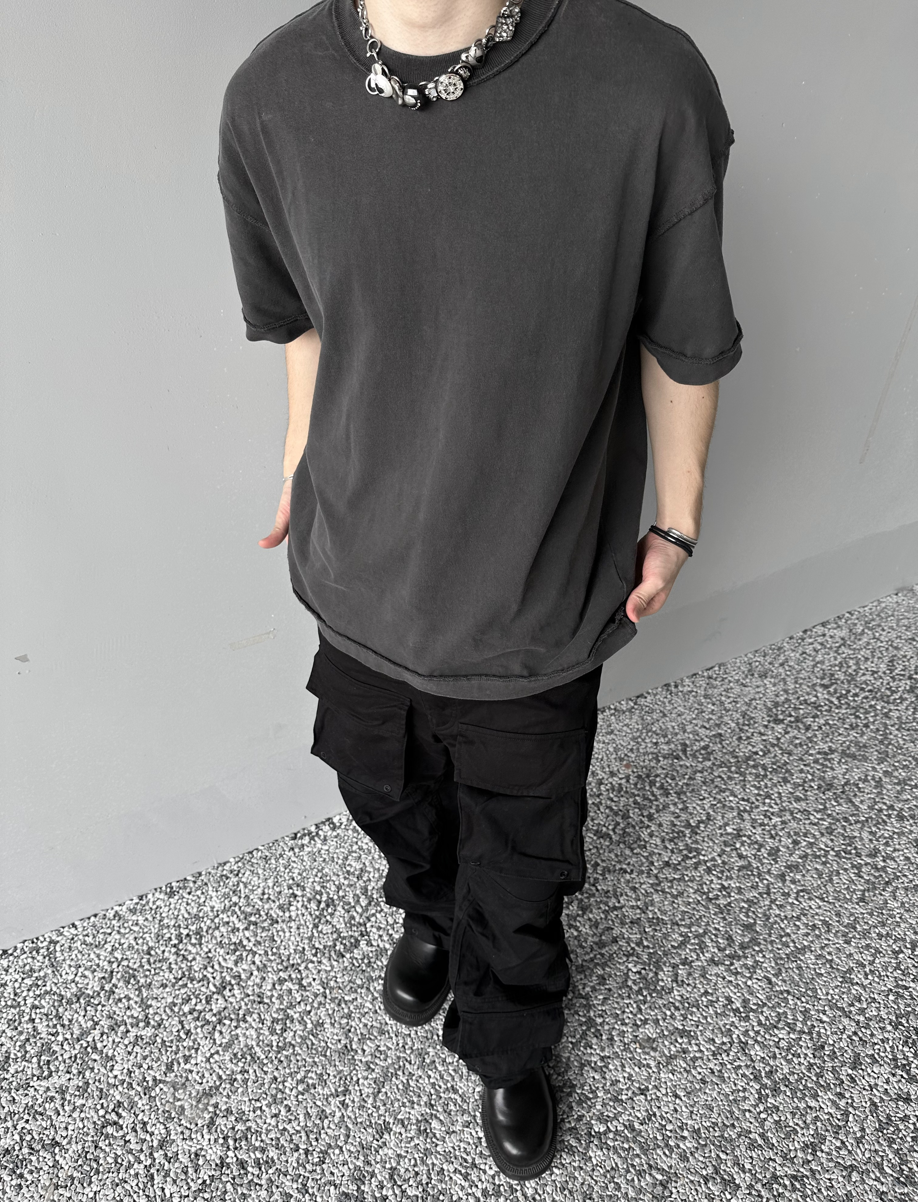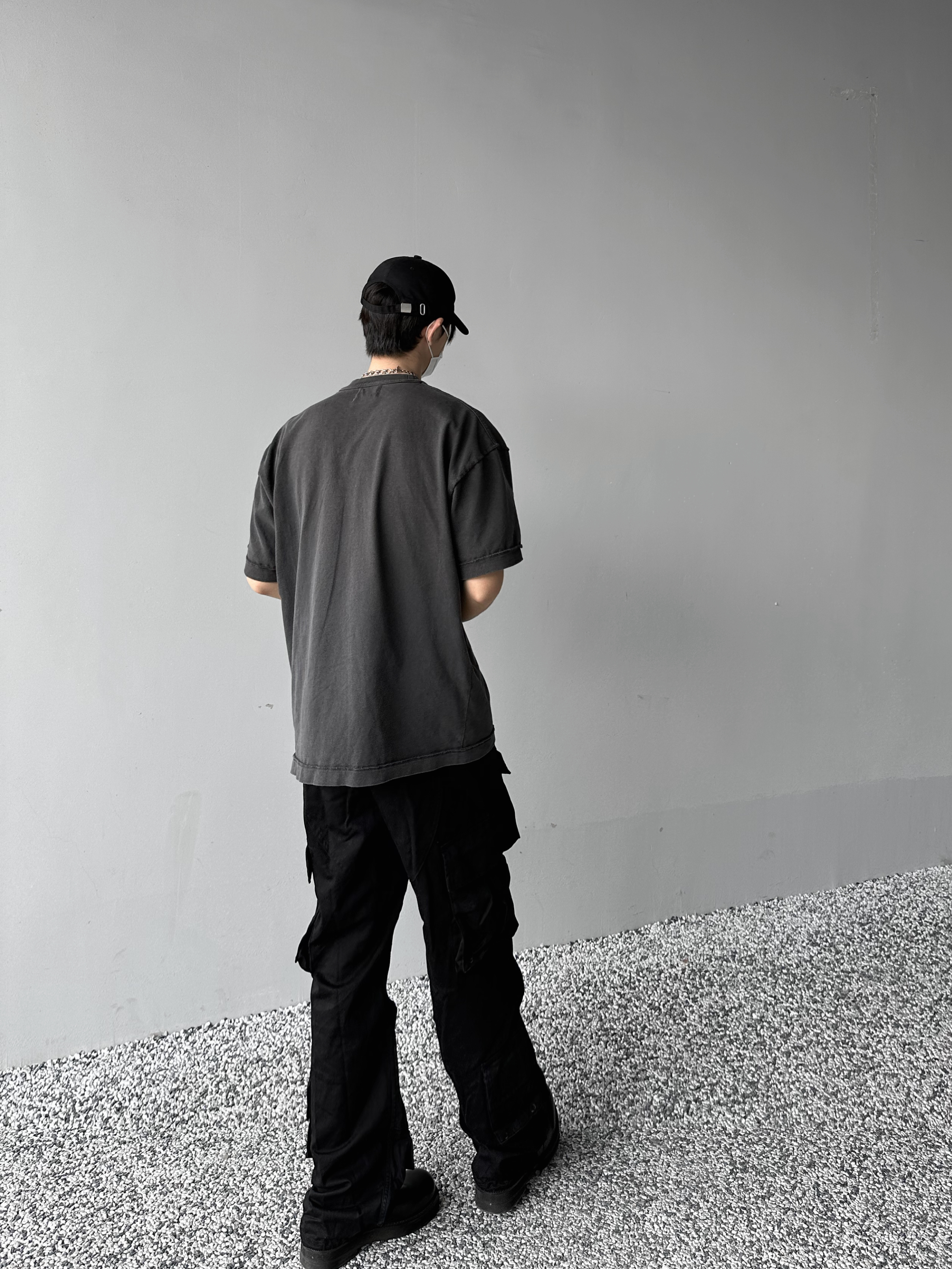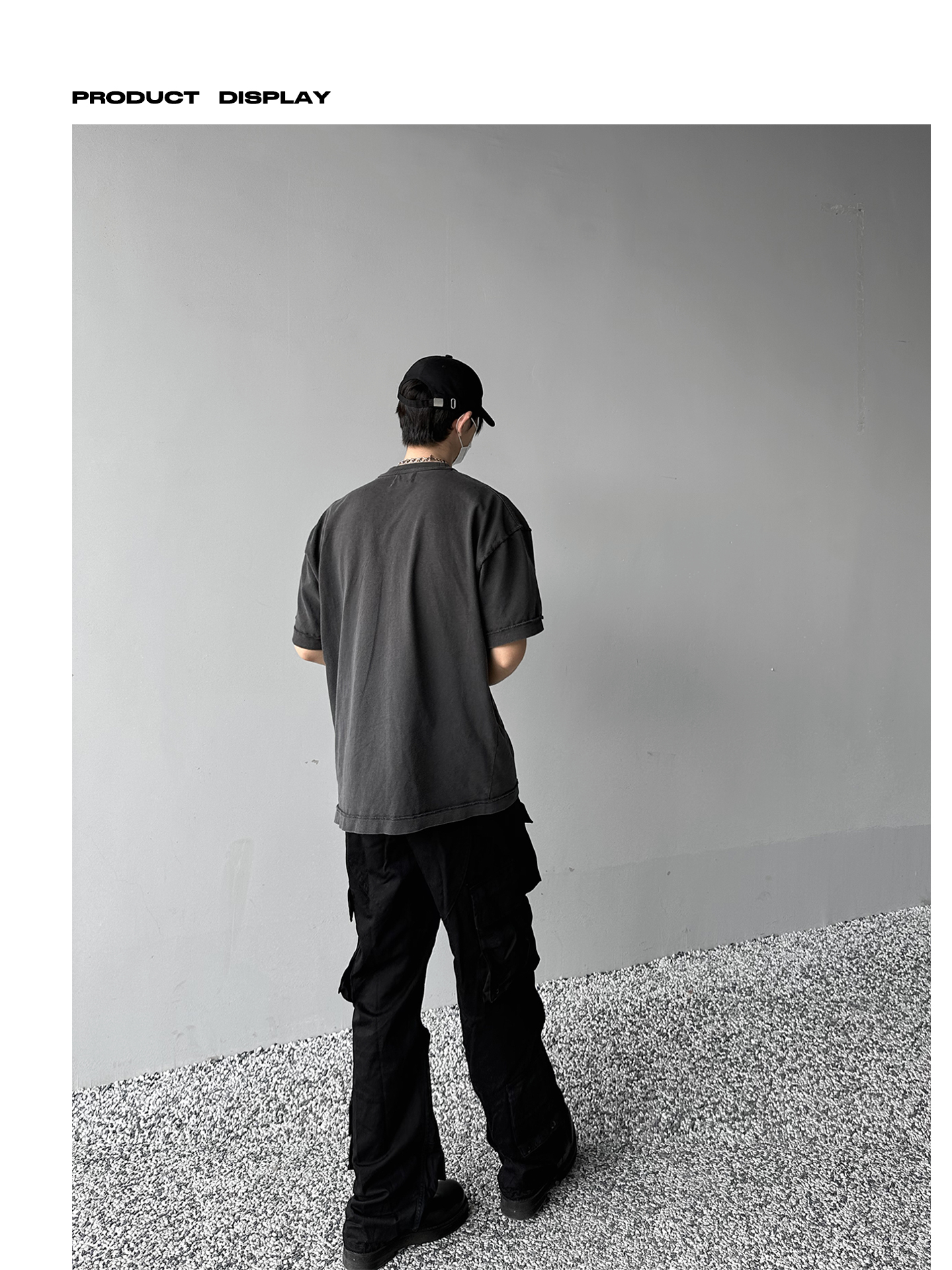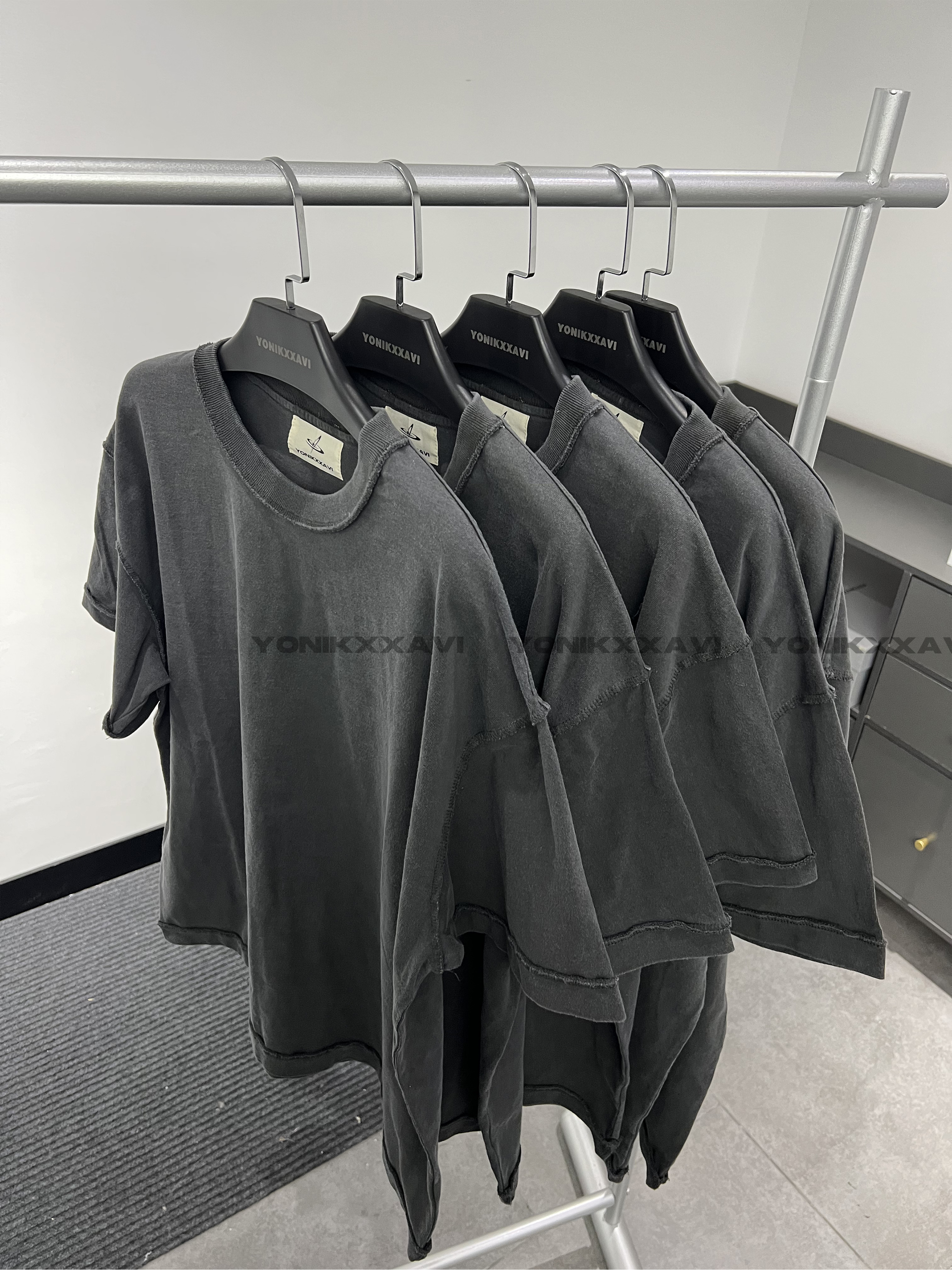 「Rabbit.b」反縫線加固螺紋領口廓形寬鬆短袖 水洗做舊中性T恤男