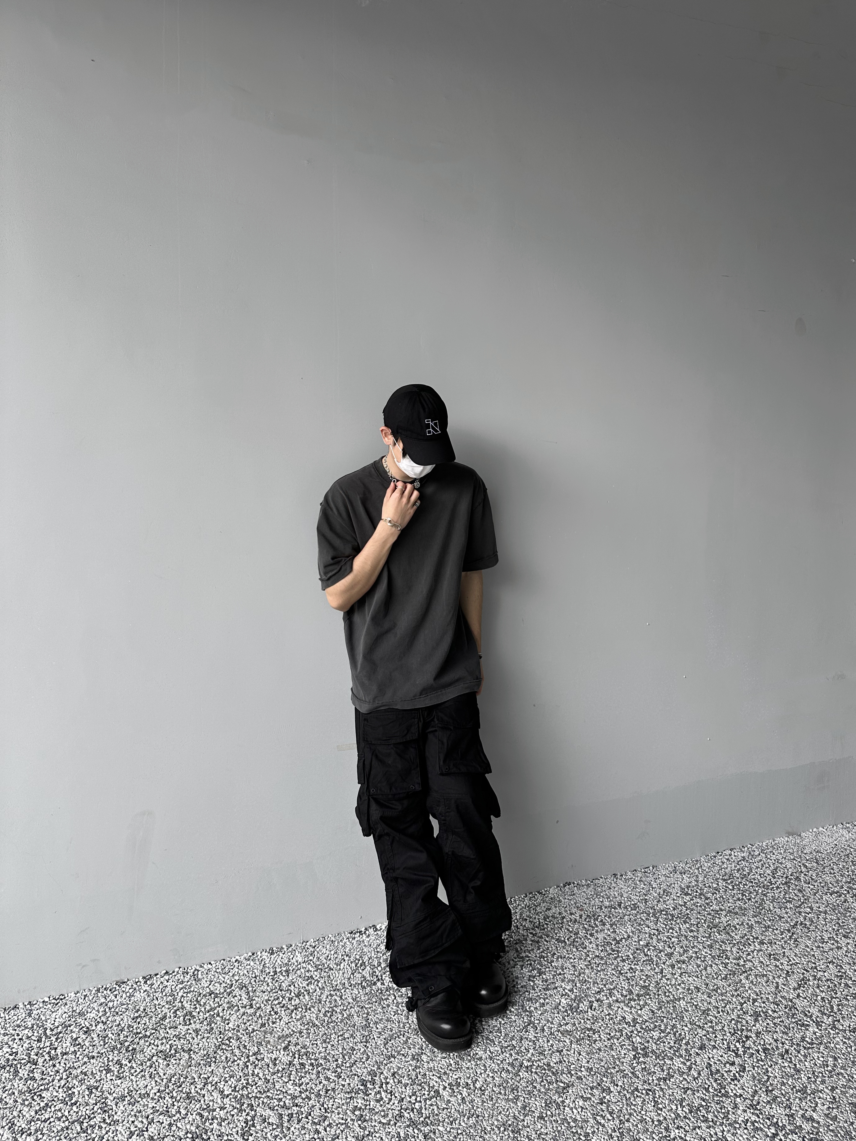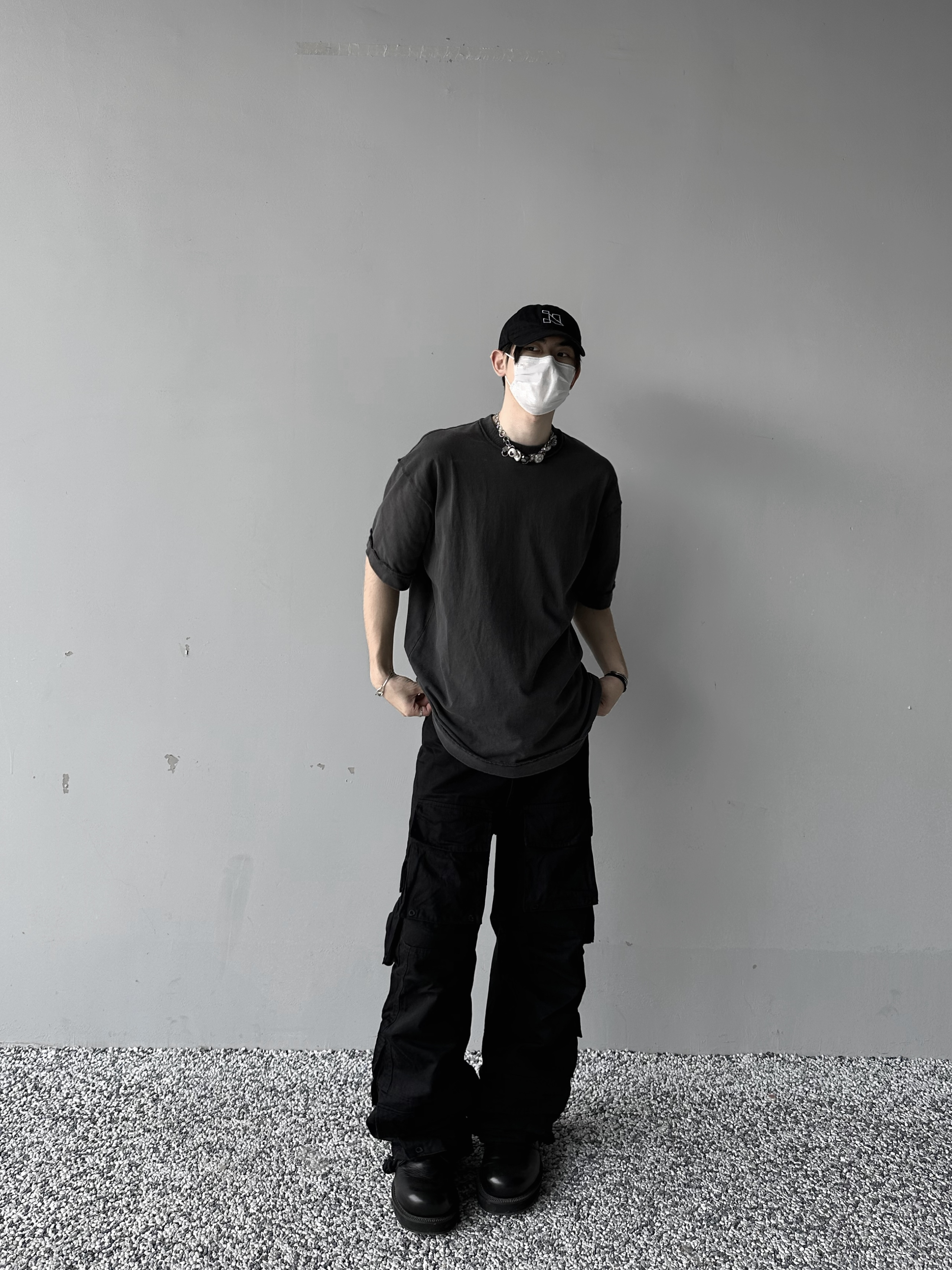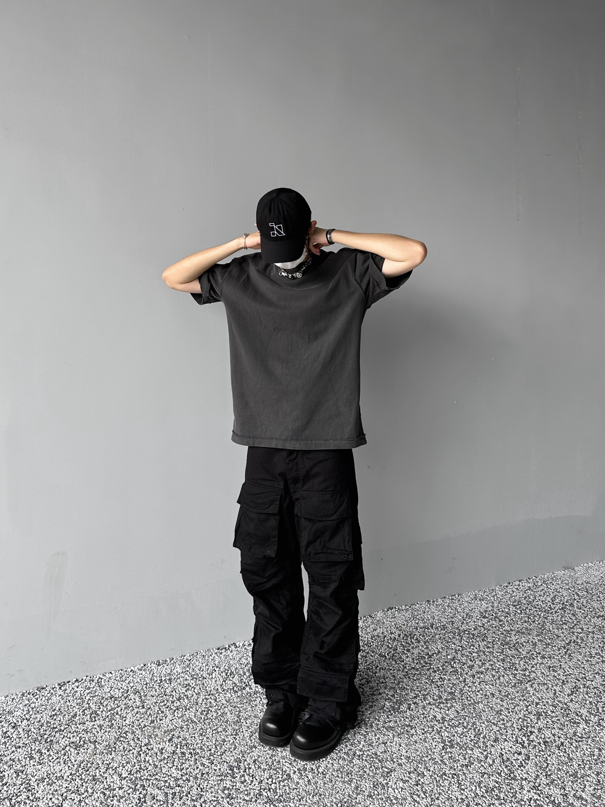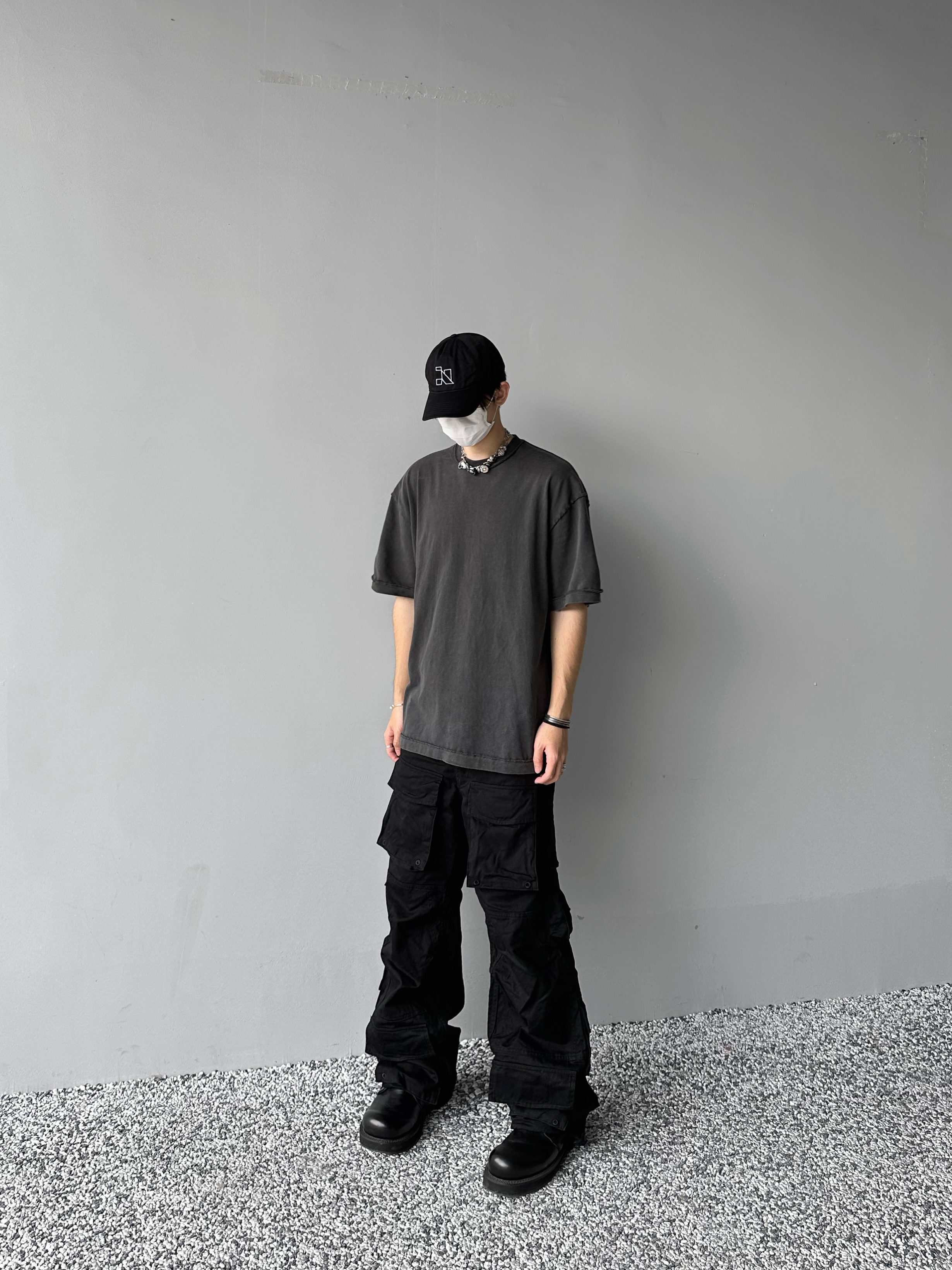 「Rabbit.b」反縫線加固螺紋領口廓形寬鬆短袖 水洗做舊中性T恤男