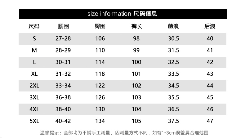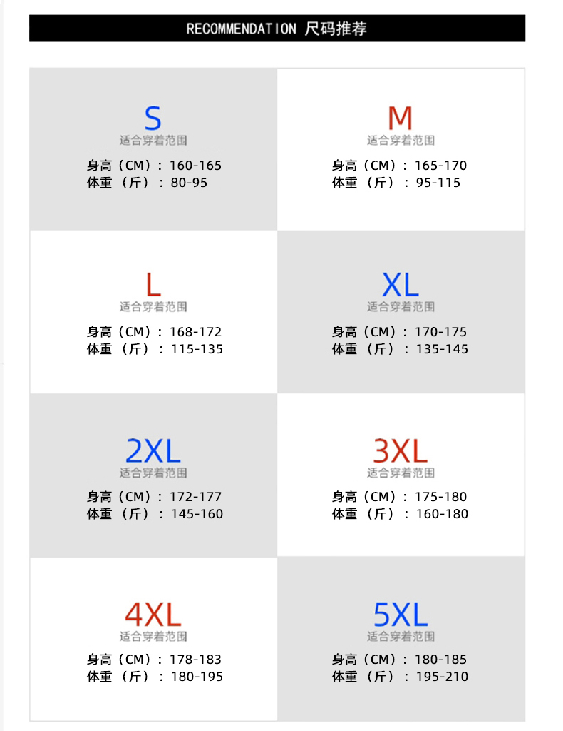 尺寸 S M L XL 2XL 3XL 4XL 5XL