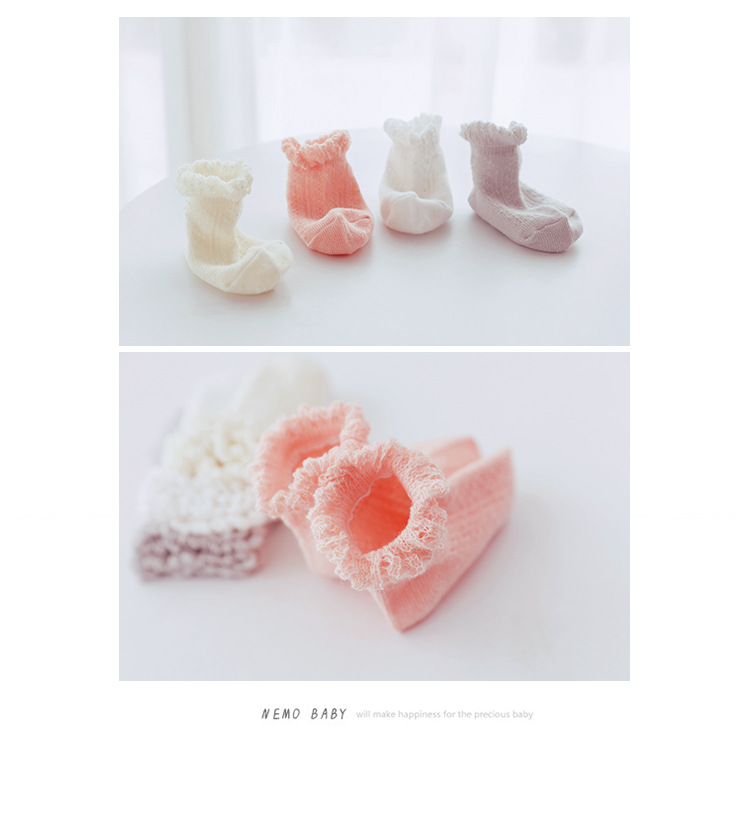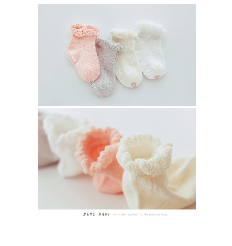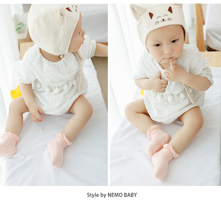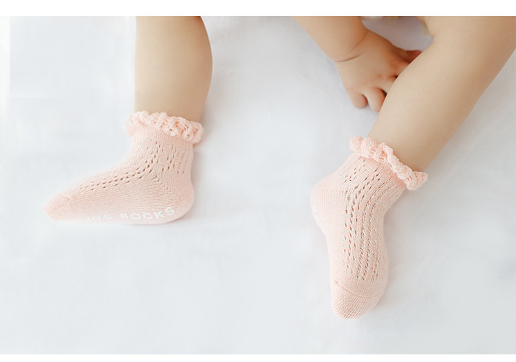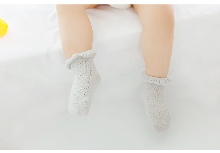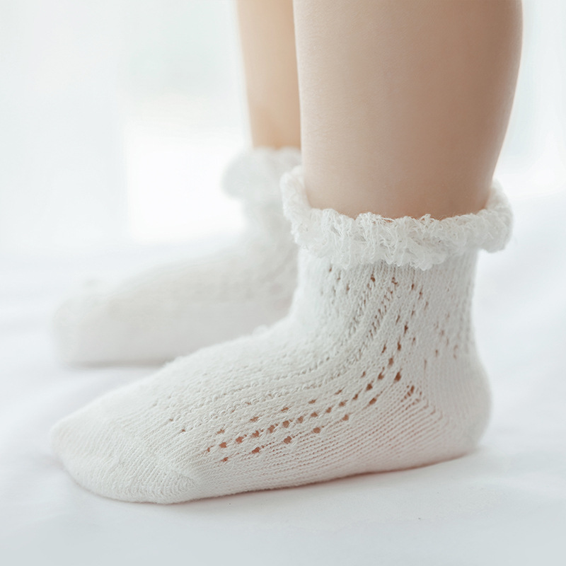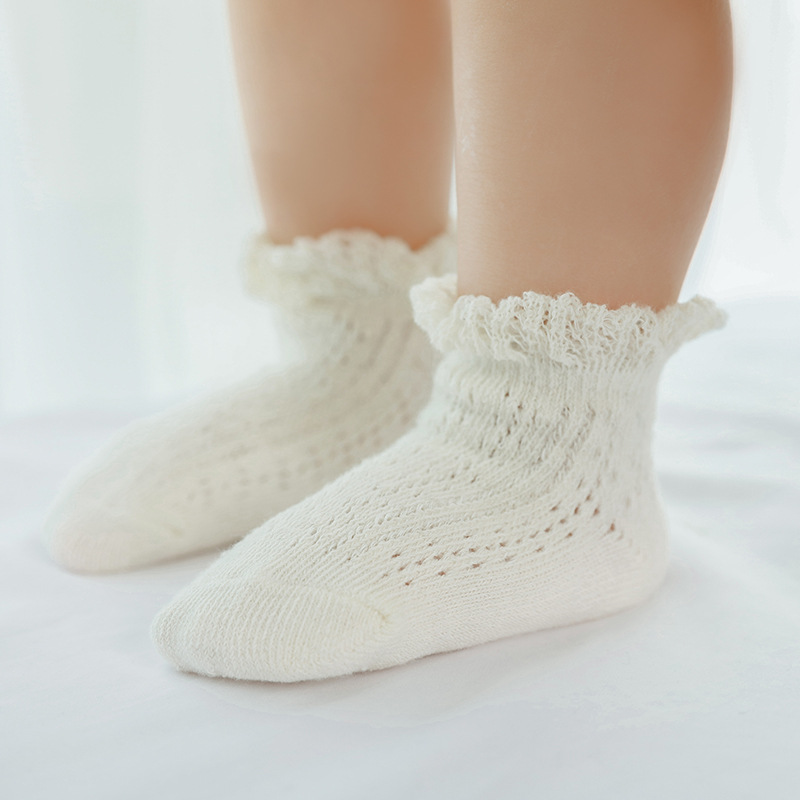 宝宝袜子夏季网眼透气薄款婴儿短袜精梳棉儿童移圈袜中筒袜花边袜