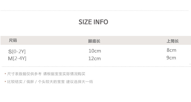 童袜尺码 S 0-2岁,M 2-4岁