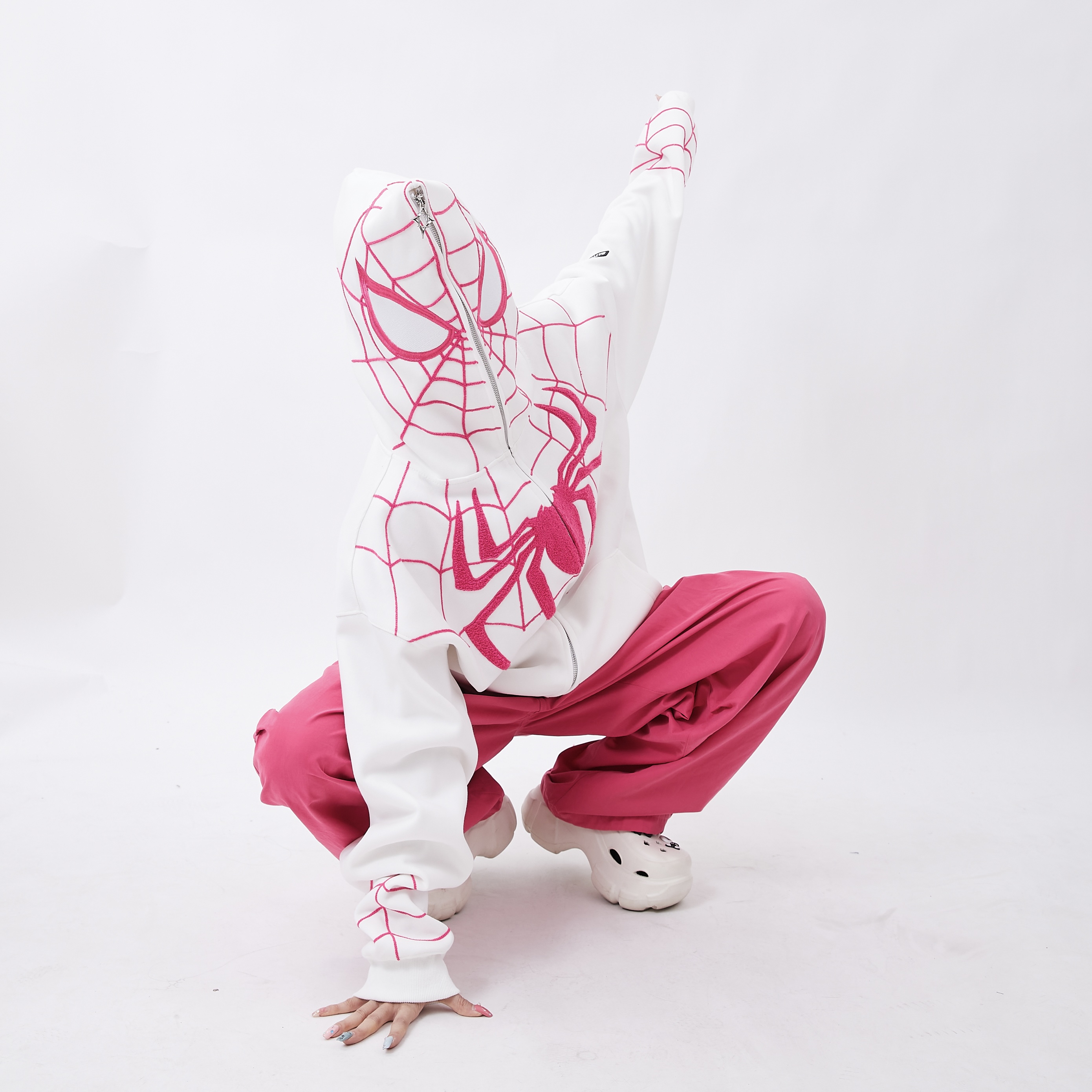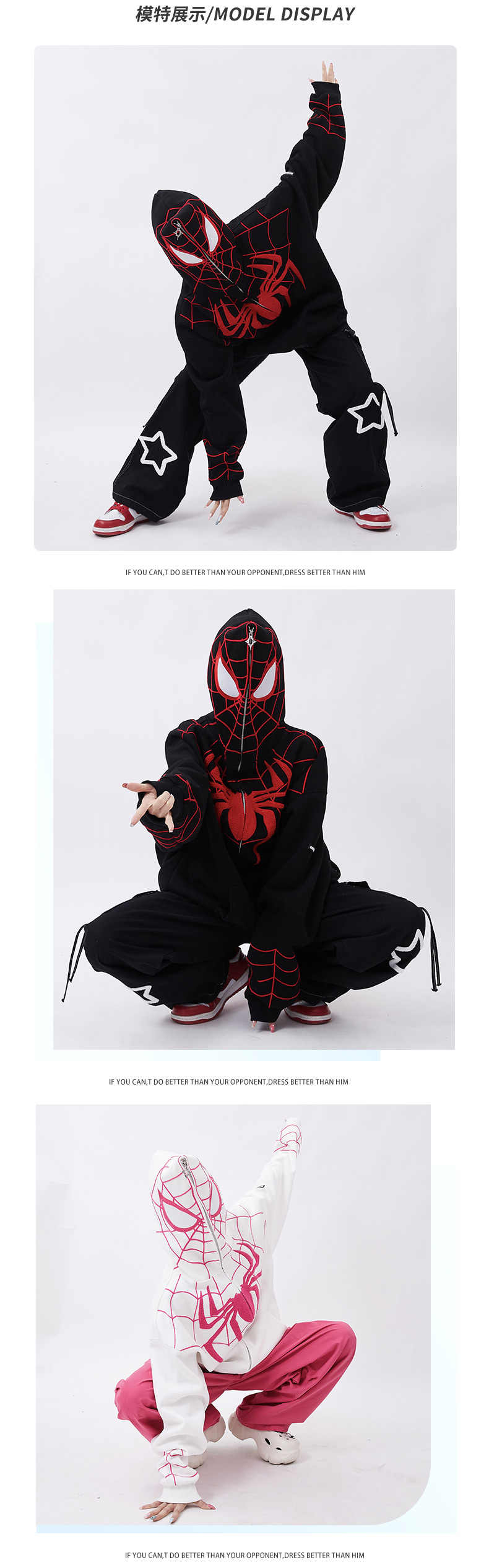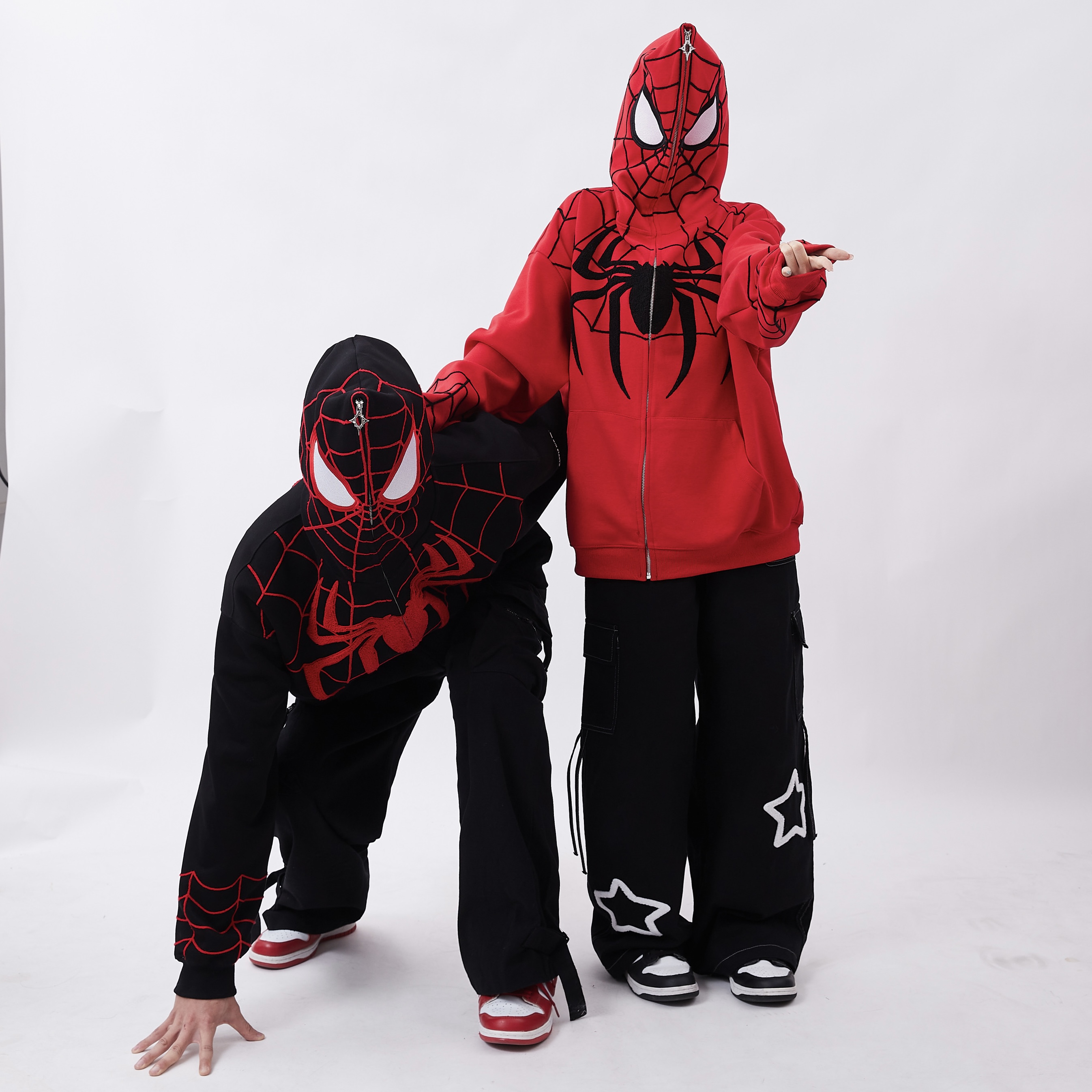 Rayohopp蜘蛛人衛衣女連帽美式街頭印花刺繡拉鍊開衫oversize外套