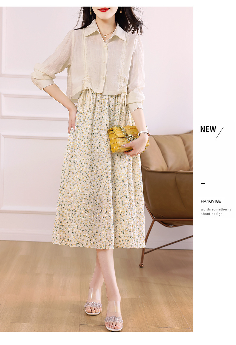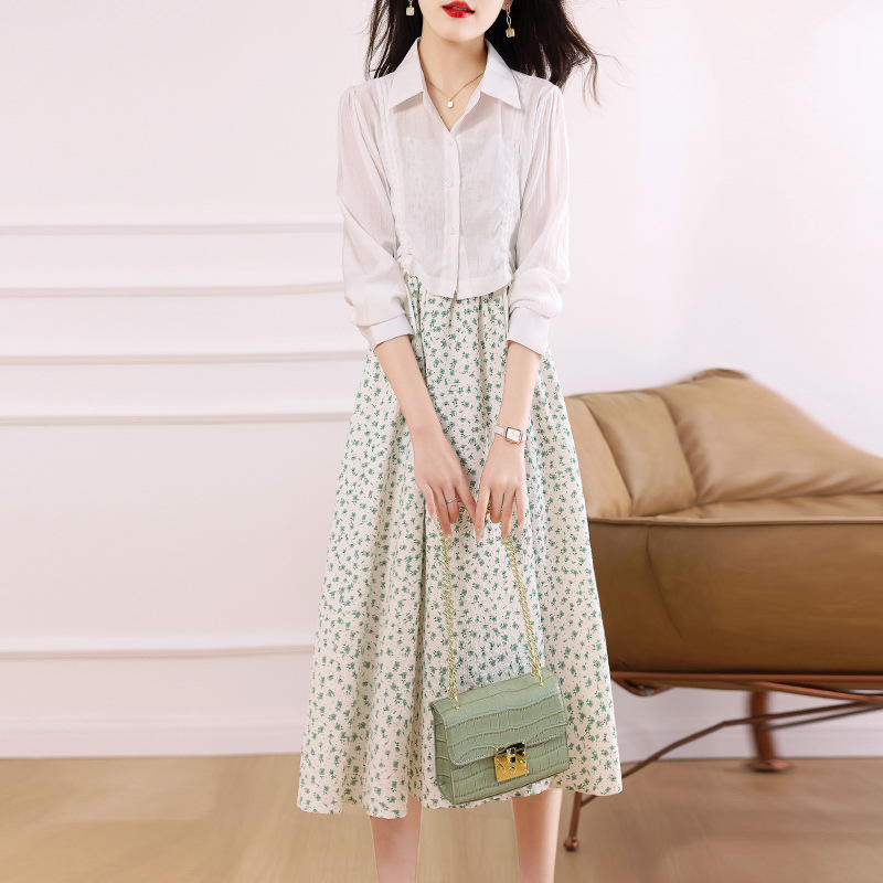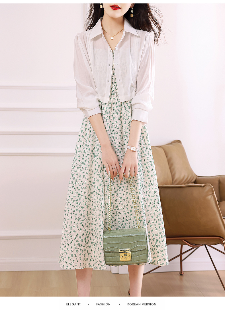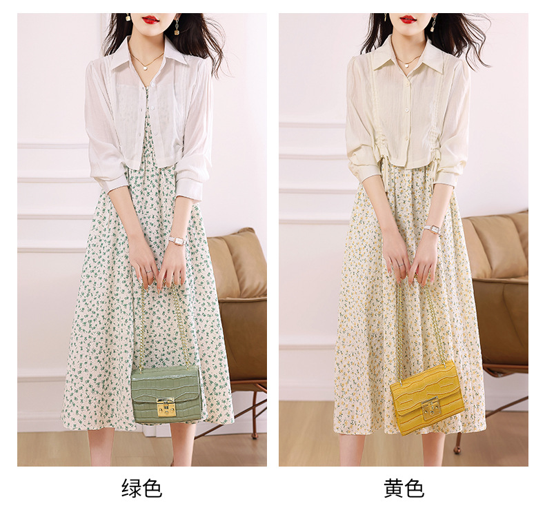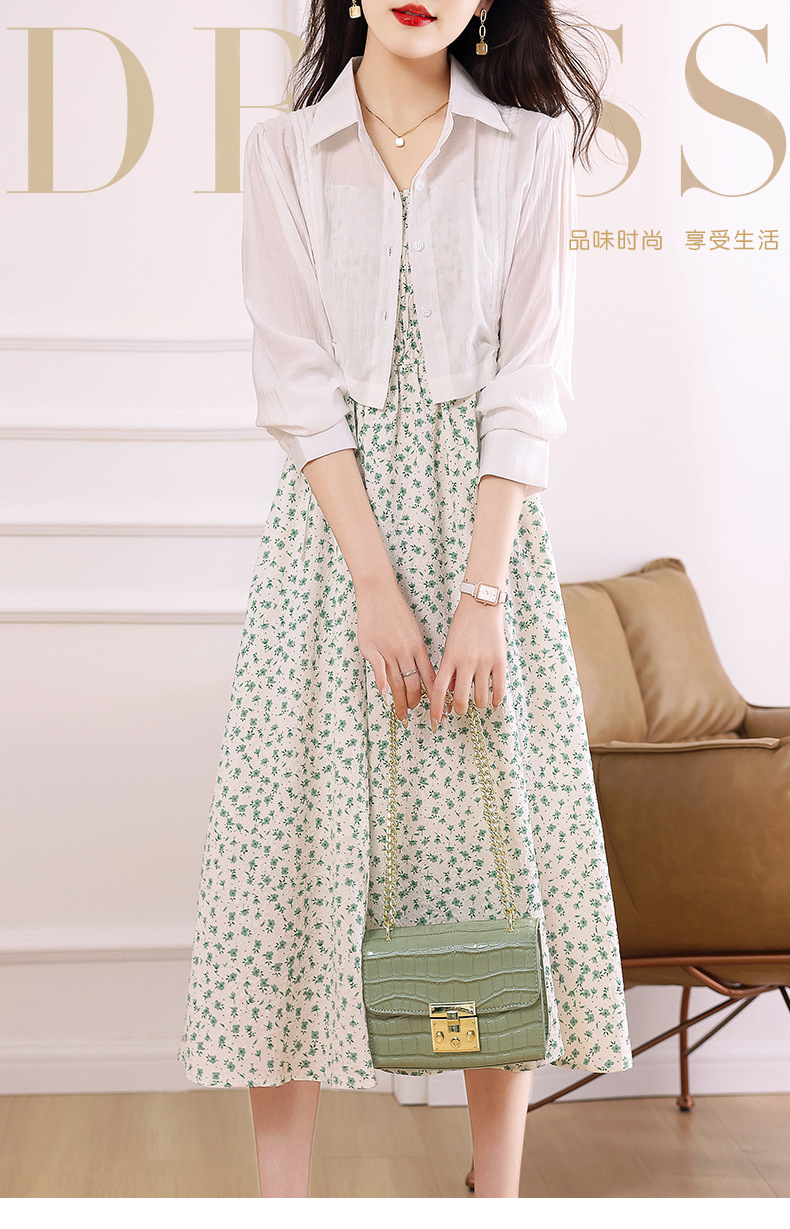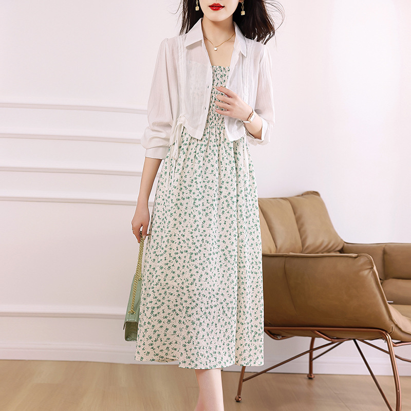 衬衫吊带碎花连衣裙两件套女2023春夏季新款气质显瘦减龄套装裙子