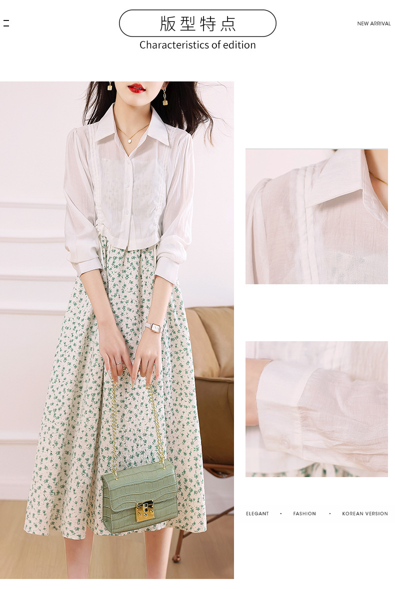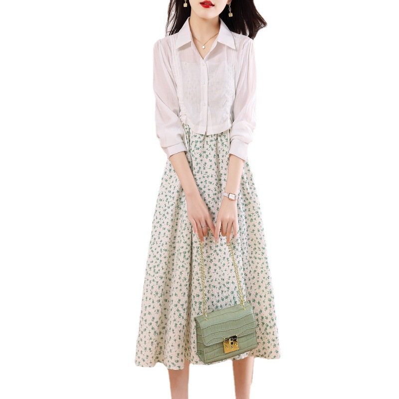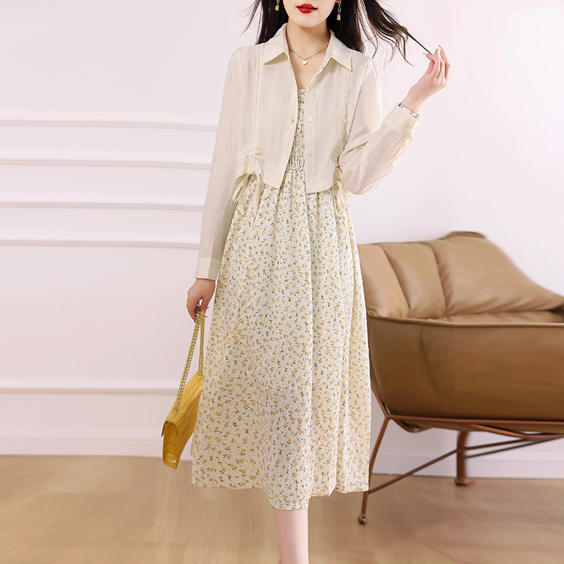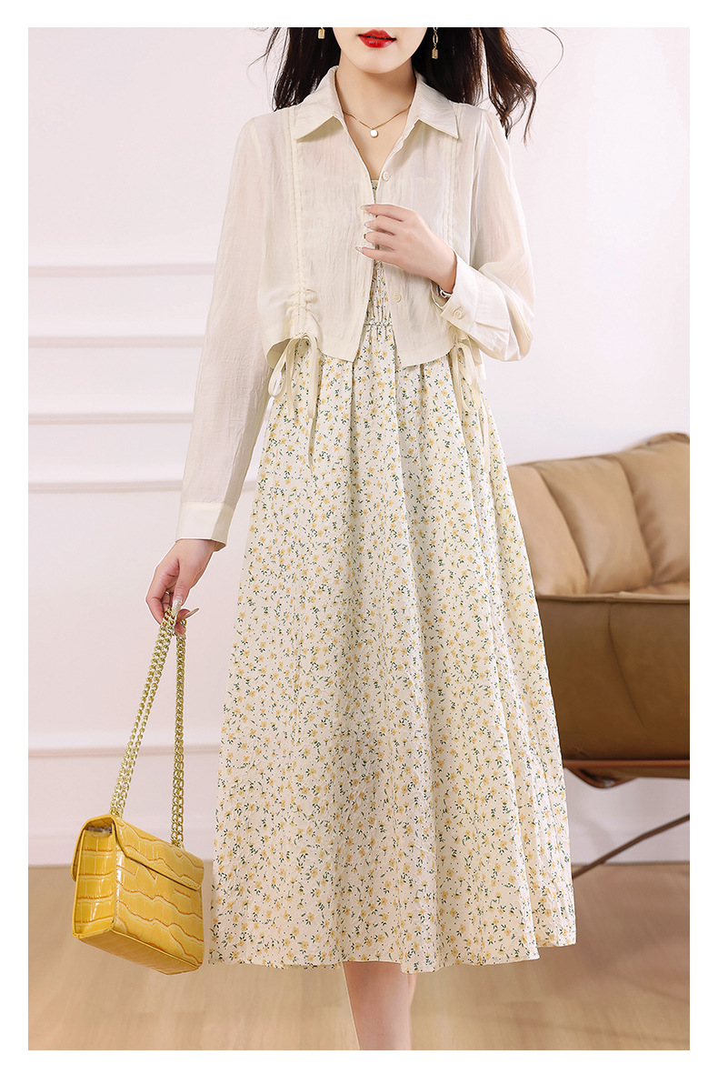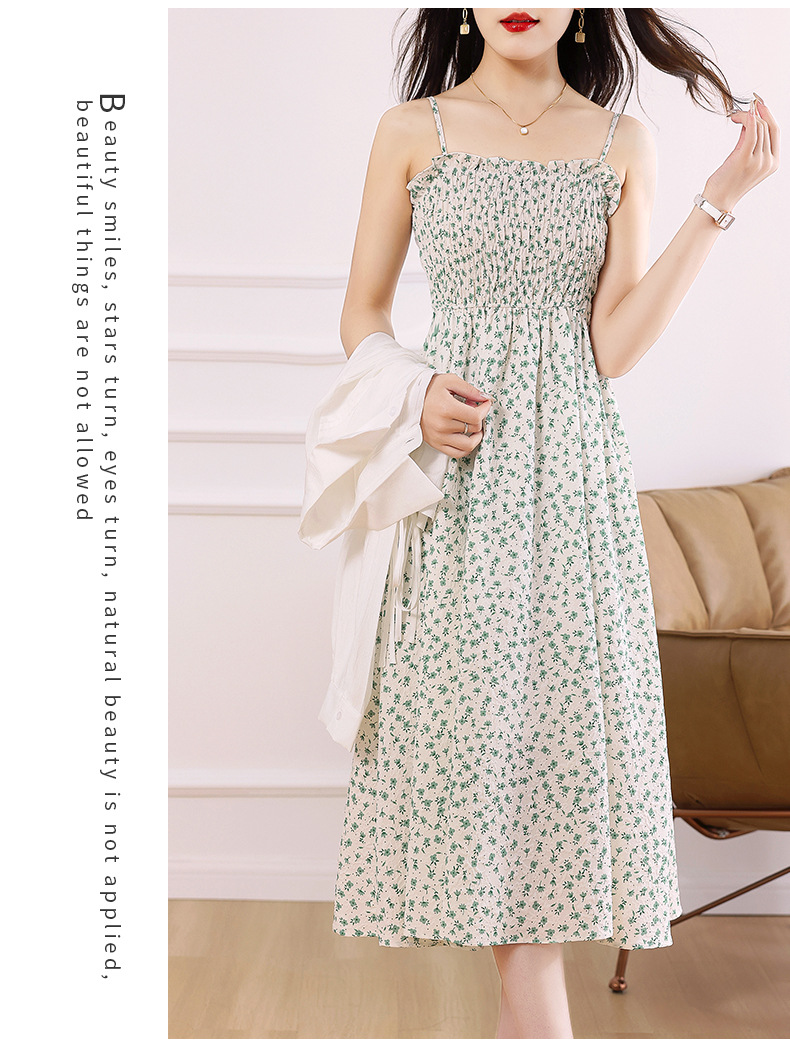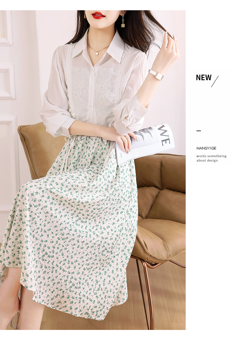 衬衫吊带碎花连衣裙两件套女2023春夏季新款气质显瘦减龄套装裙子