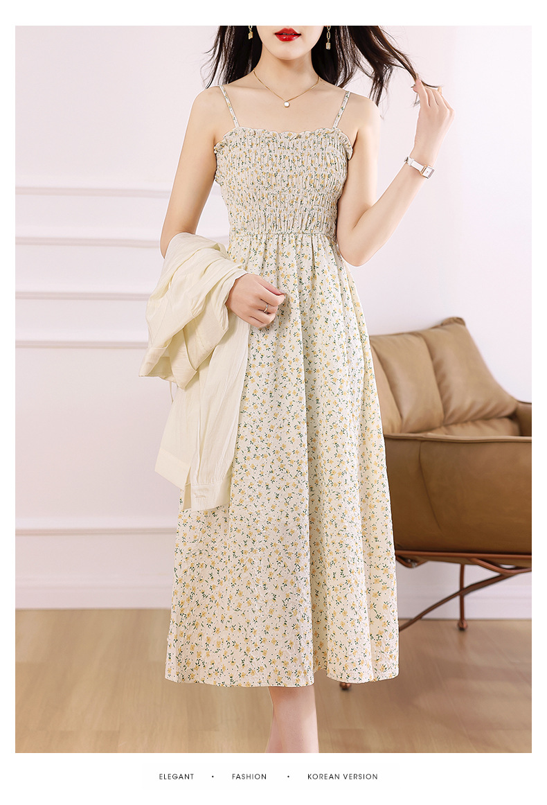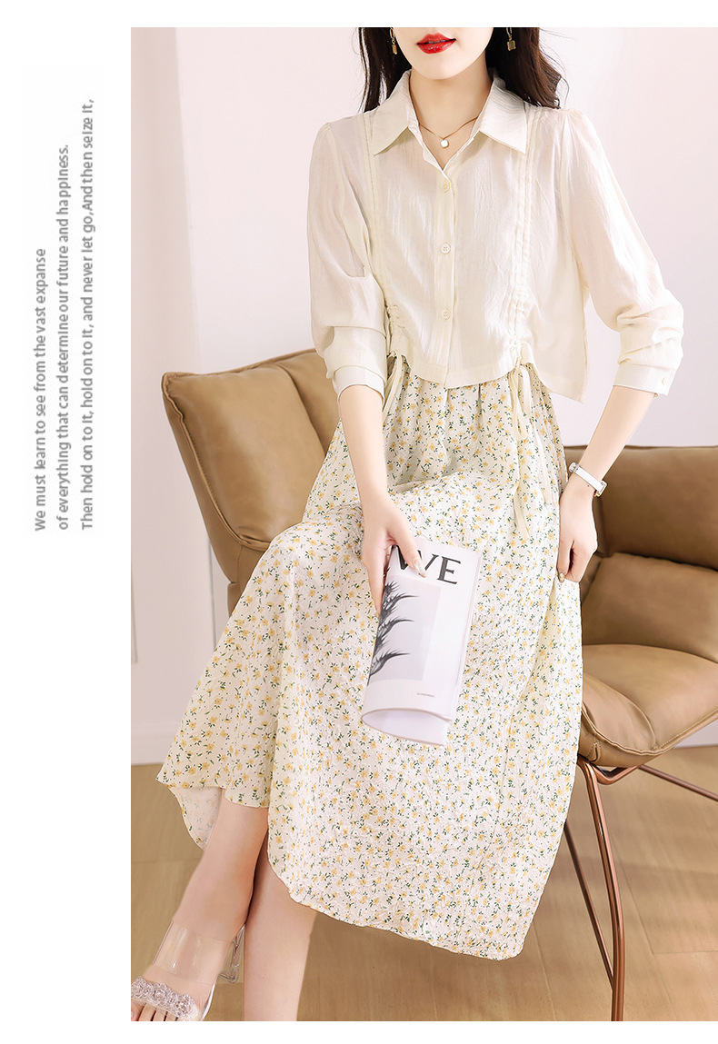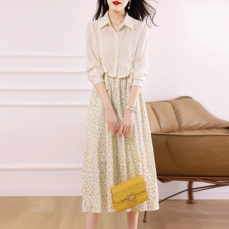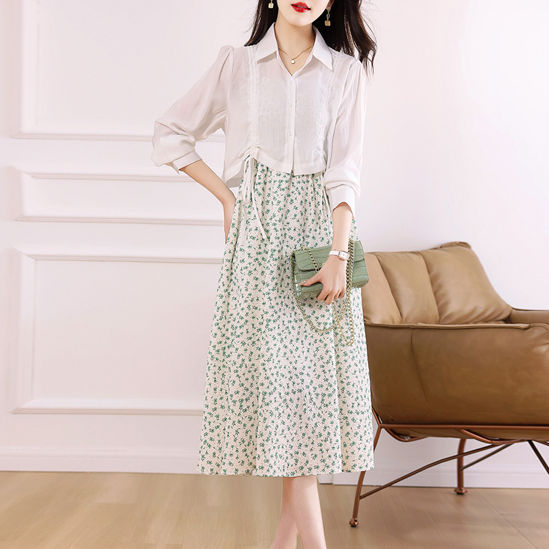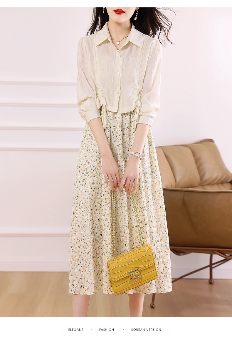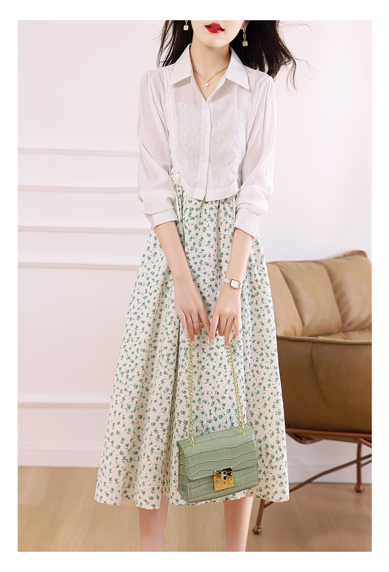 衬衫吊带碎花连衣裙两件套女2023春夏季新款气质显瘦减龄套装裙子