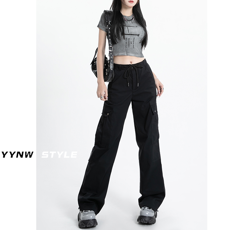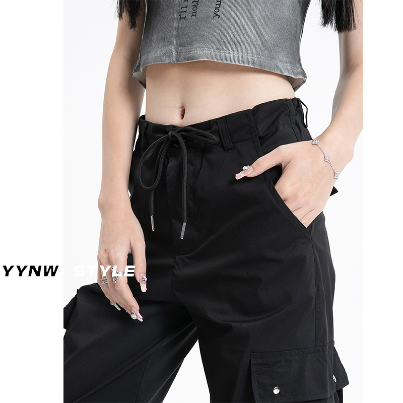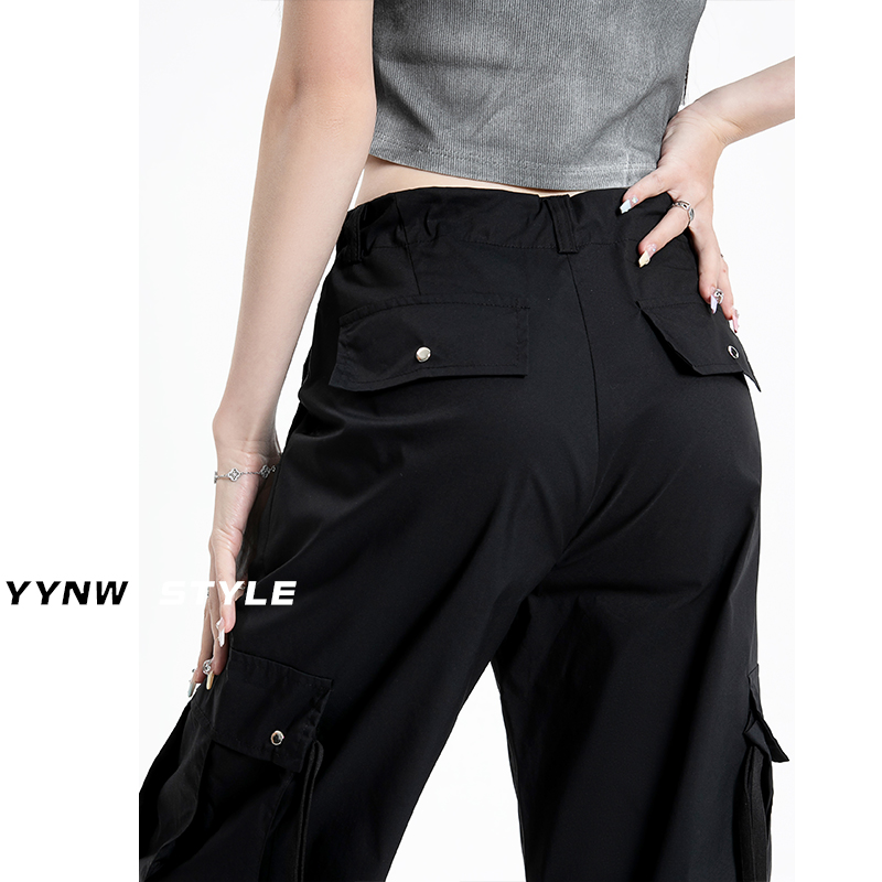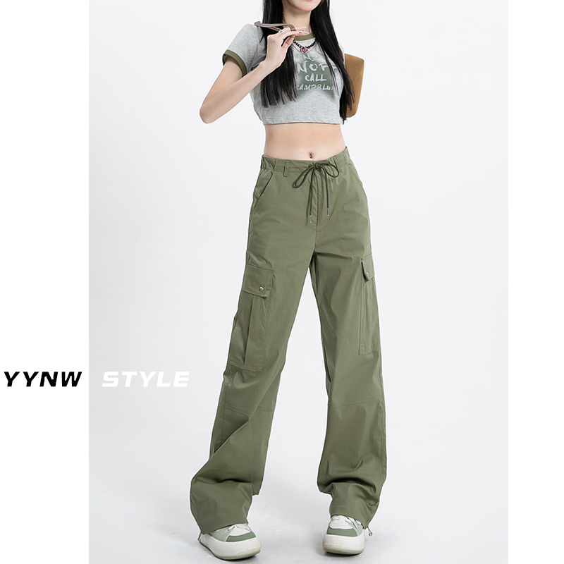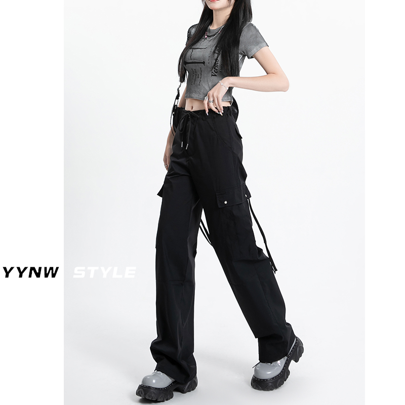 冰絲速乾工裝褲女夏季薄款高腰顯瘦垂感闊腿休閒美式運動傘兵褲子