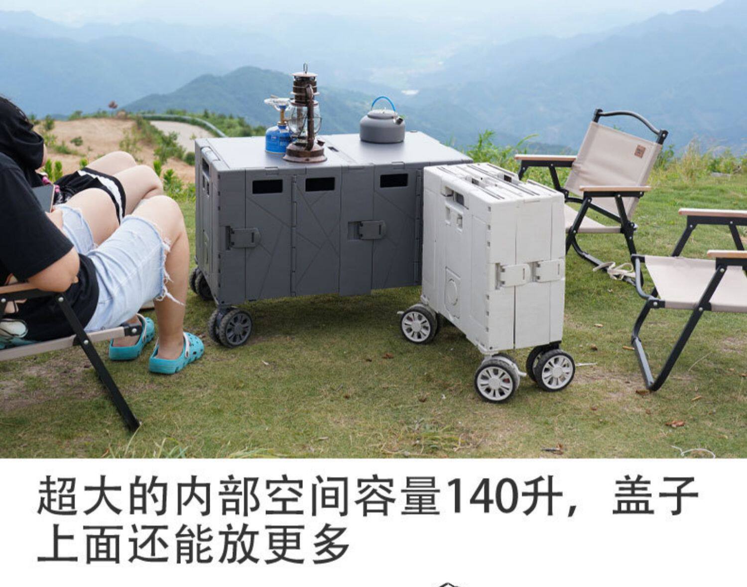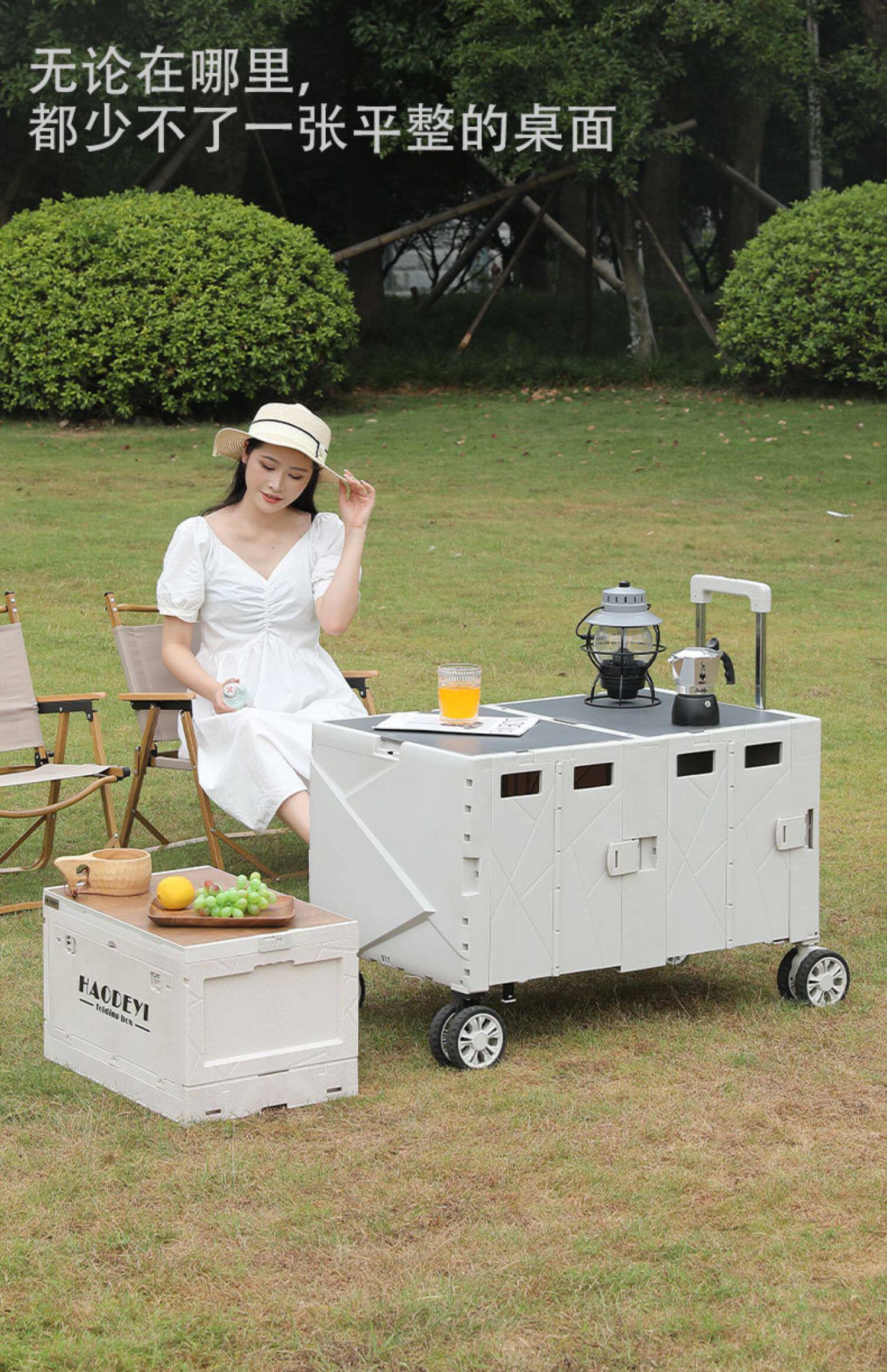多功能工業風戶外收納箱桌子兩用露營後備箱摺疊箱擺攤推車收納箱