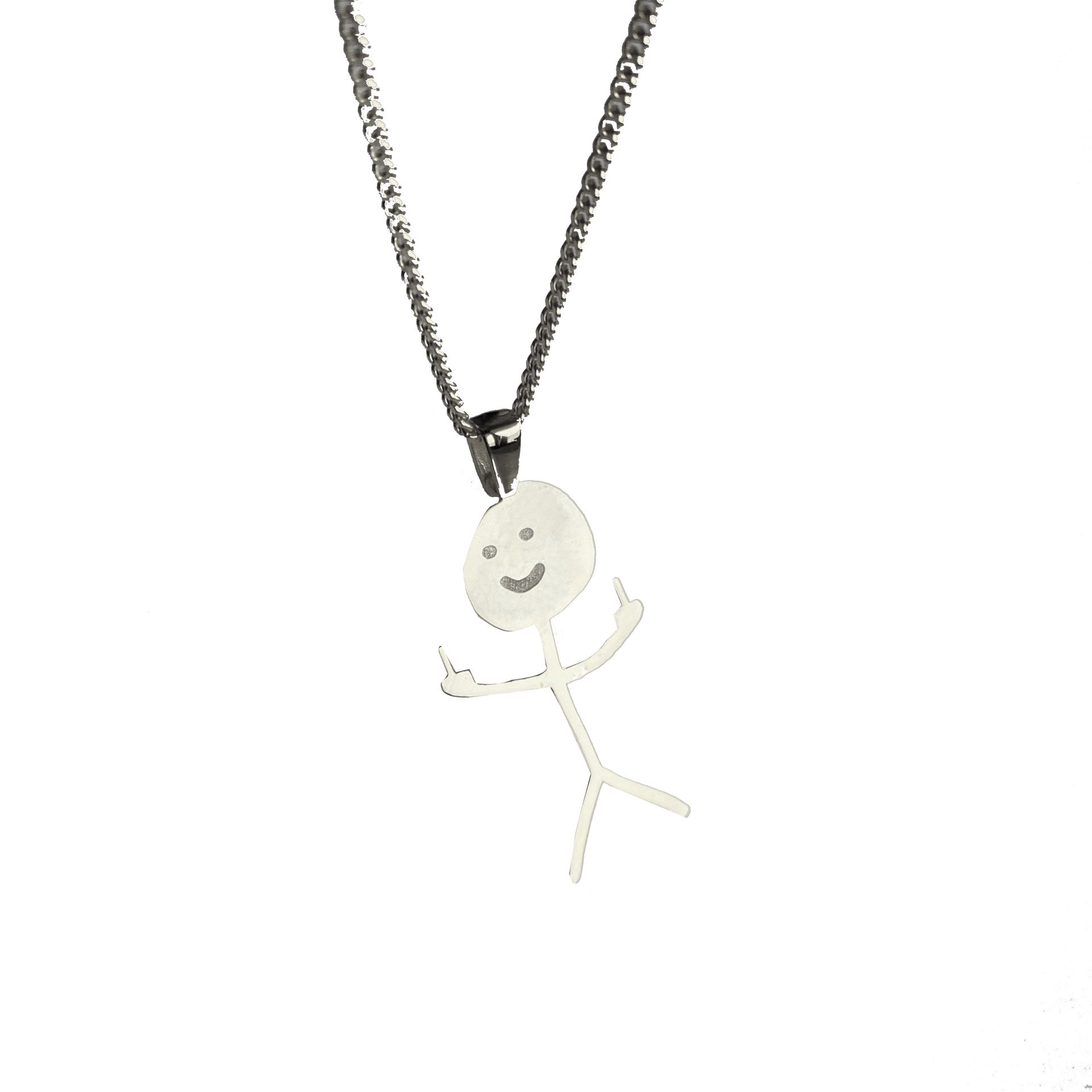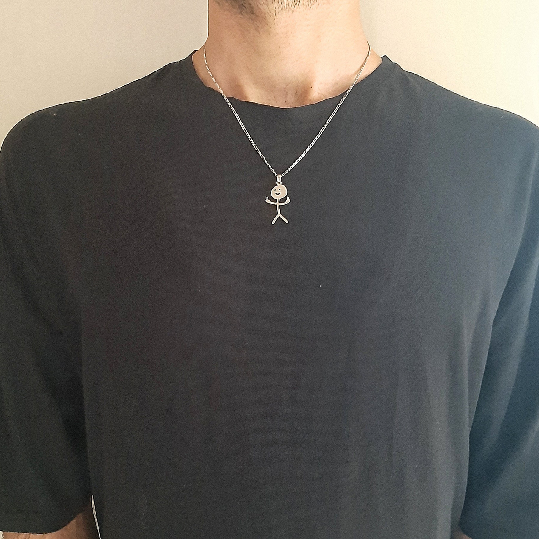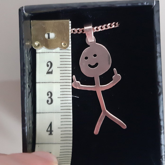 亚马逊男士项链925标识不锈钢Fuck You 小人吊坠中性涂鸦工厂直销