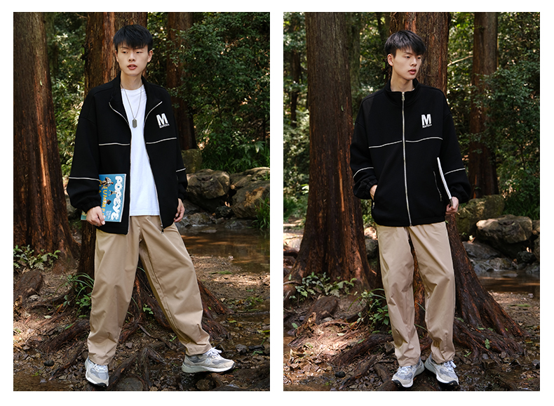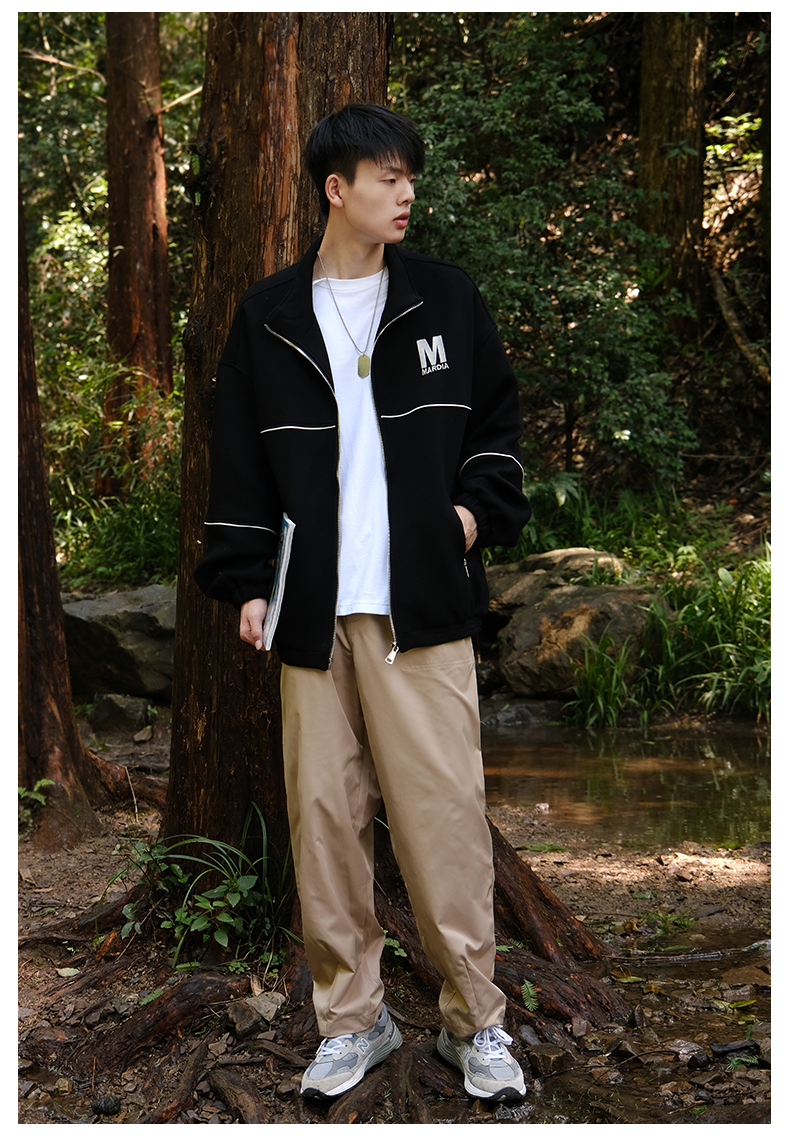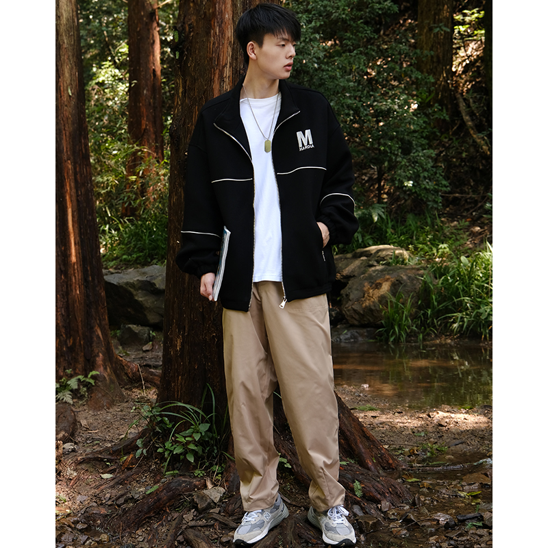 RIMO/ 日系復古卡其色cityboy休閒褲男純色基礎款廓形直筒工裝褲
