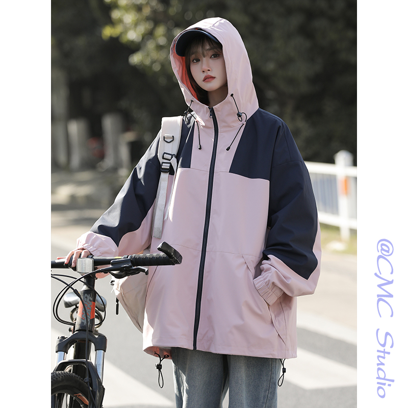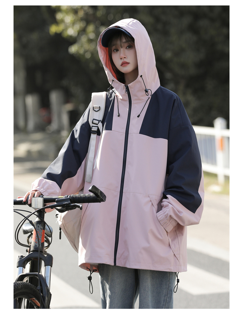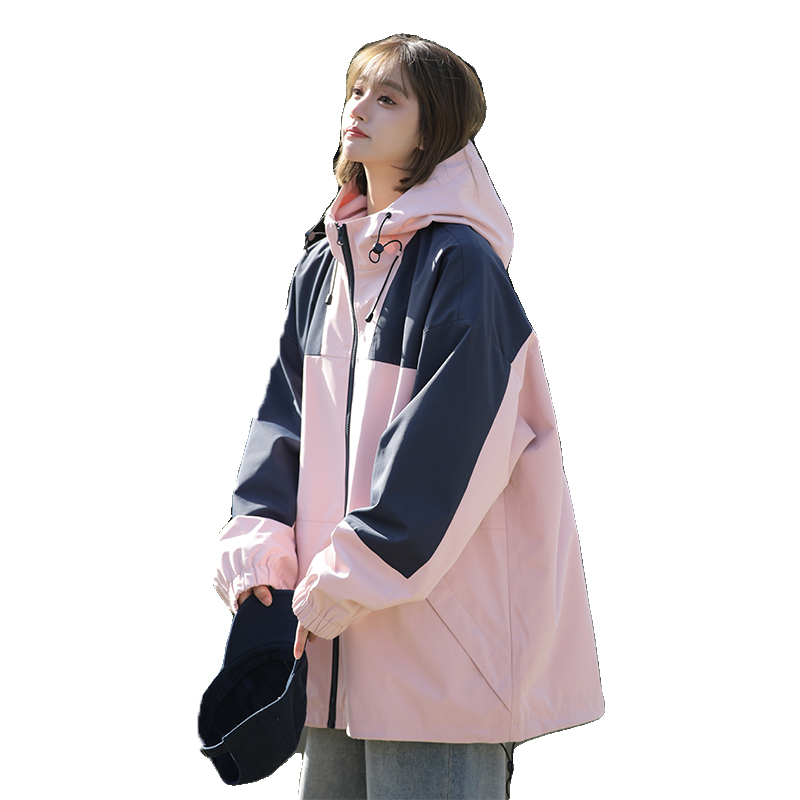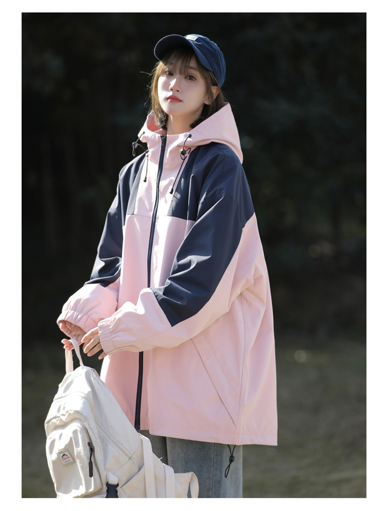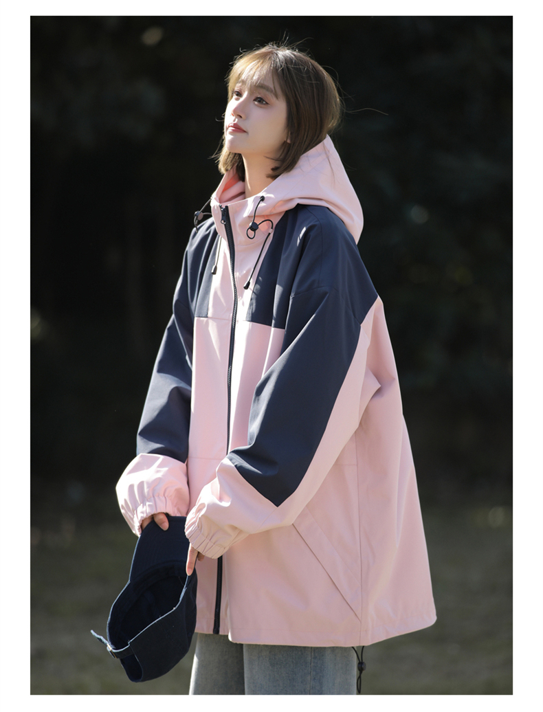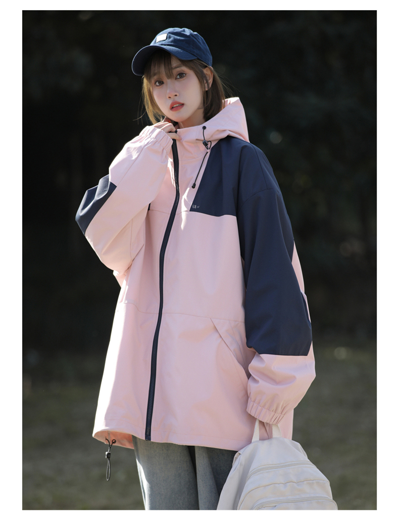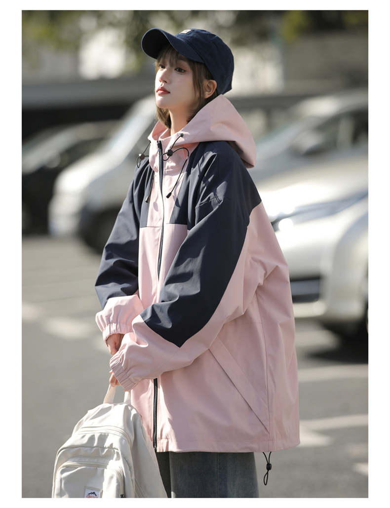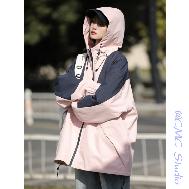 粉色拼接撞色衝鋒衣女戶外防風登山服外套秋季獨特超好看小眾夾克