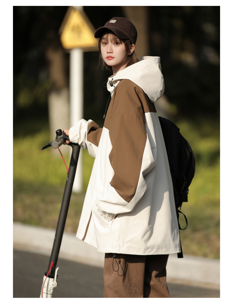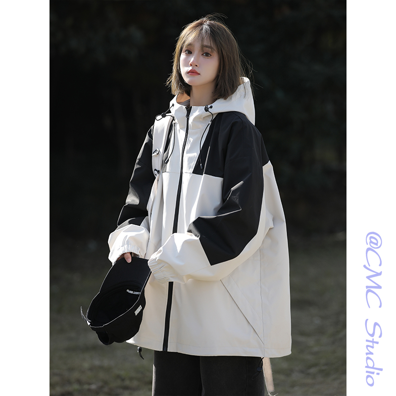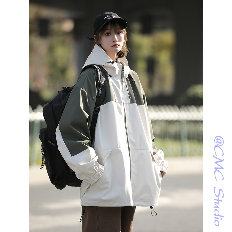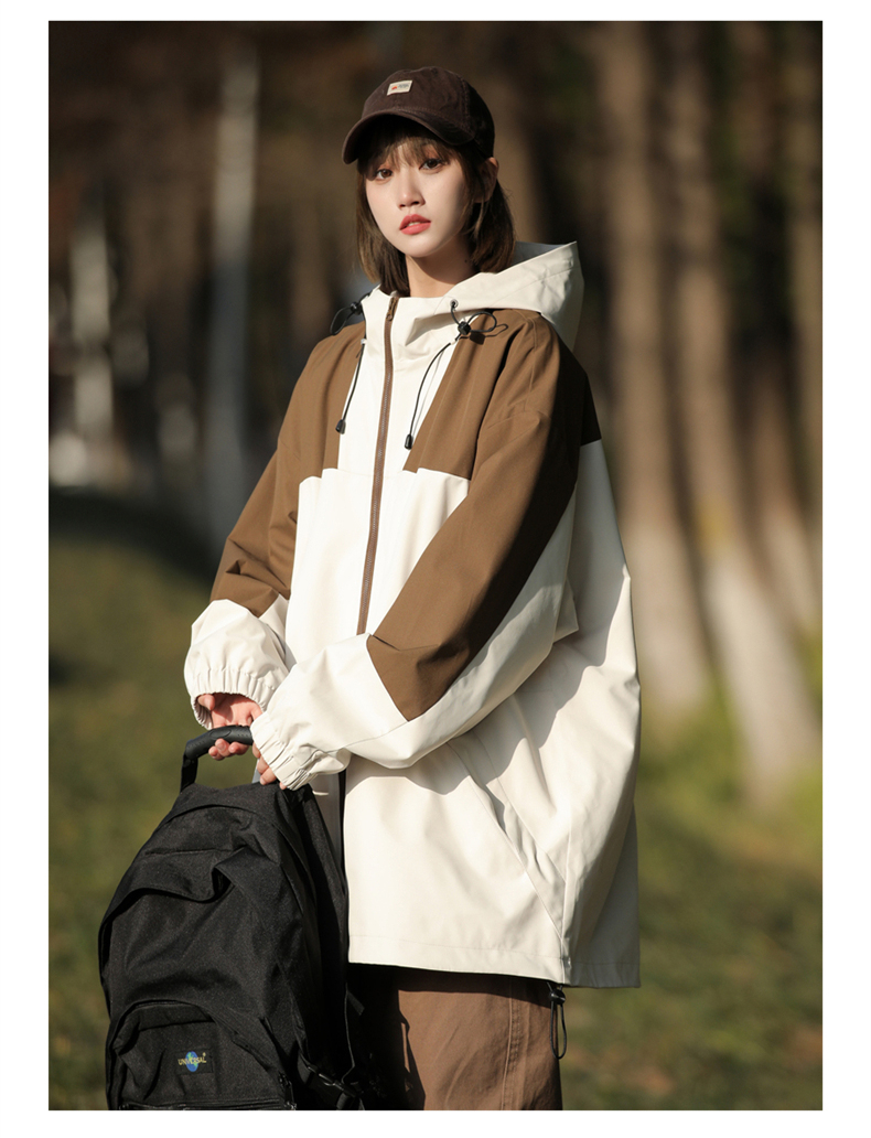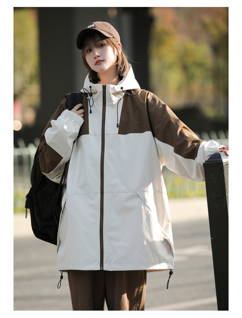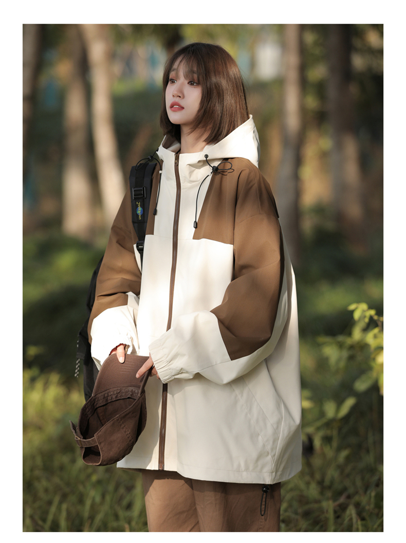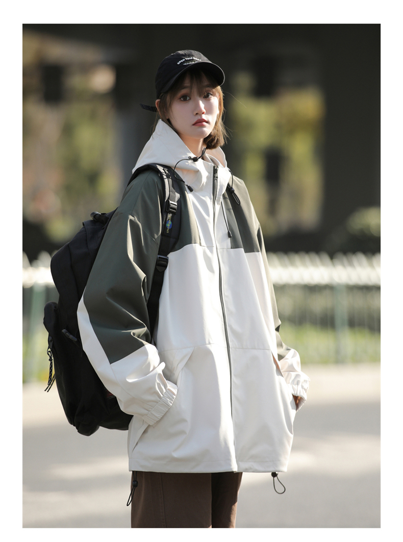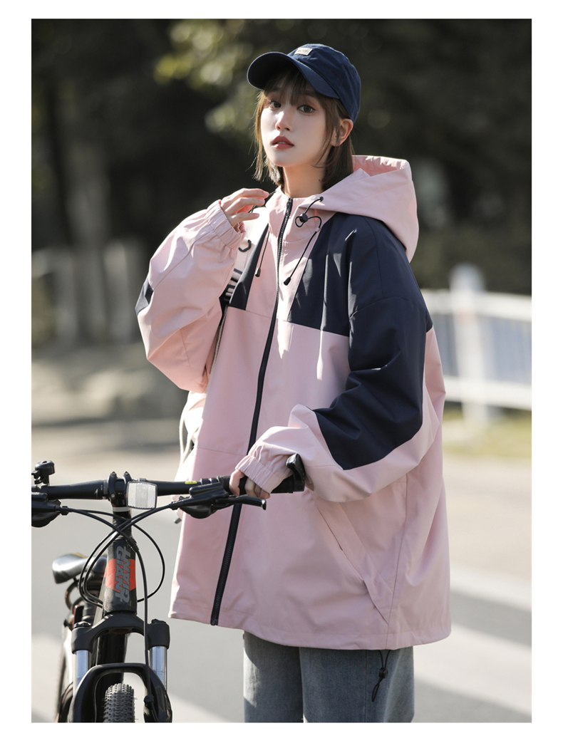 粉色拼接撞色衝鋒衣女戶外防風登山服外套秋季獨特超好看小眾夾克