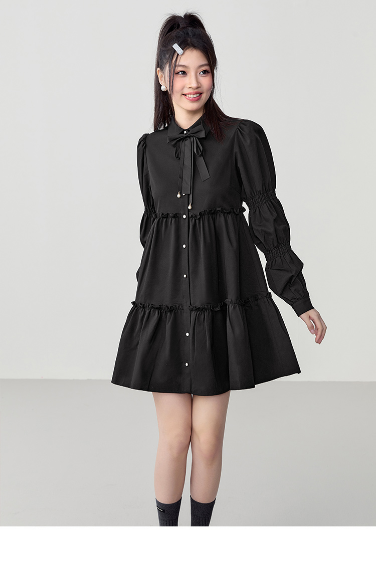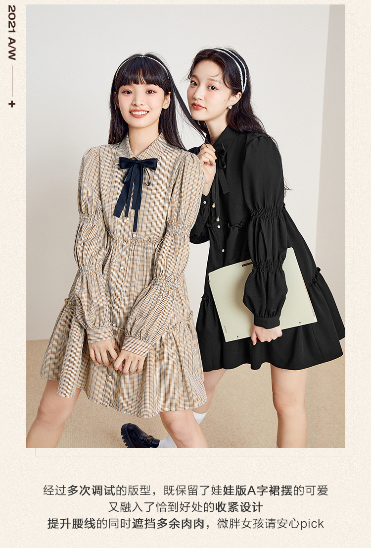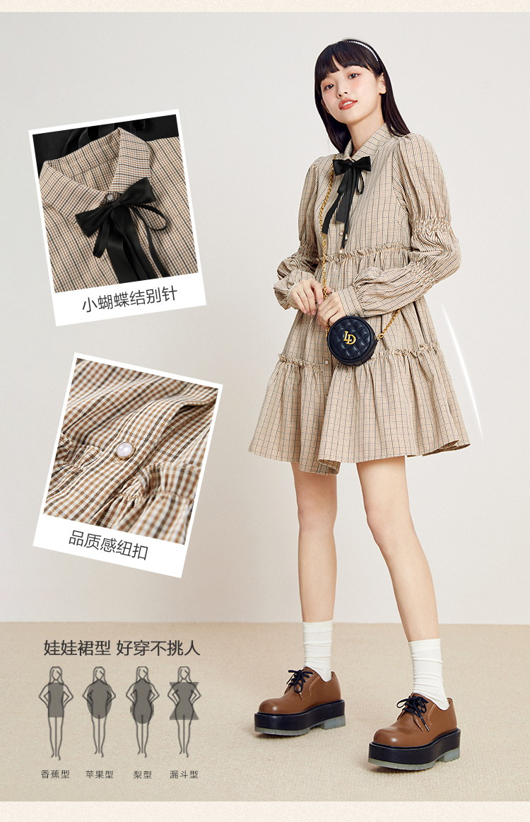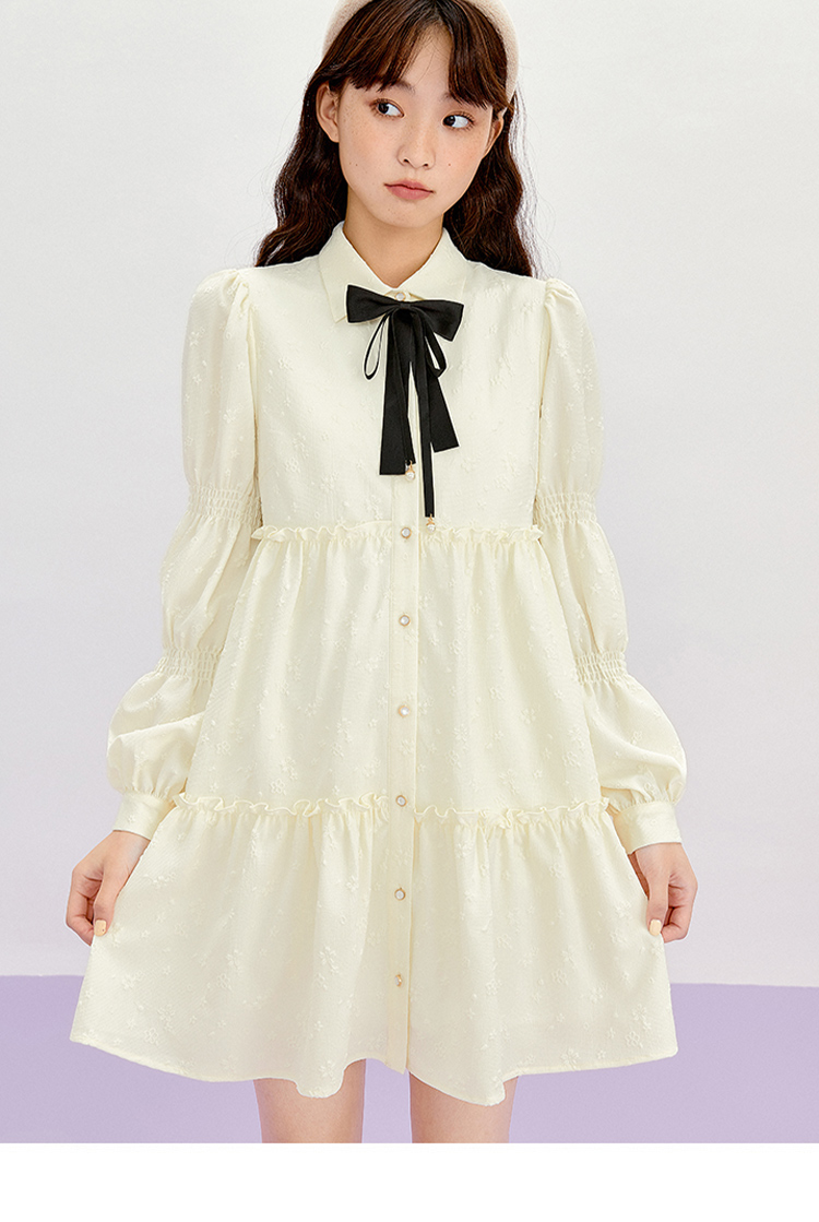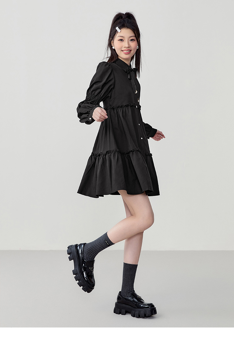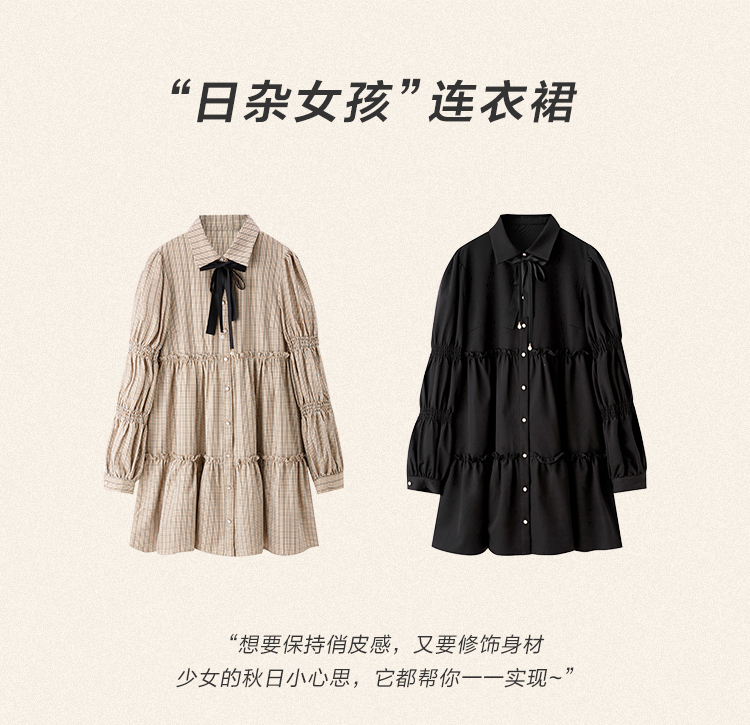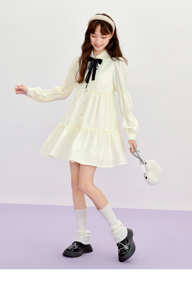 樂町藕節袖洋裝2023春季甜美設計感娃娃裙森女襯衫式洋裝日系內搭裙