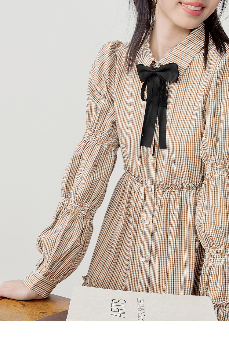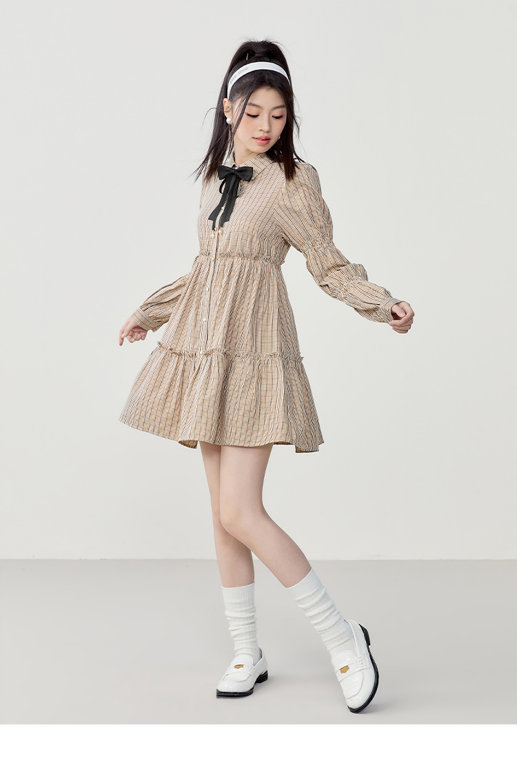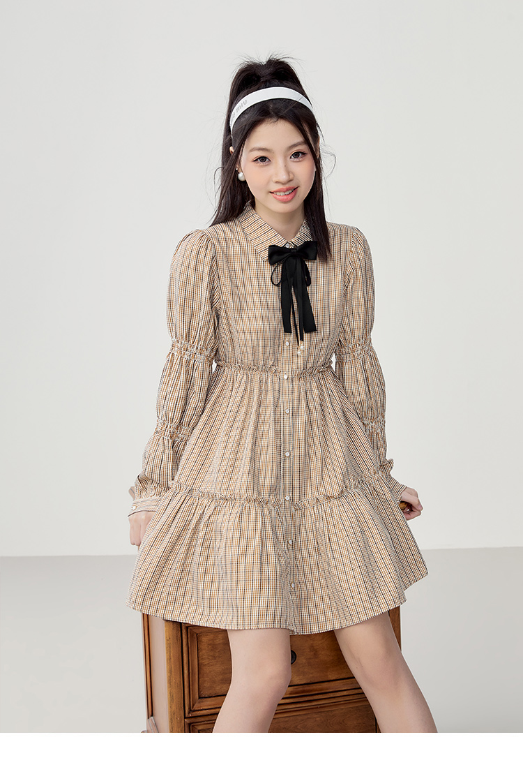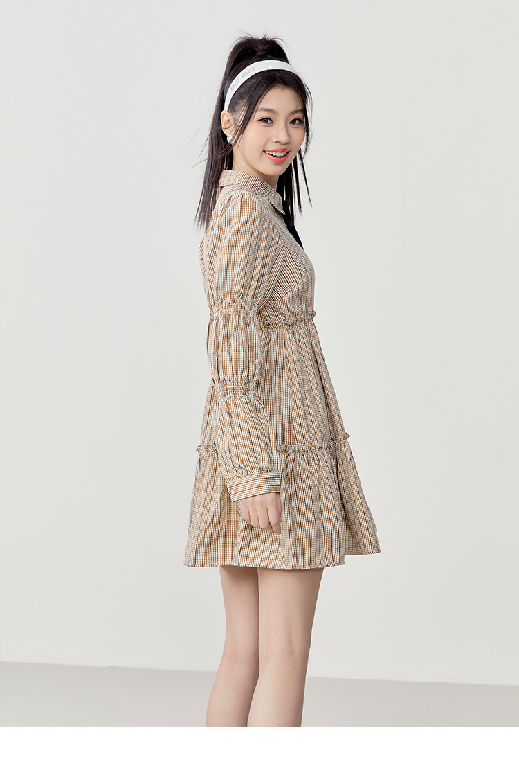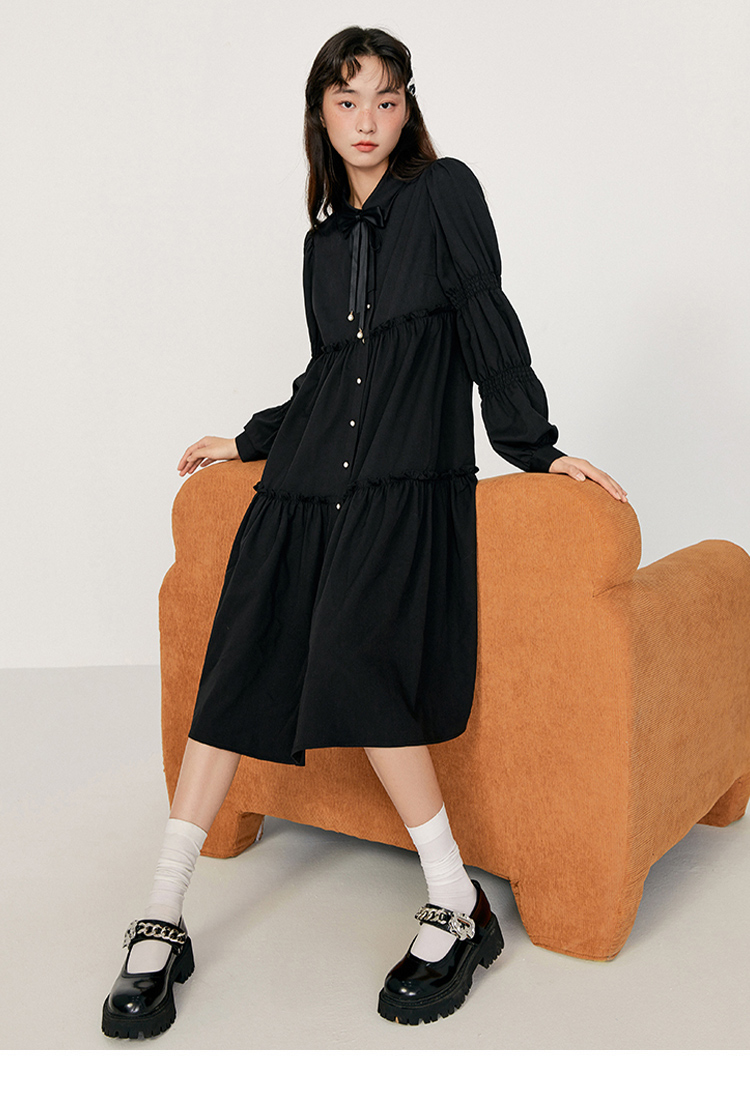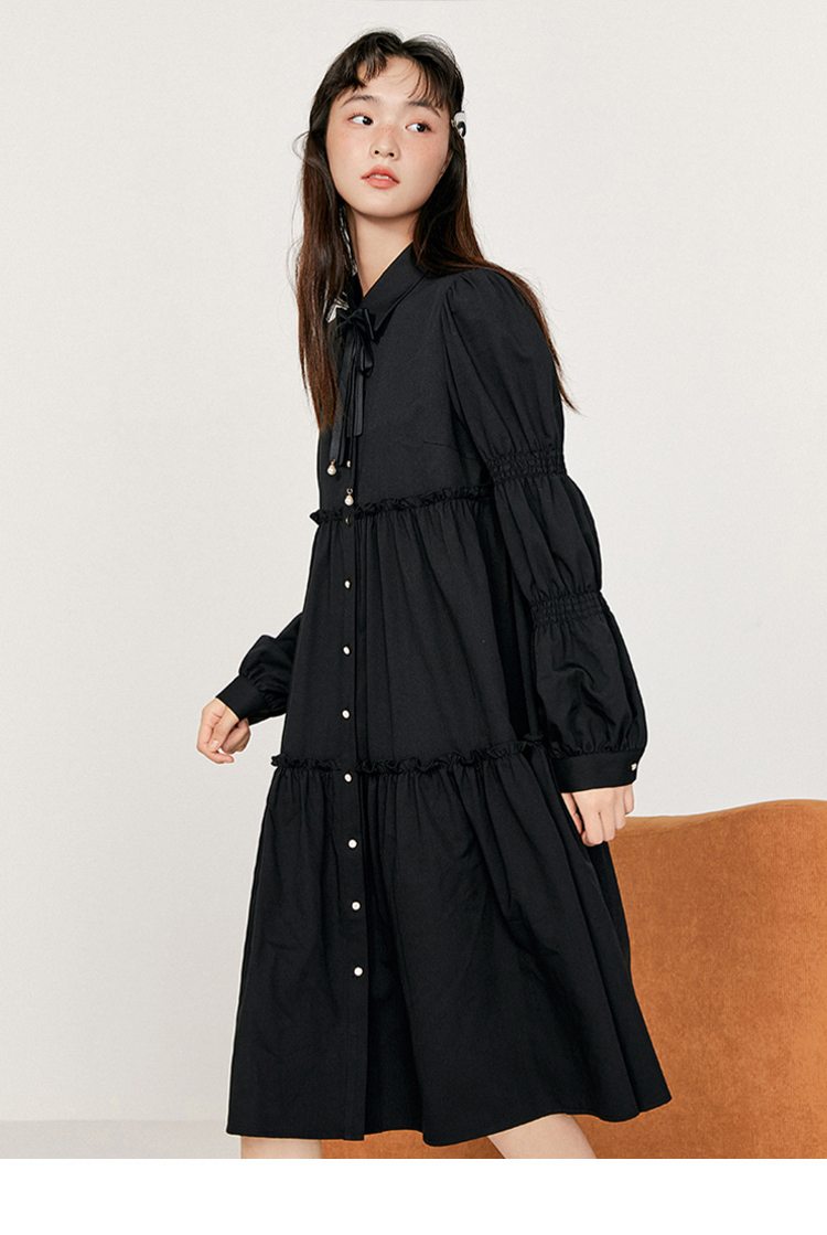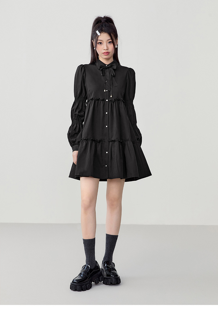 樂町藕節袖洋裝2023春季甜美設計感娃娃裙森女襯衫式洋裝日系內搭裙