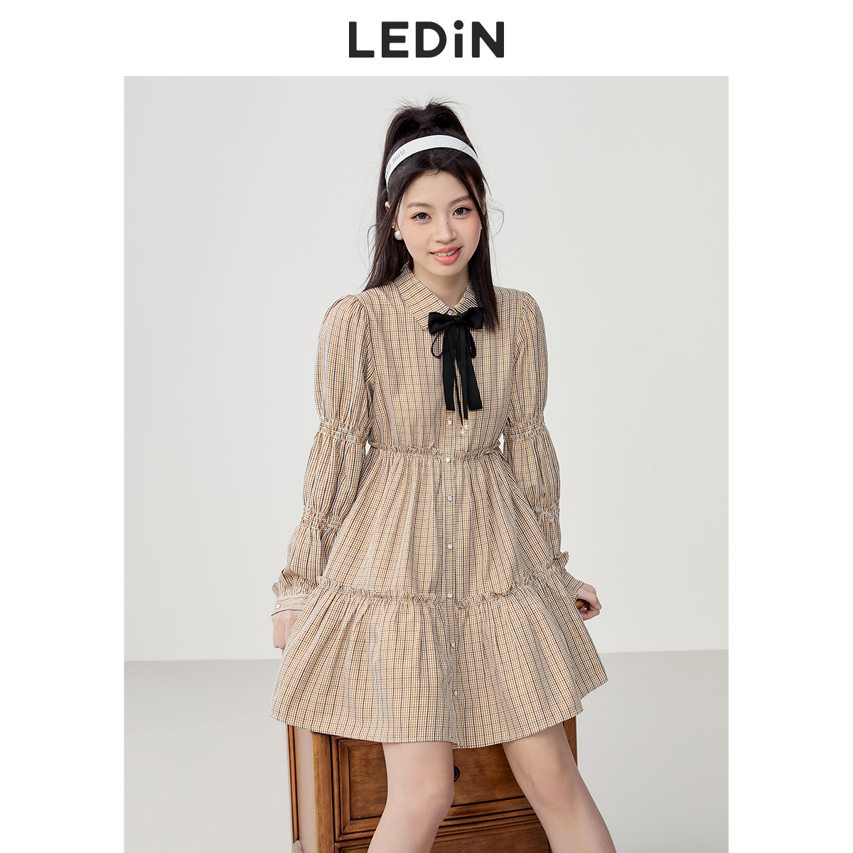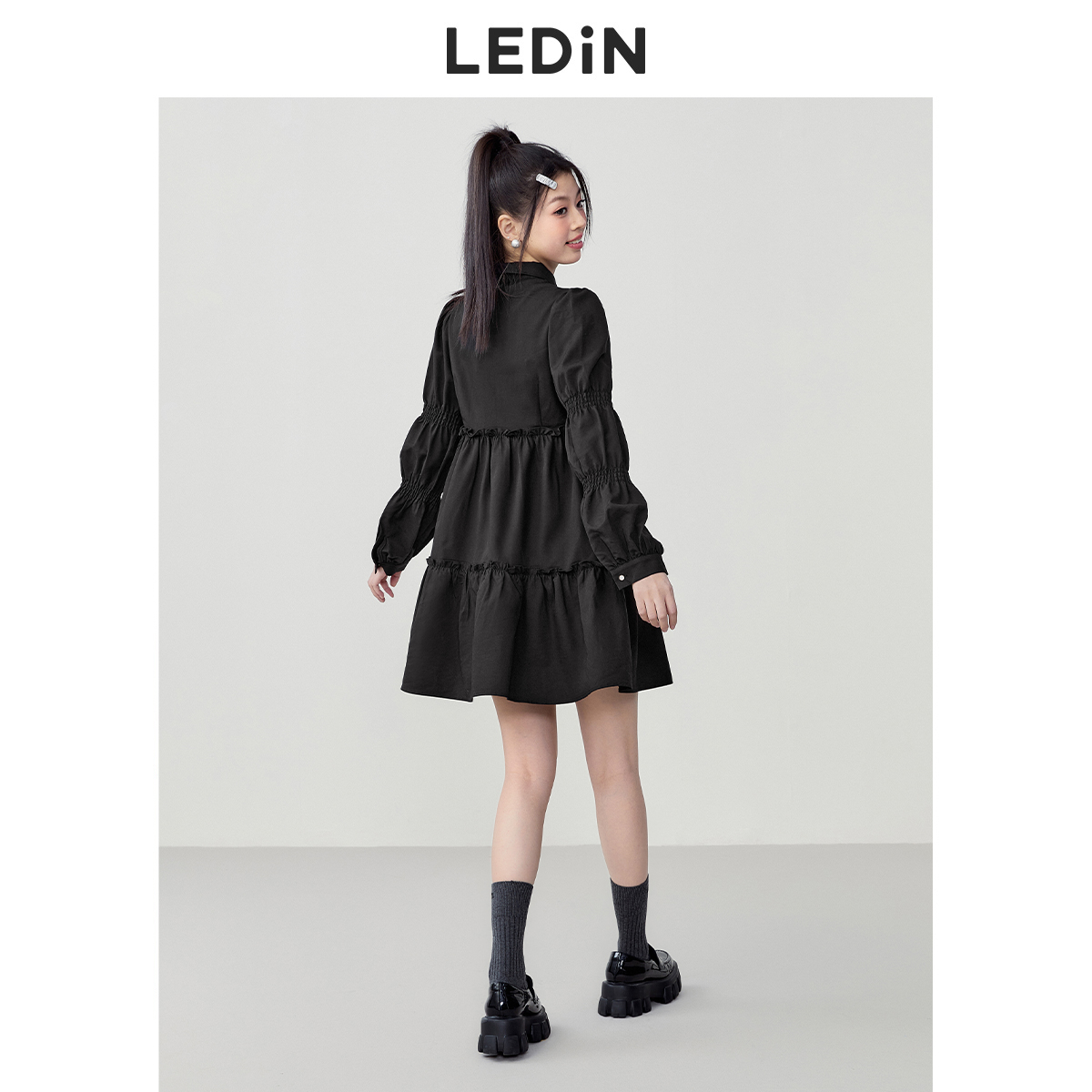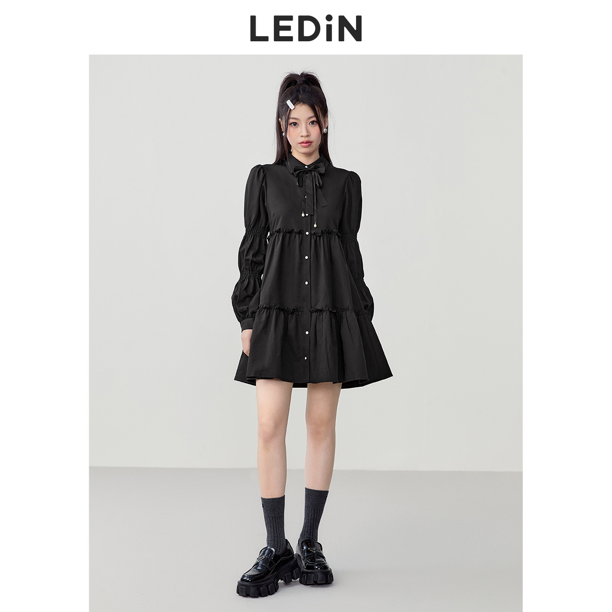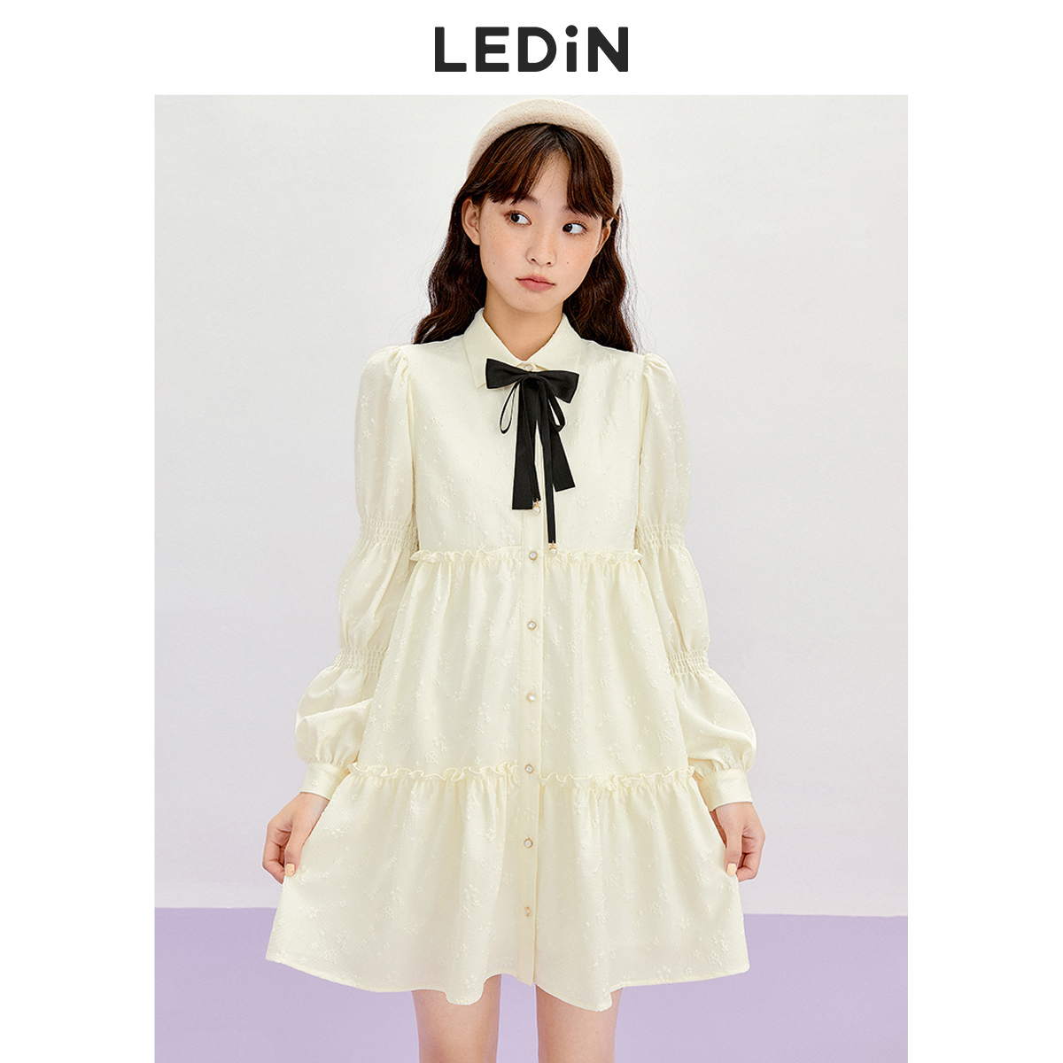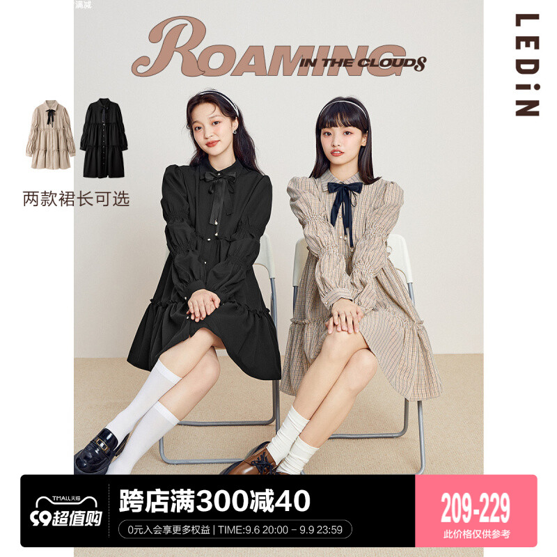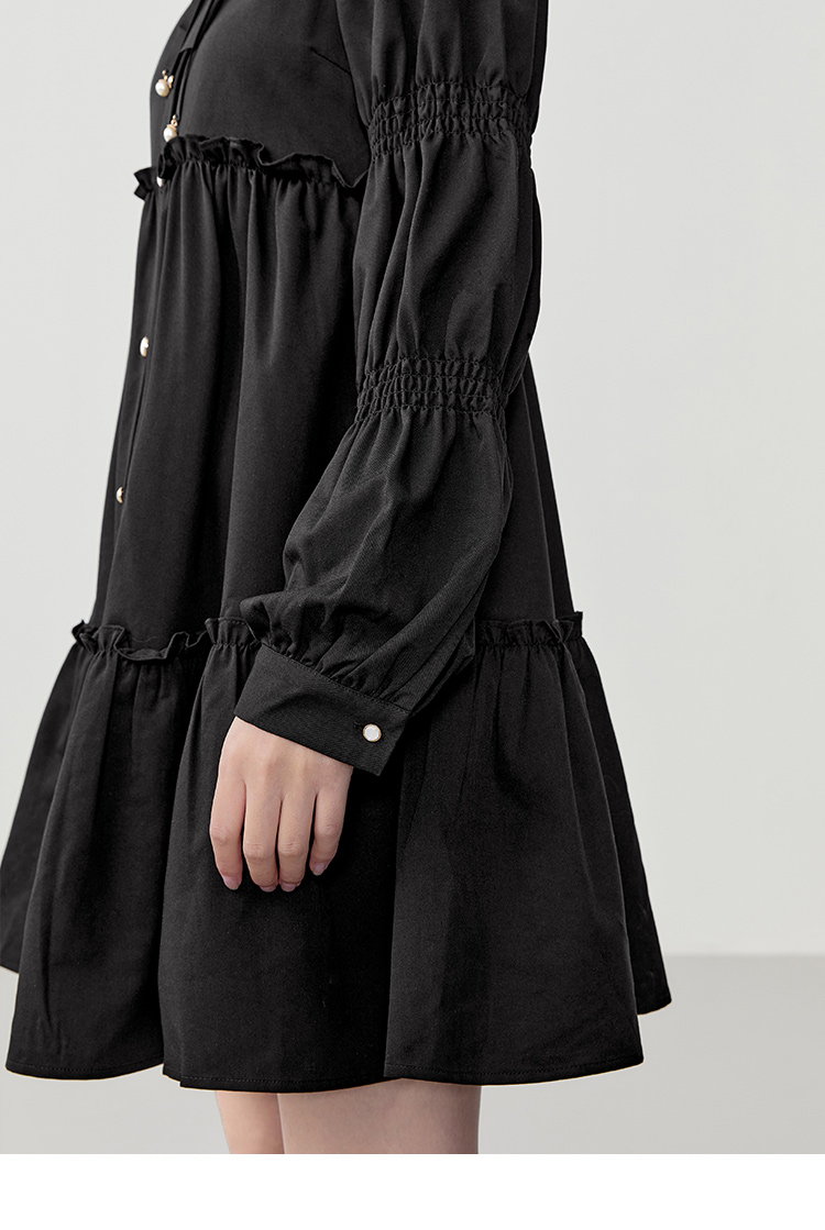 樂町藕節袖洋裝2023春季甜美設計感娃娃裙森女襯衫式洋裝日系內搭裙