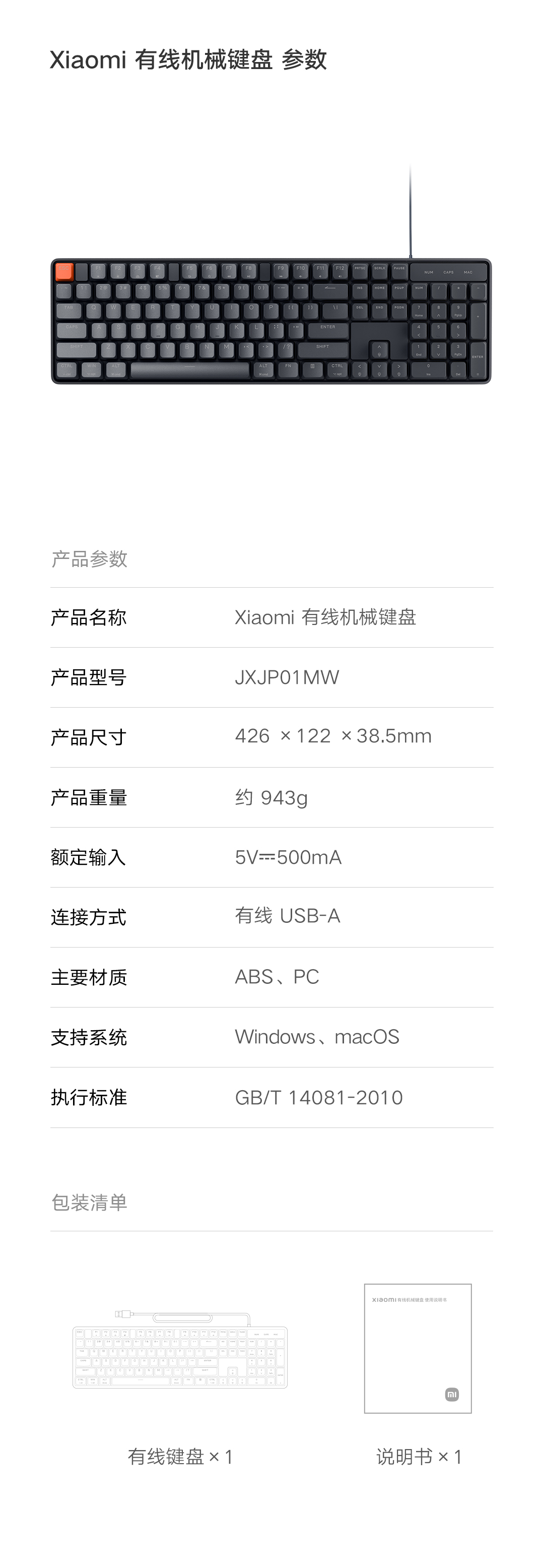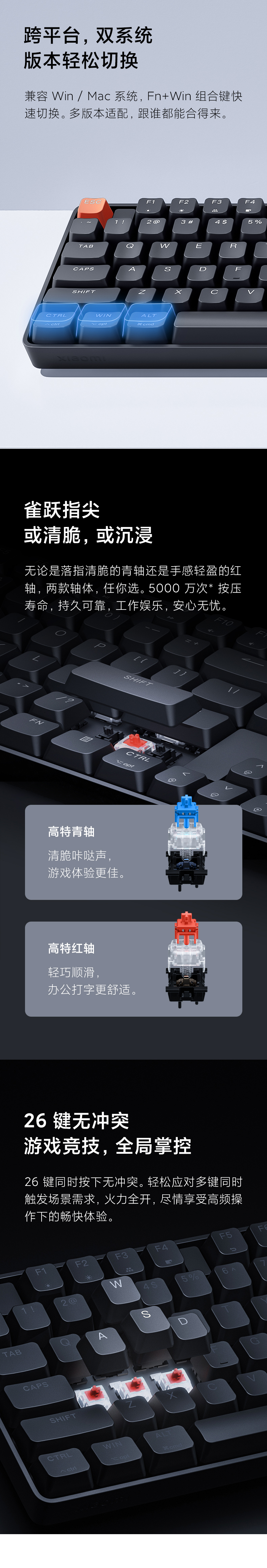 xiaomi有线机械键盘青轴红轴台式电脑笔记本电脑办公外接机械键盘