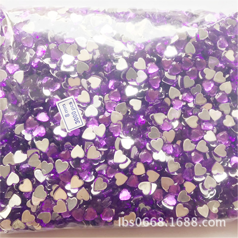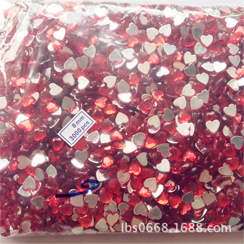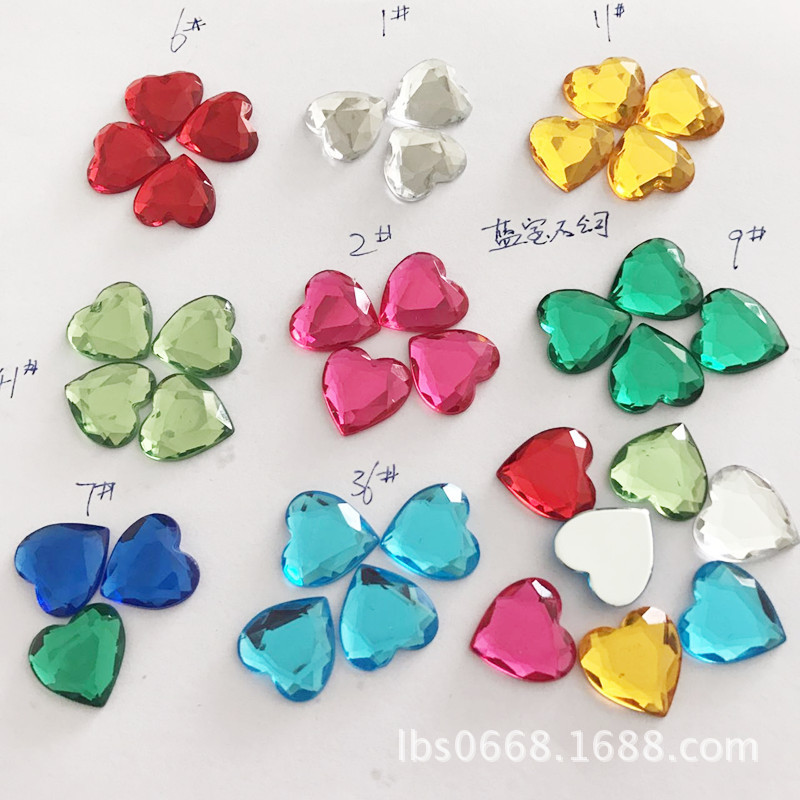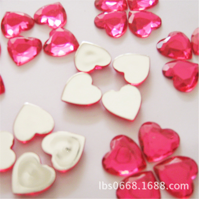桃心形台湾亚克力钻 3MM-18MM平底闪钻 水钻玩具饰品配件爱心宝石